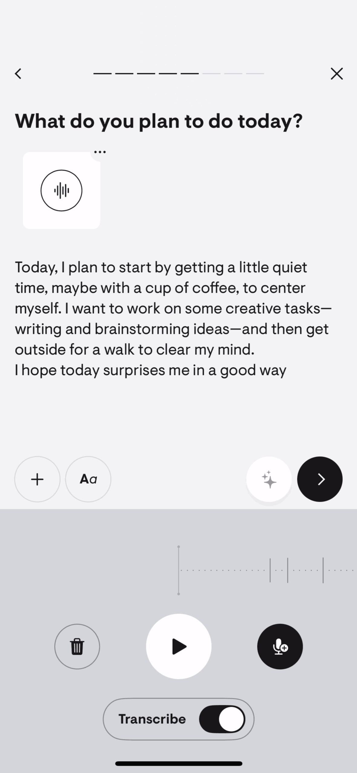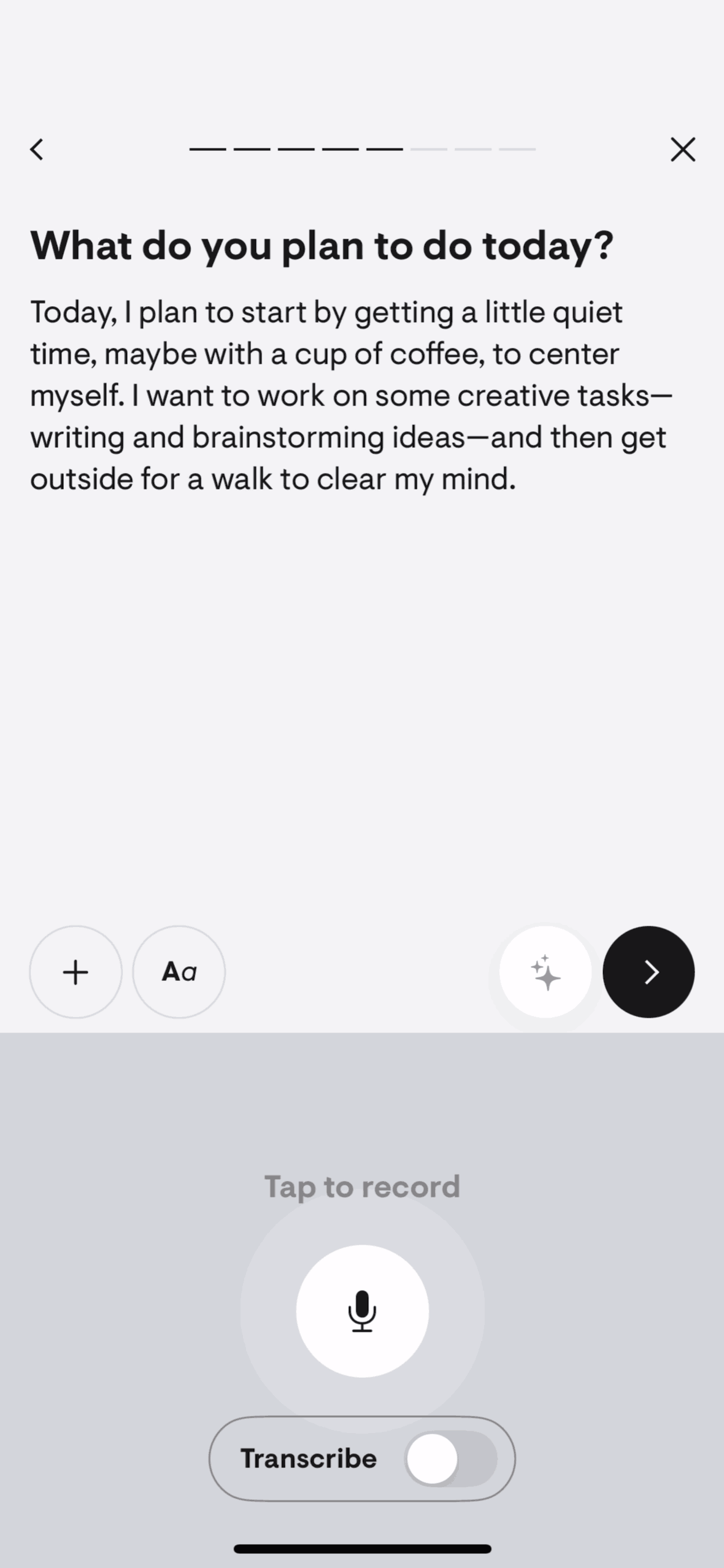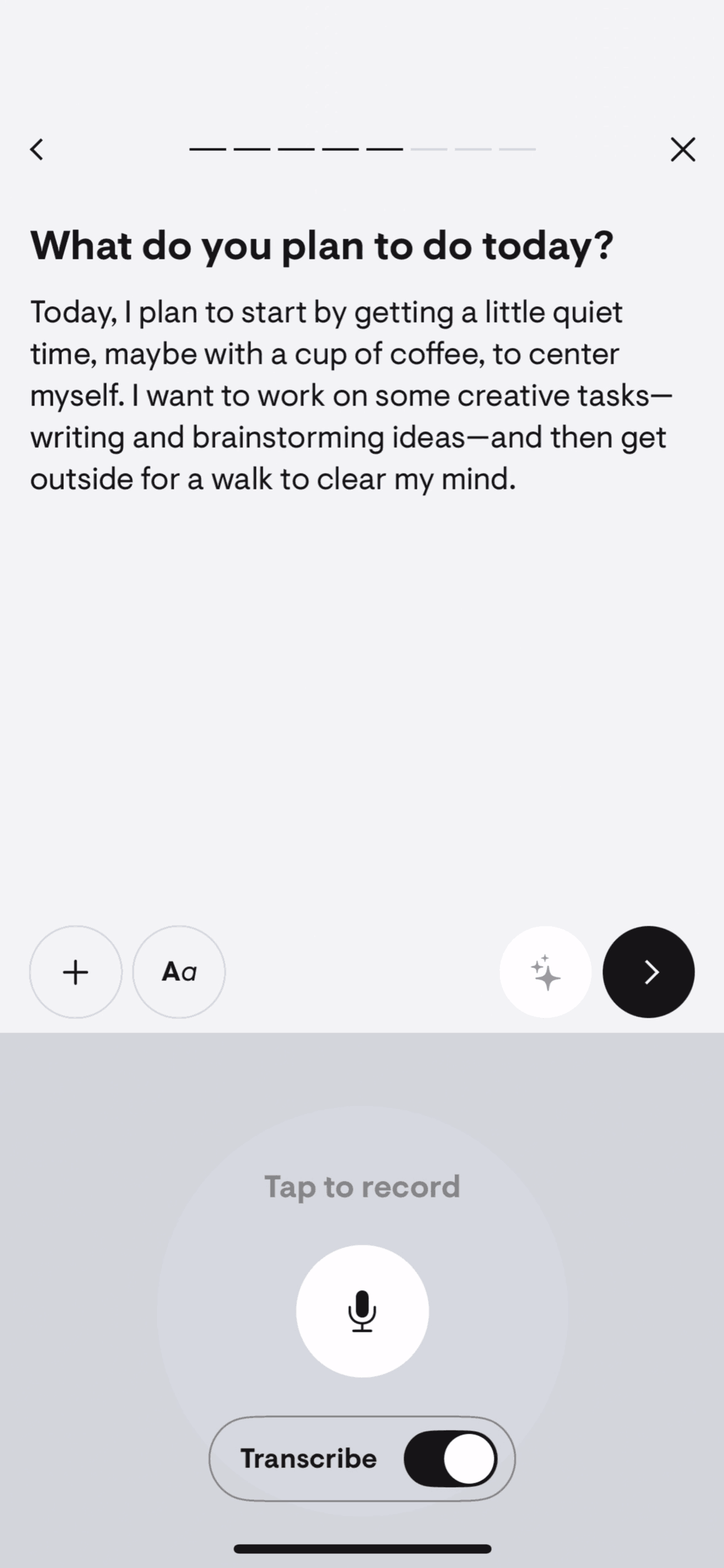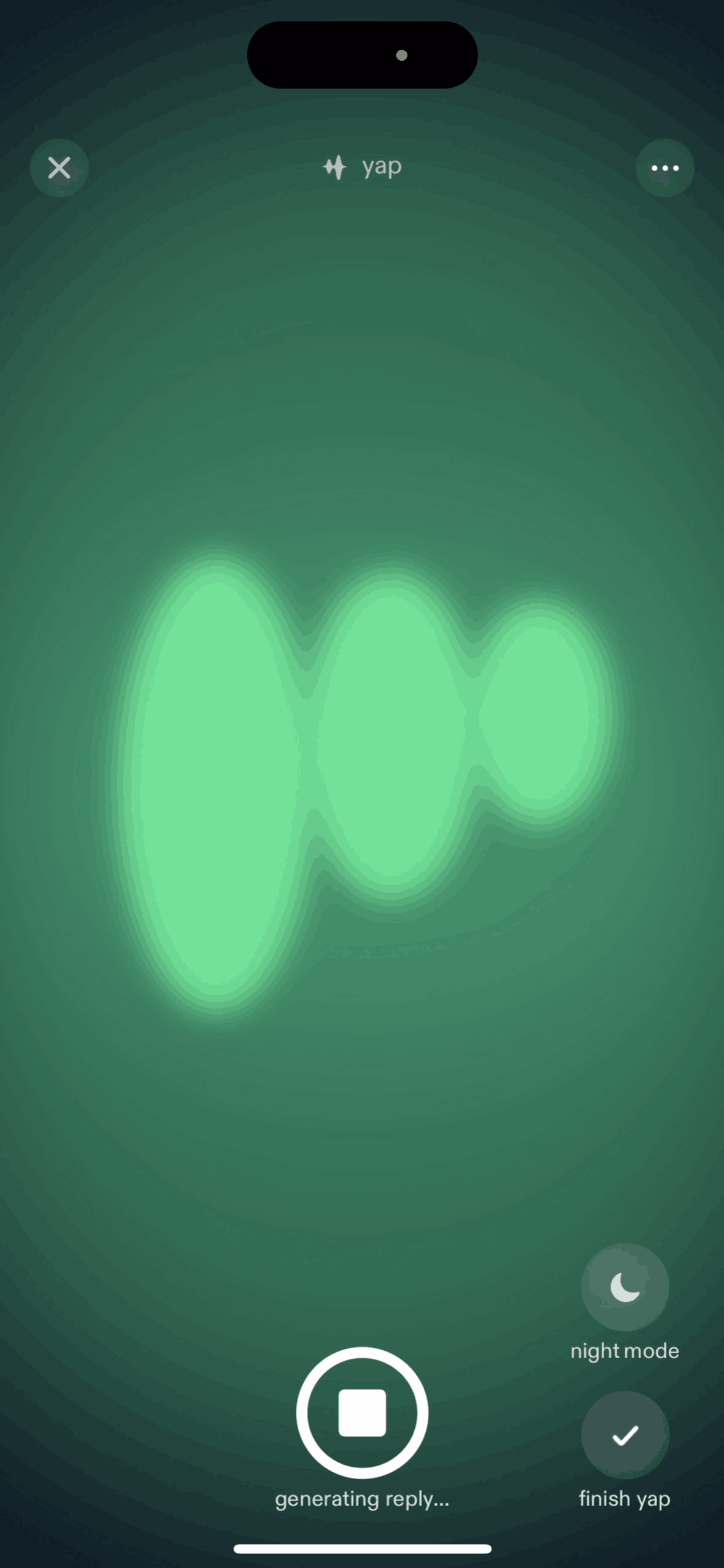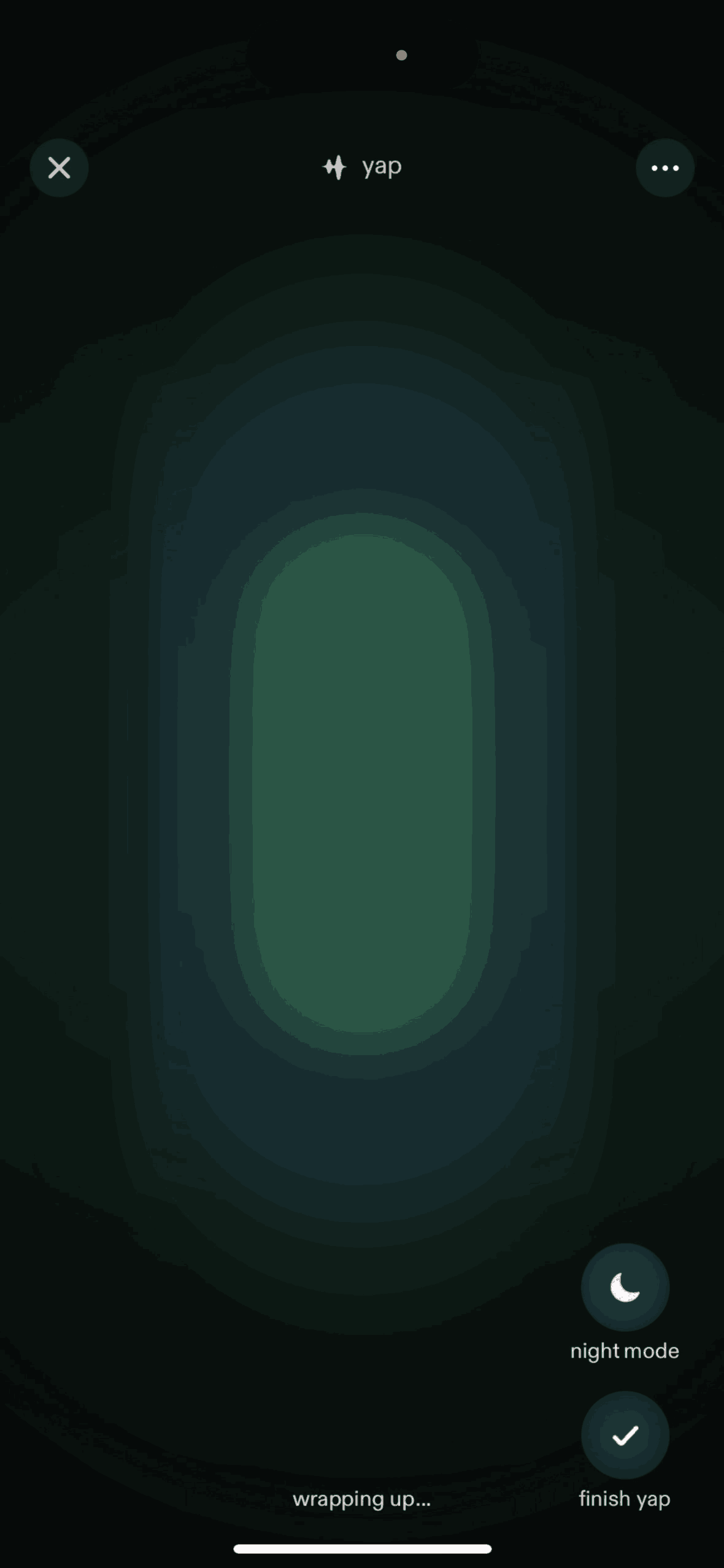 The user creates a 'yap' entry by recording their thoughts. The app then processes the recording.