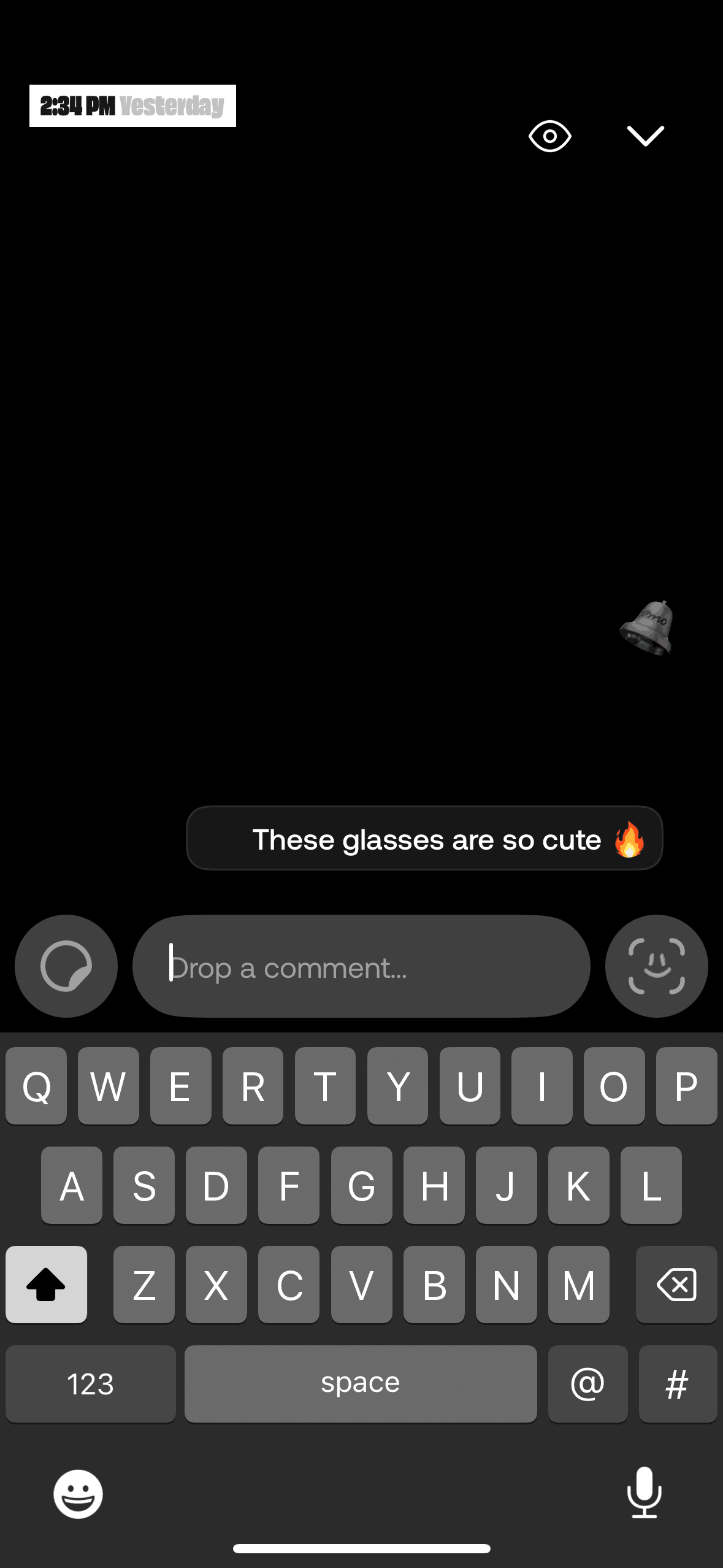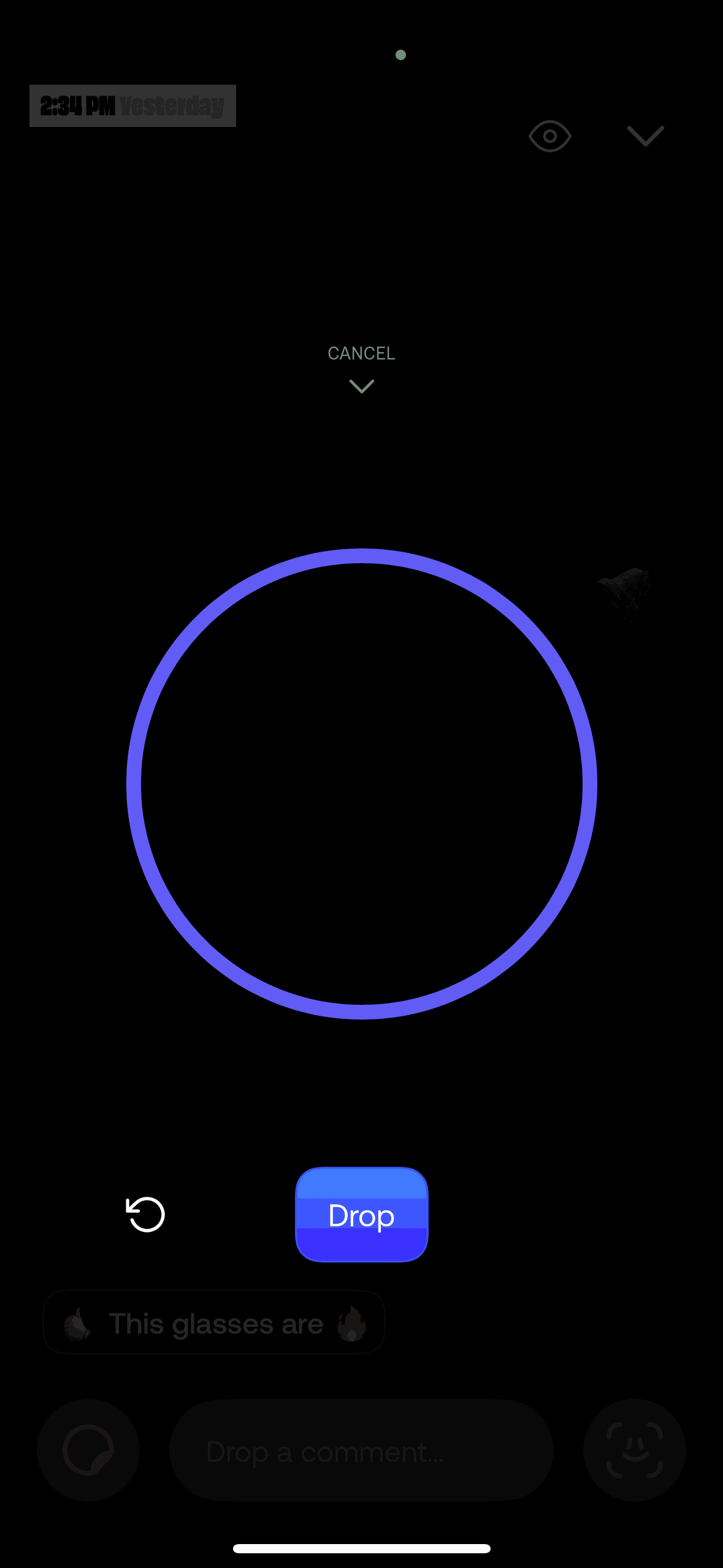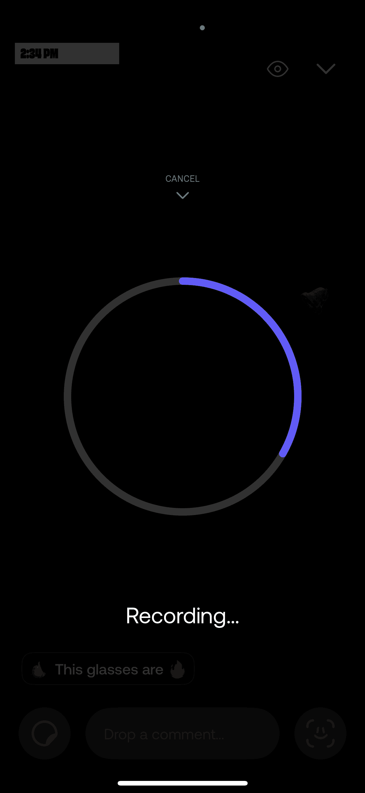 The user records a video and then drops it. The video is then available as a preview in the comment input.