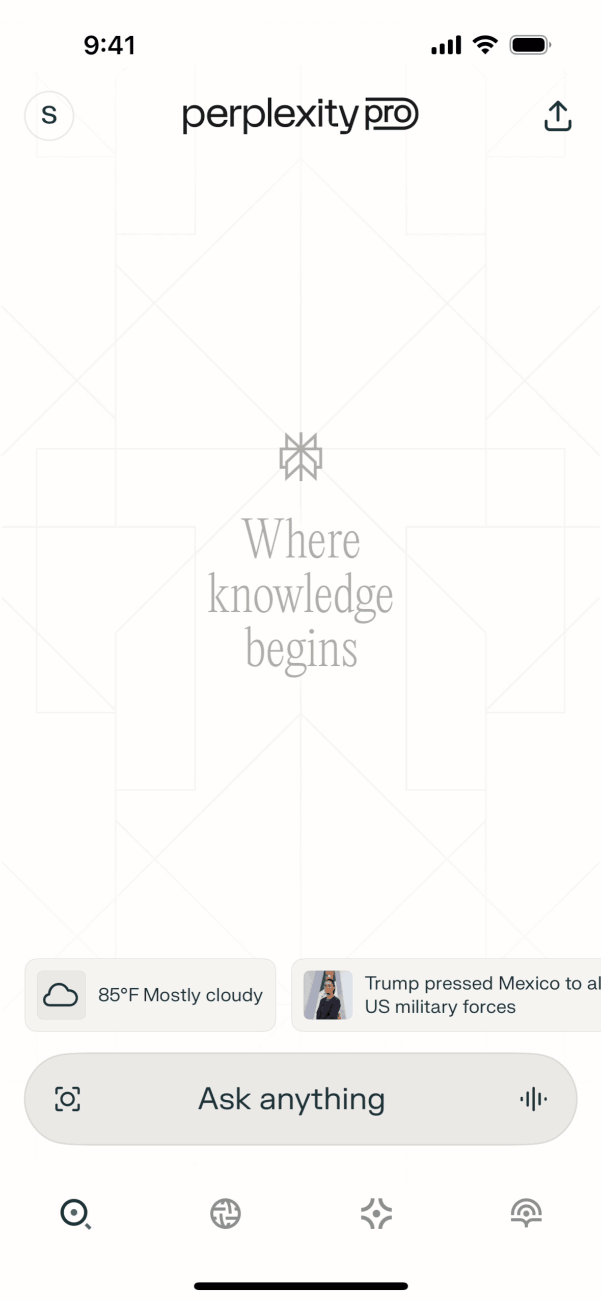 The user initiates a voice query using the "Ask anything" button. The app processes the voice input and displays the generated response.
