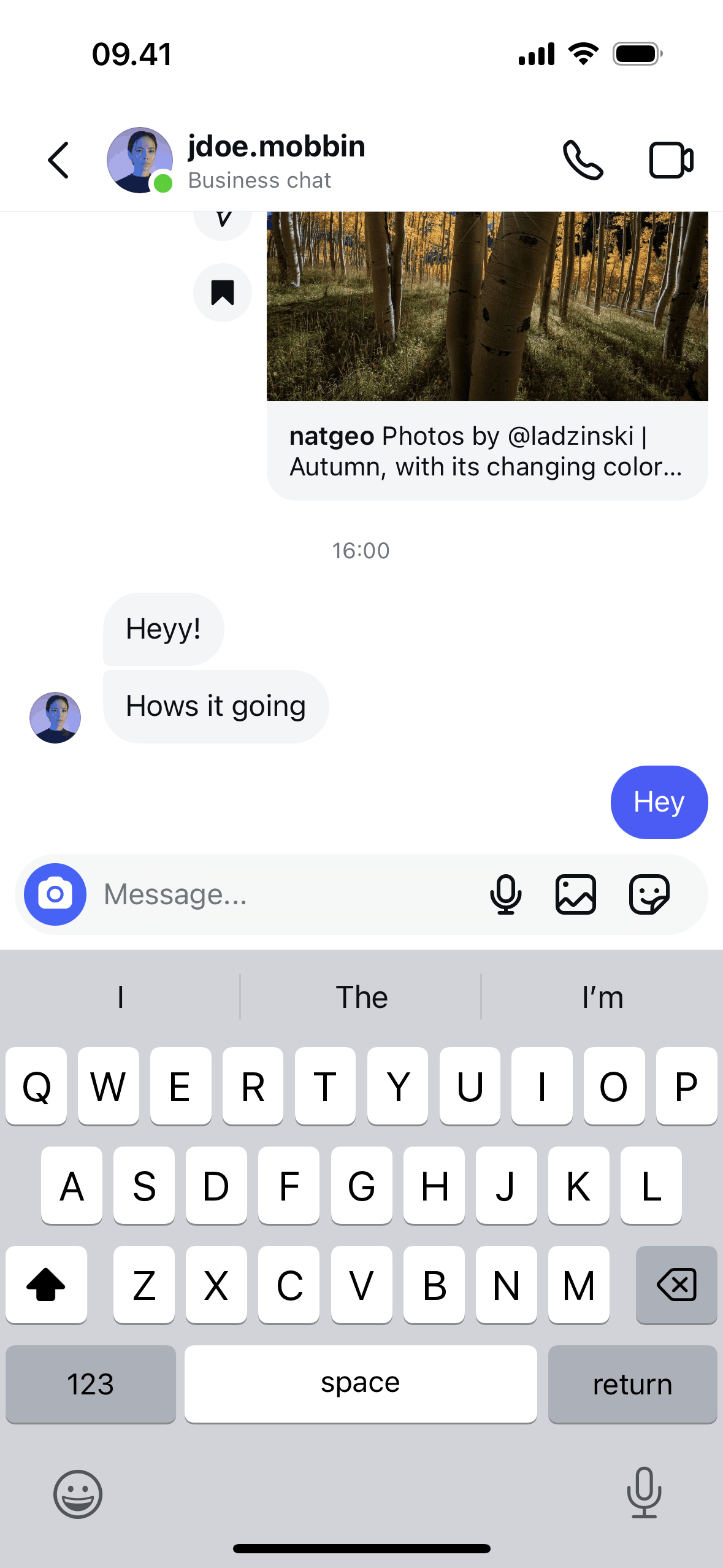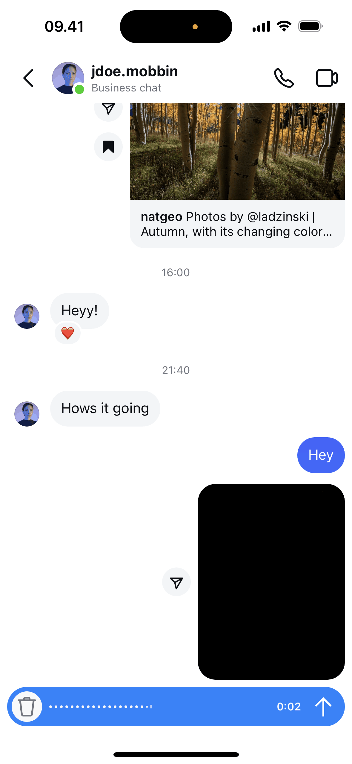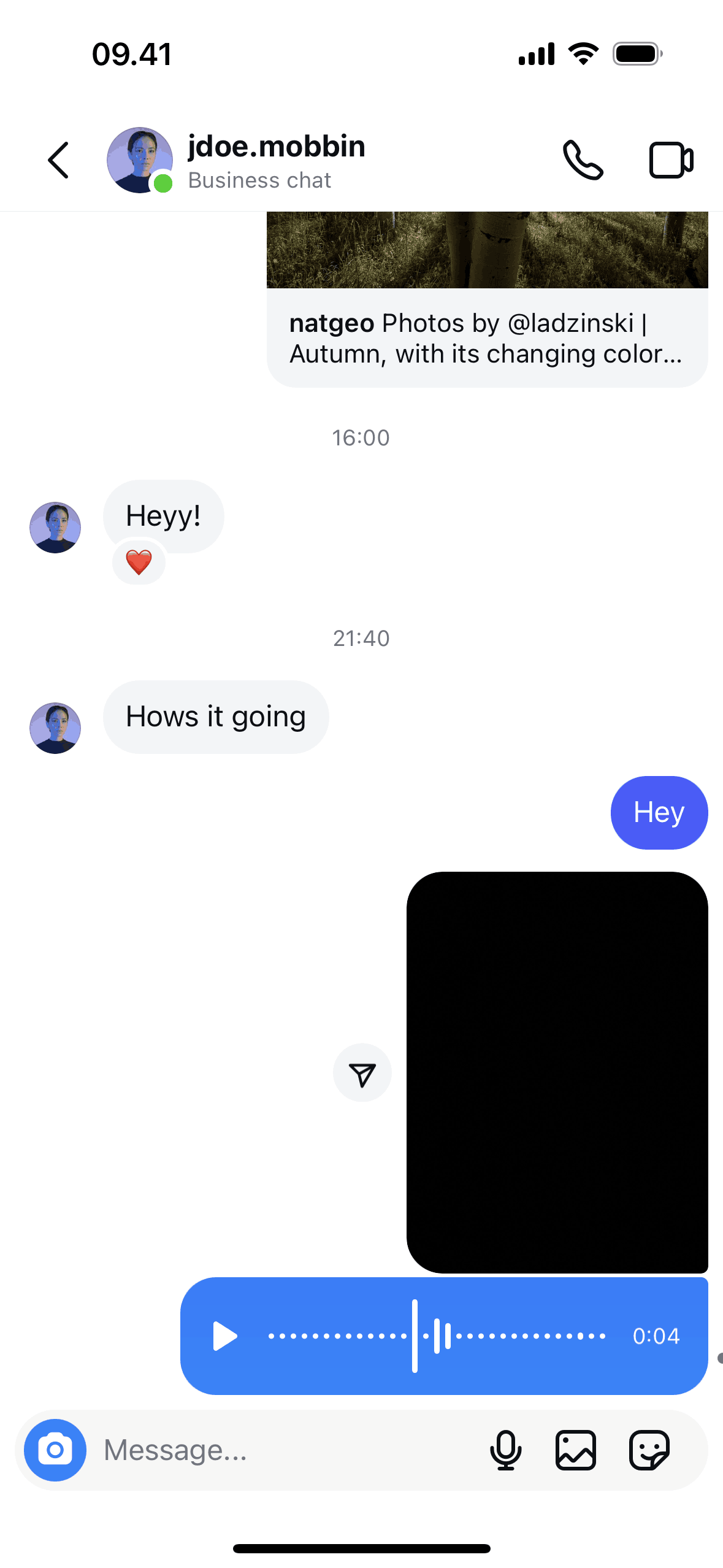 The user composes and sends a message with text, image, and GIF. The recipient then responds with multiple messages.