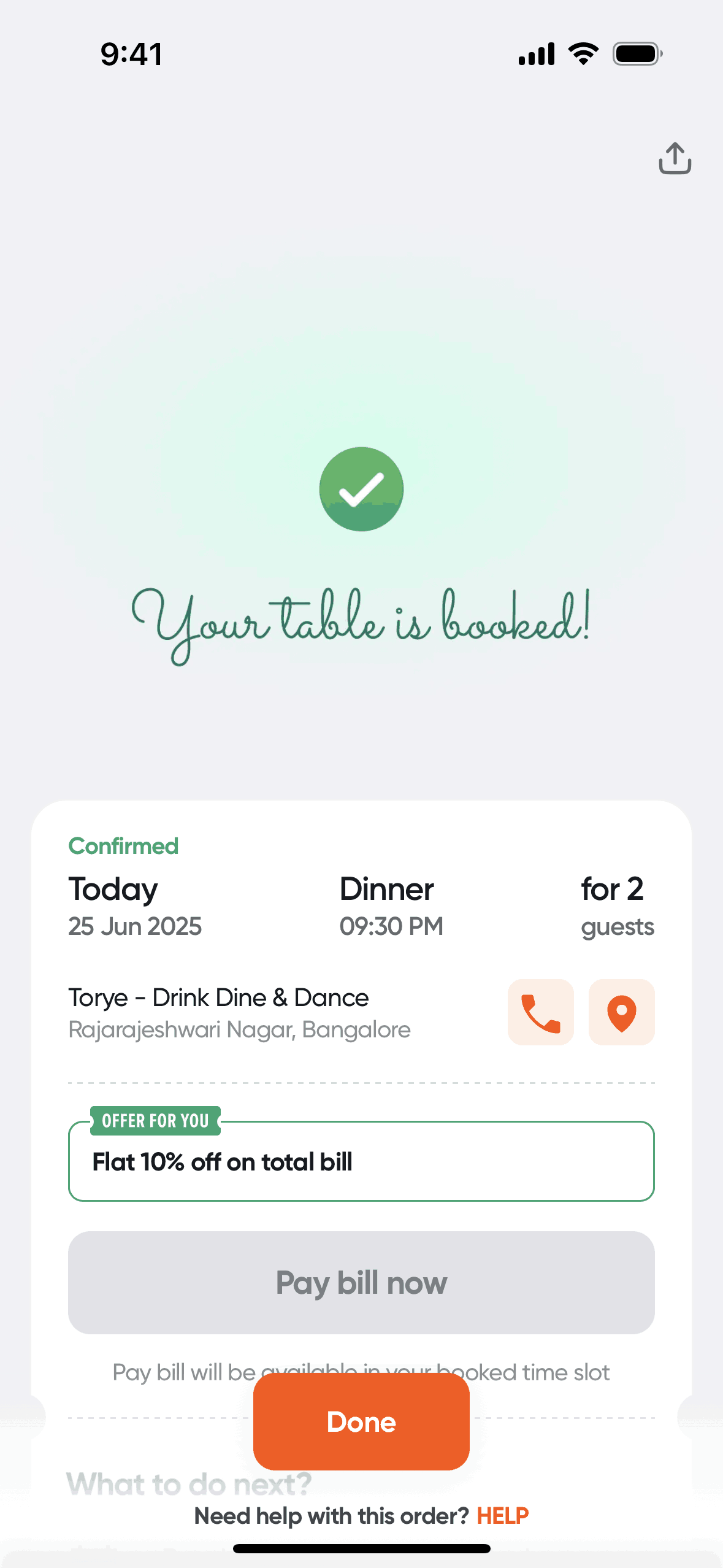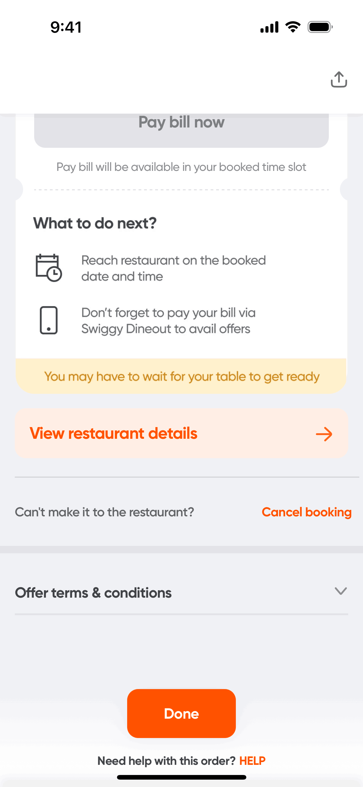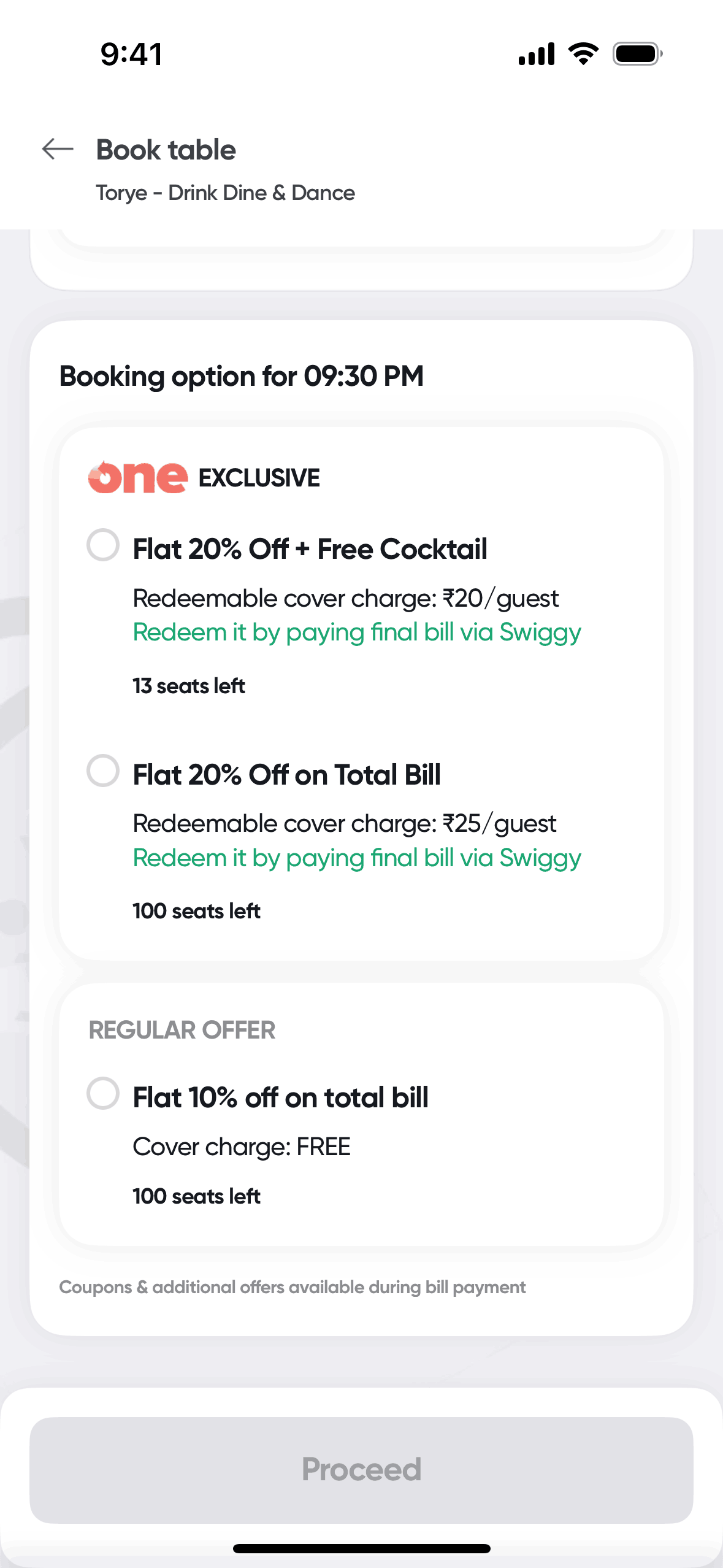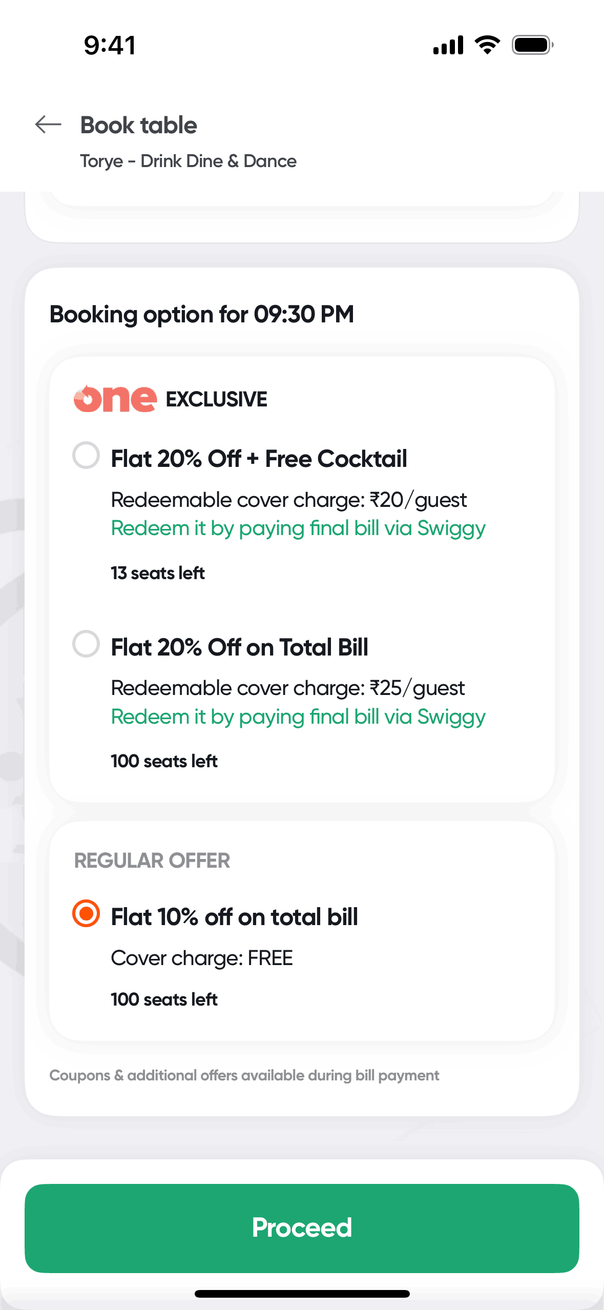 The user flow showcases booking a table at a restaurant. It involves selecting booking details, choosing an offer, and confirming the reservation.