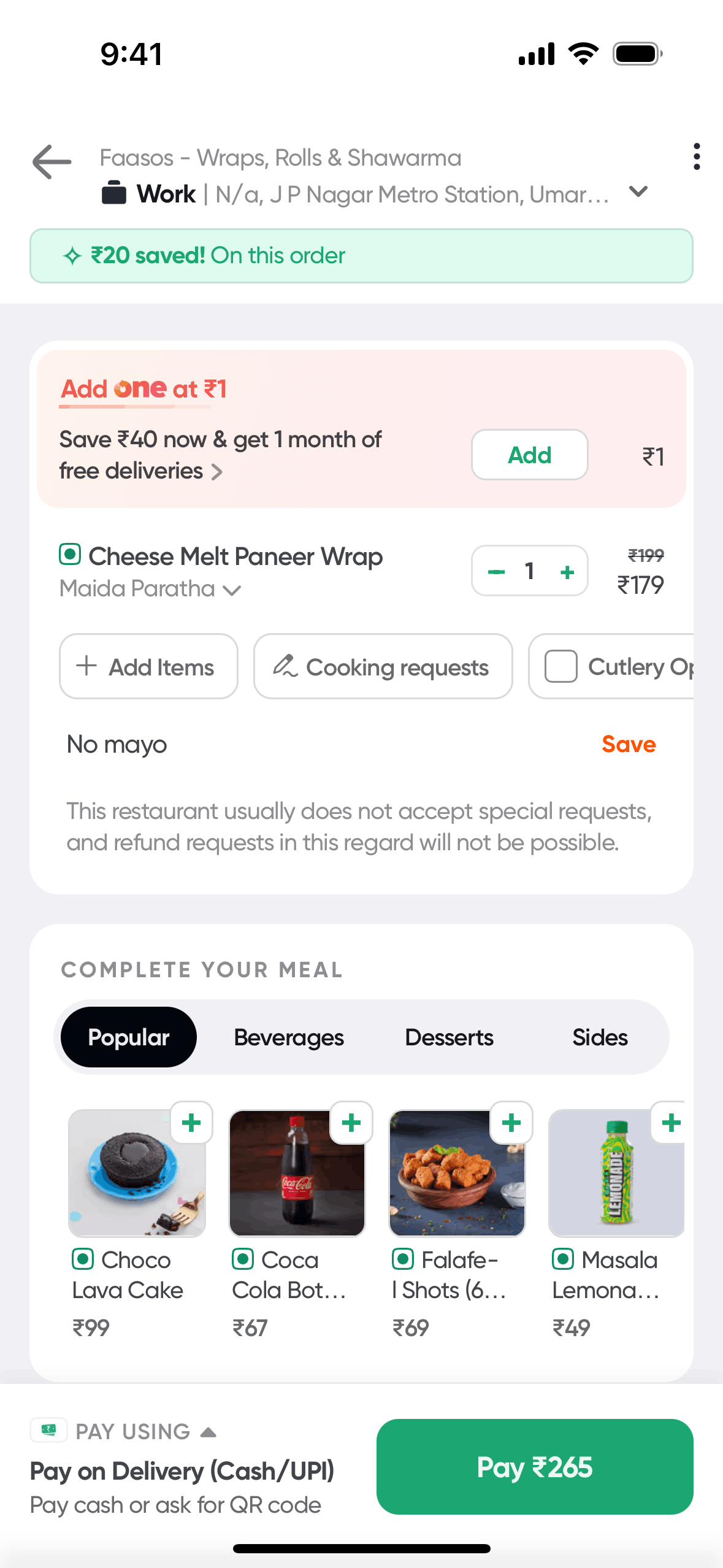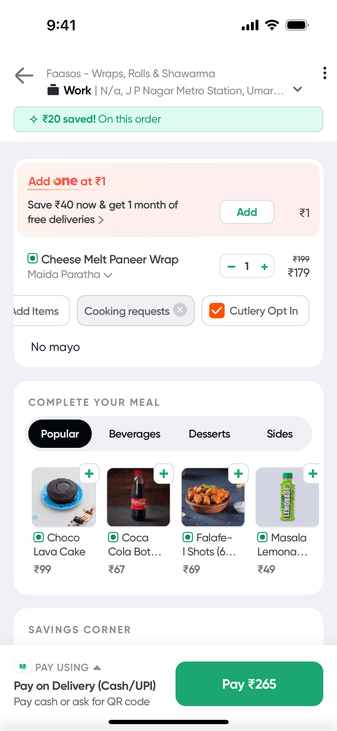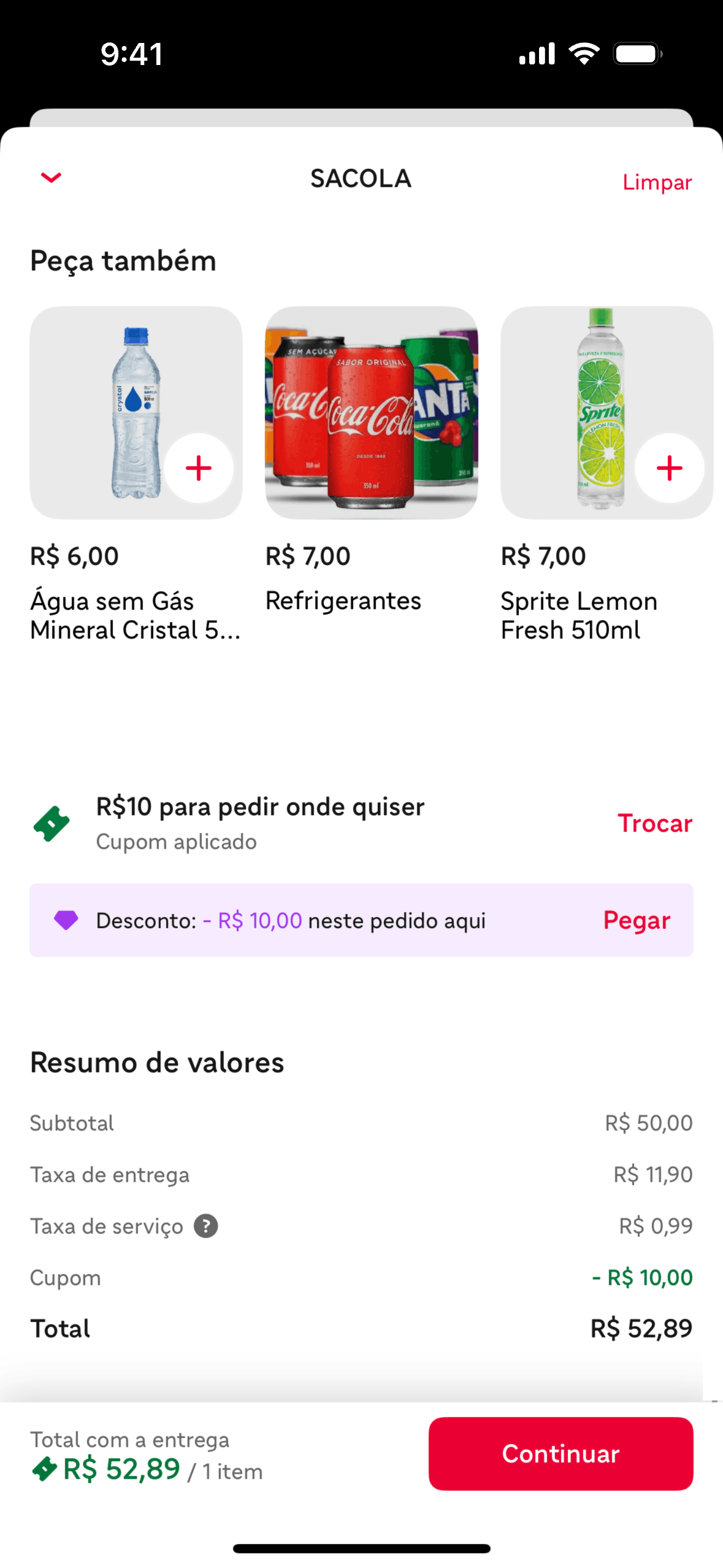 The user flow demonstrates how a user can apply a promo code to their order. The user selects a promo and the discount is reflected in the payment summary.