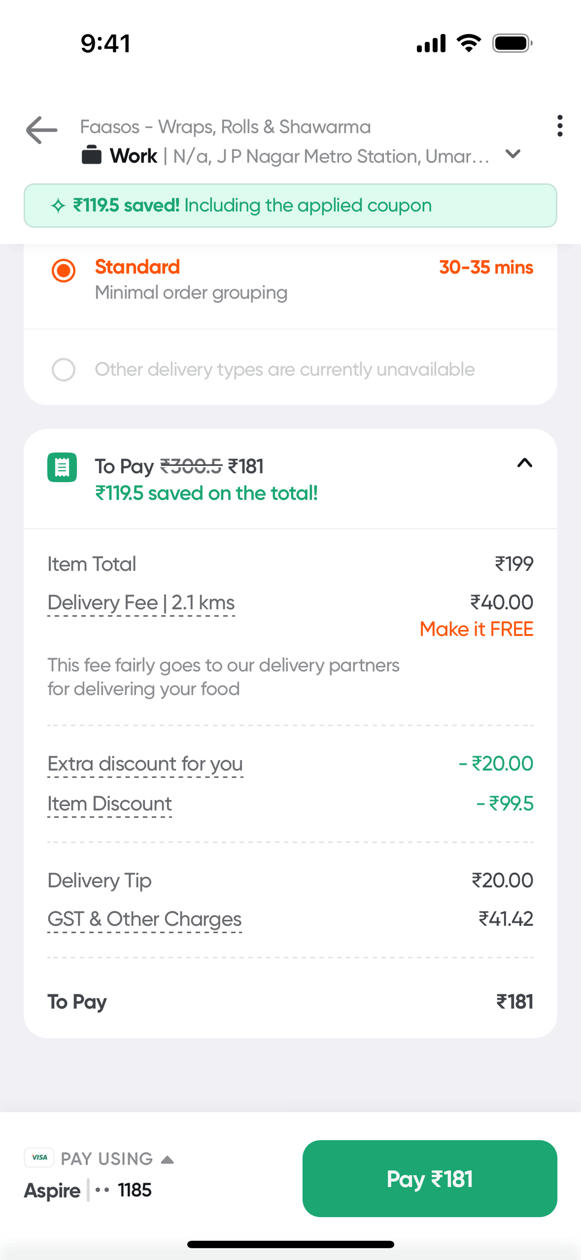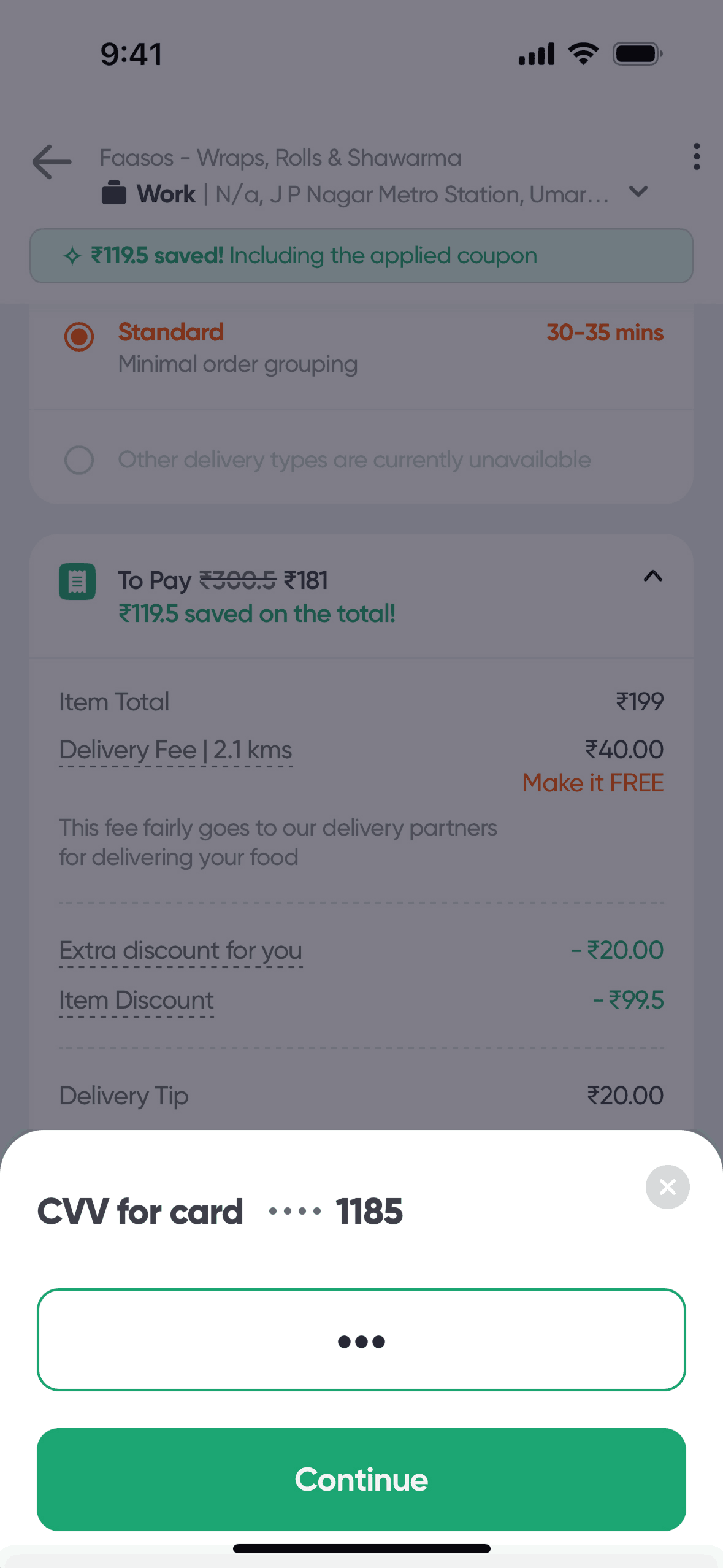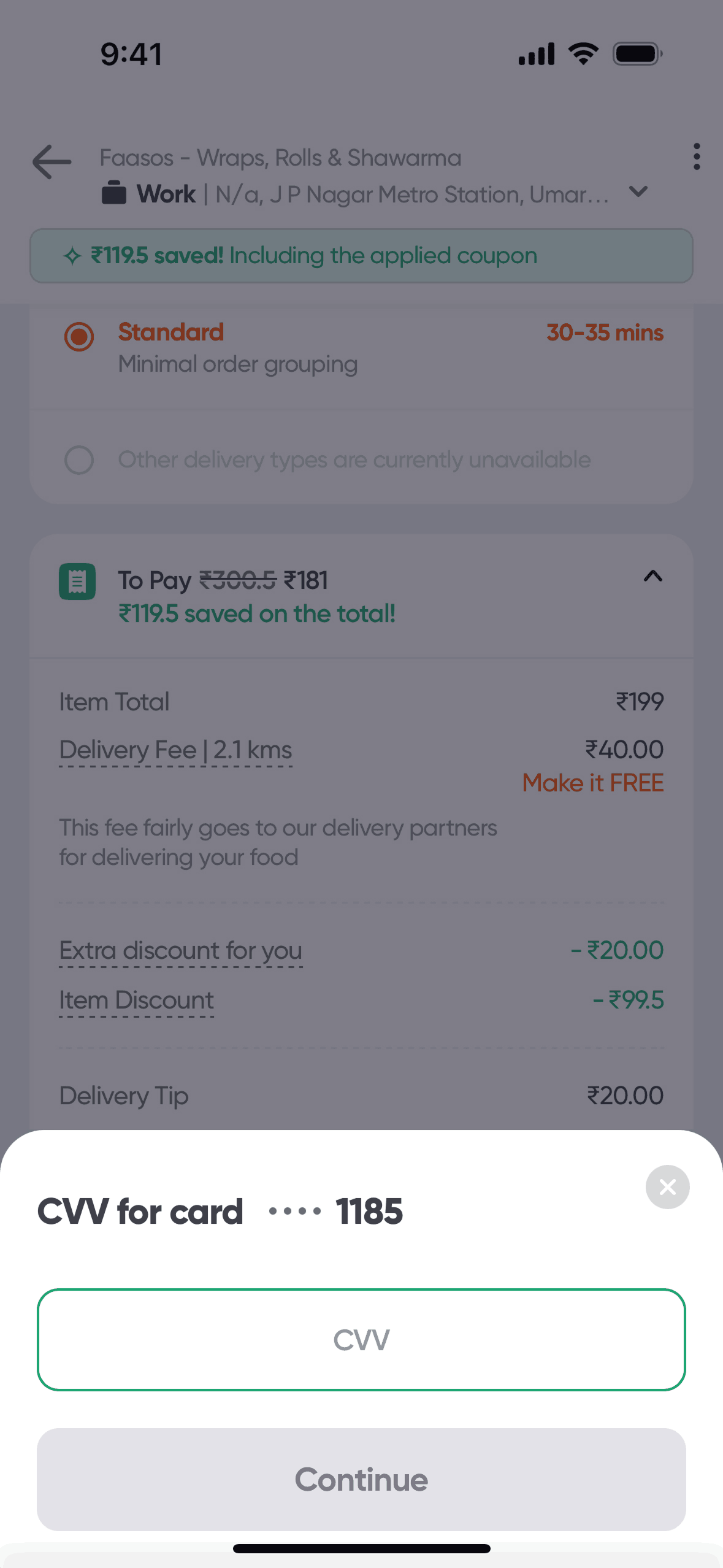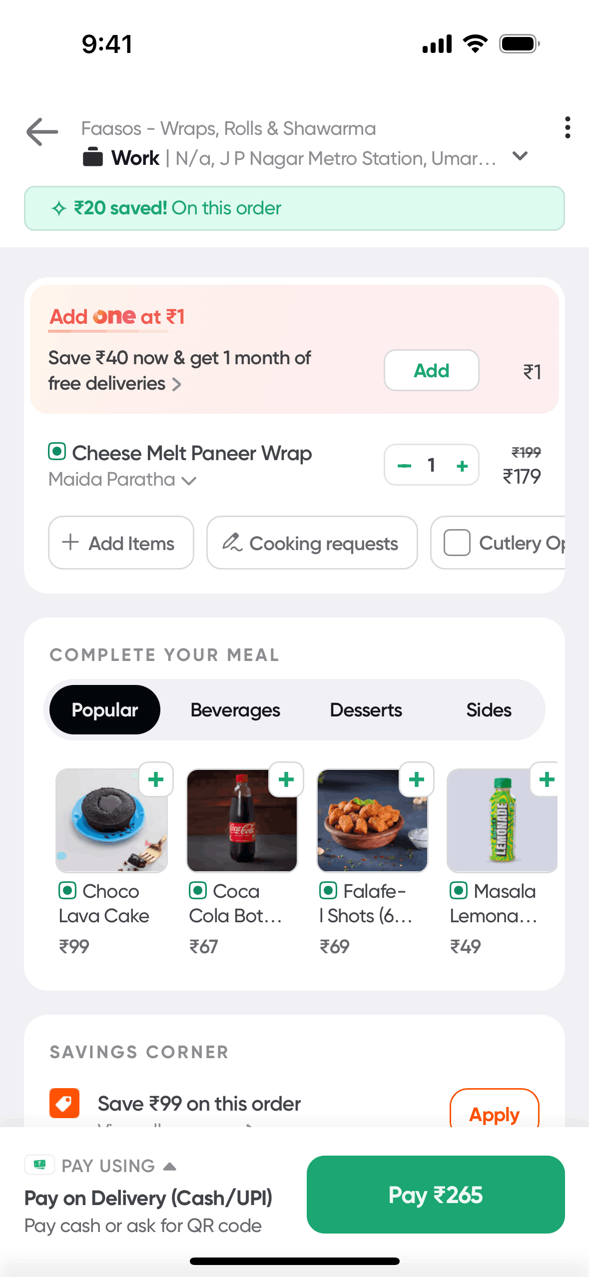 The user flow demonstrates how a user can apply a promo code to their order. The user selects a promo and the discount is reflected in the payment summary.