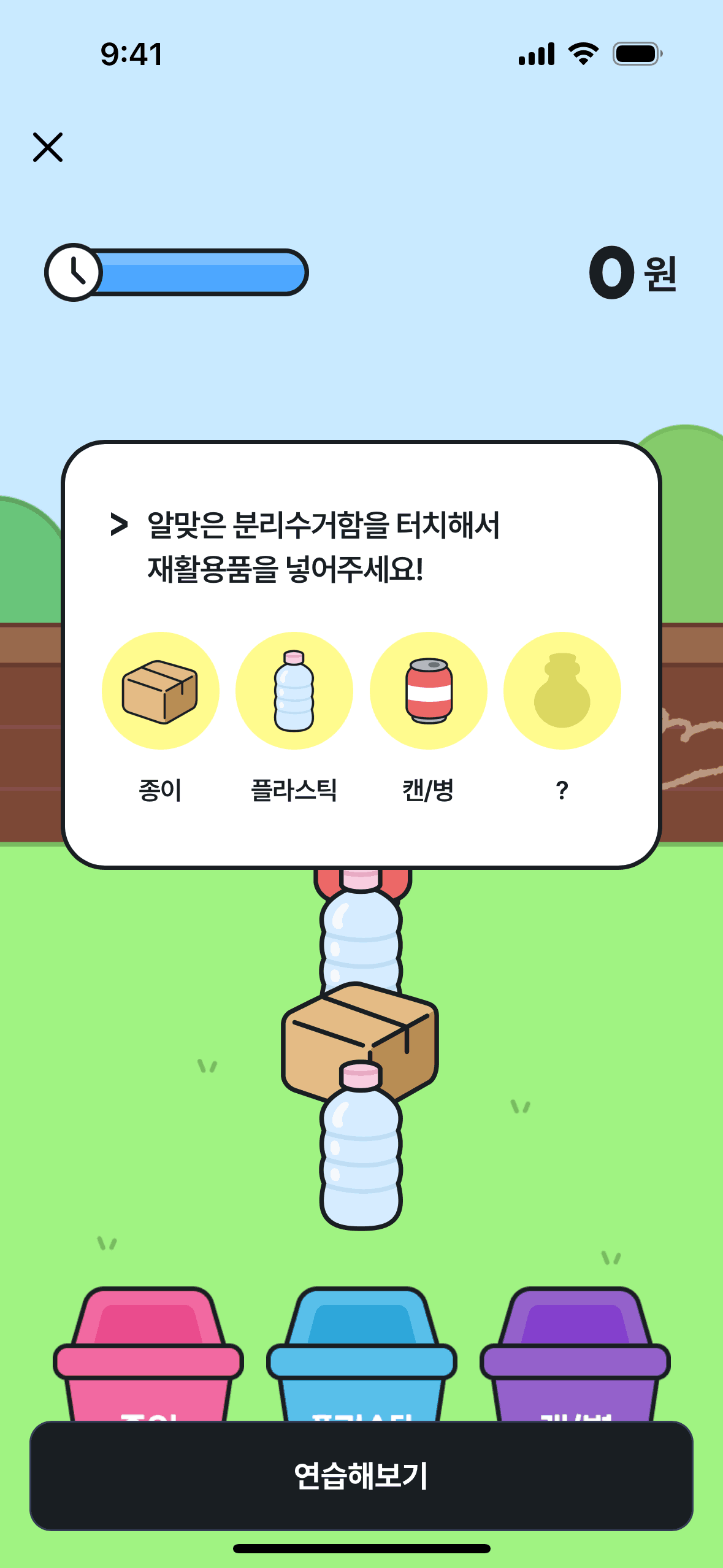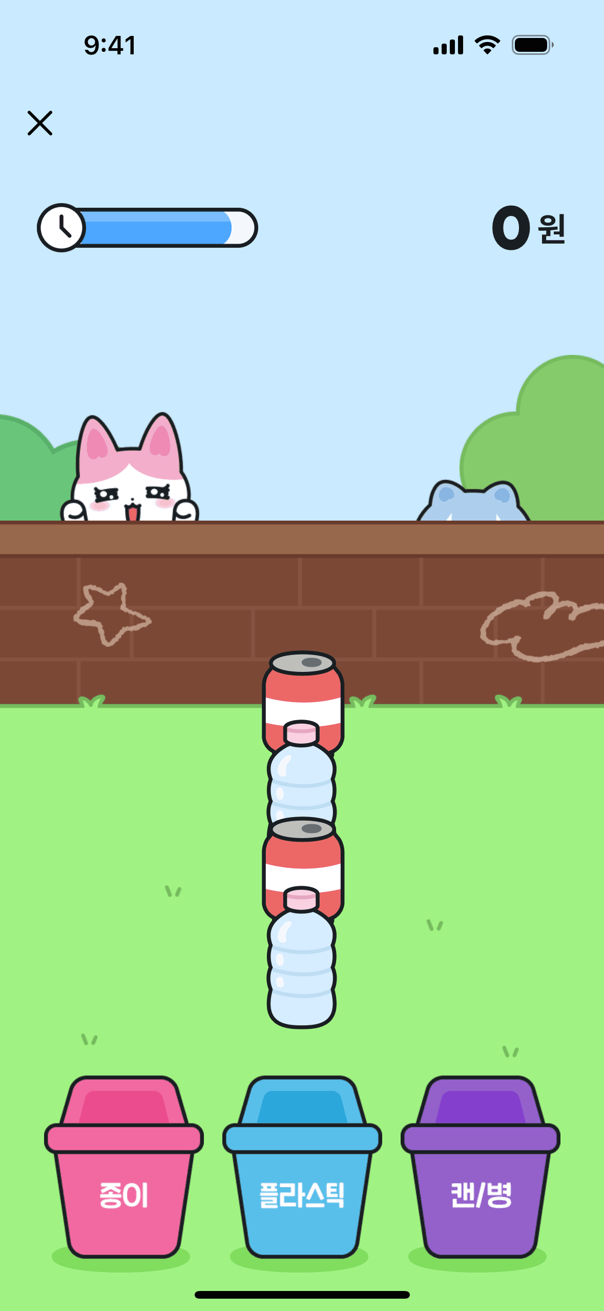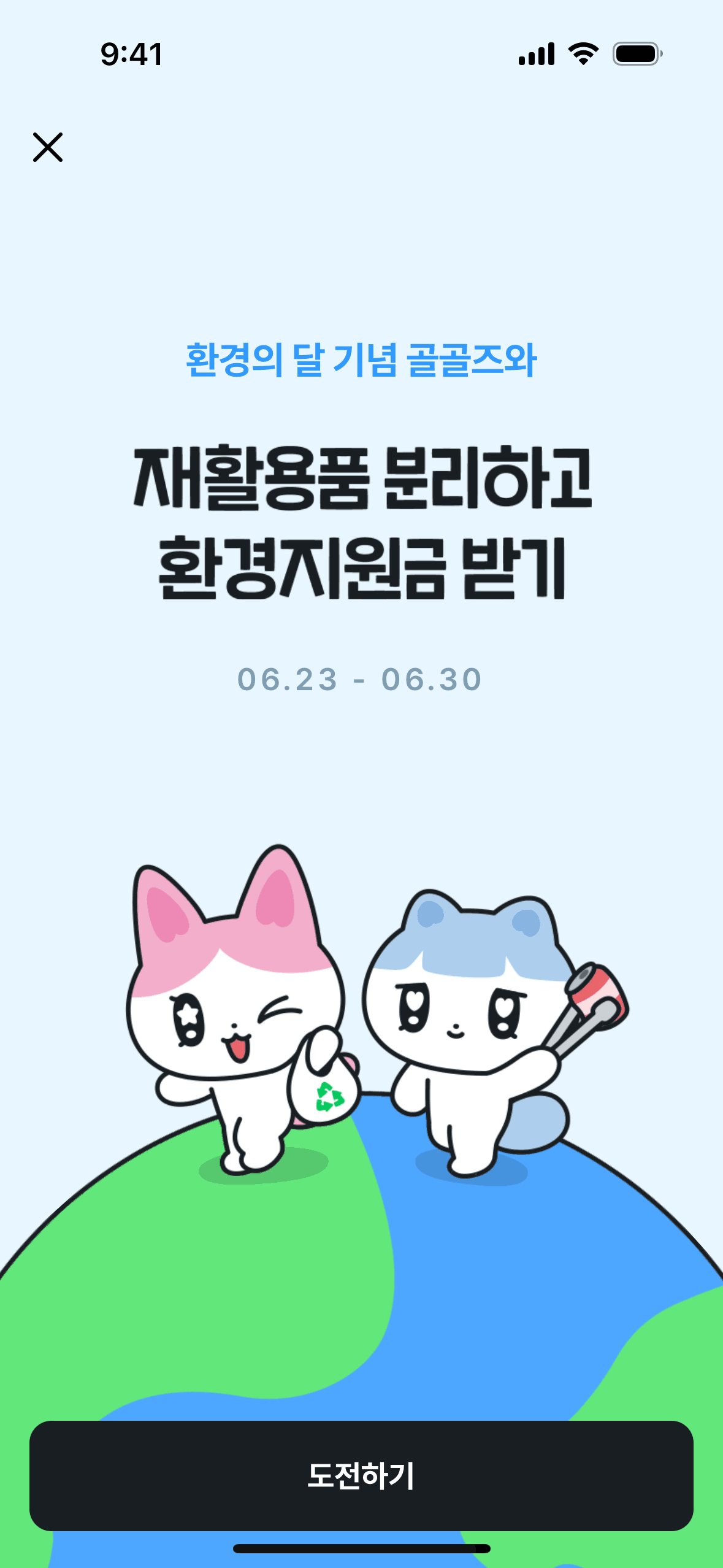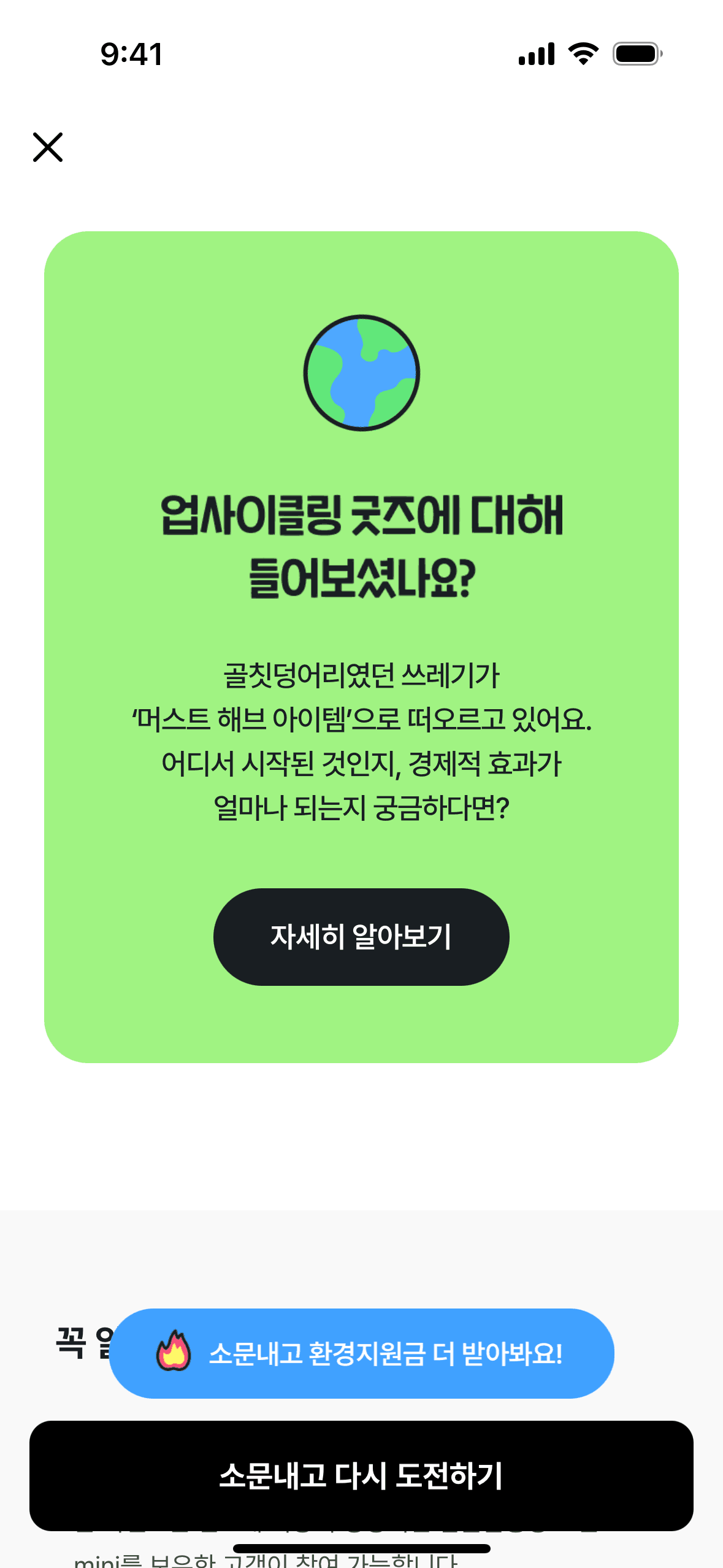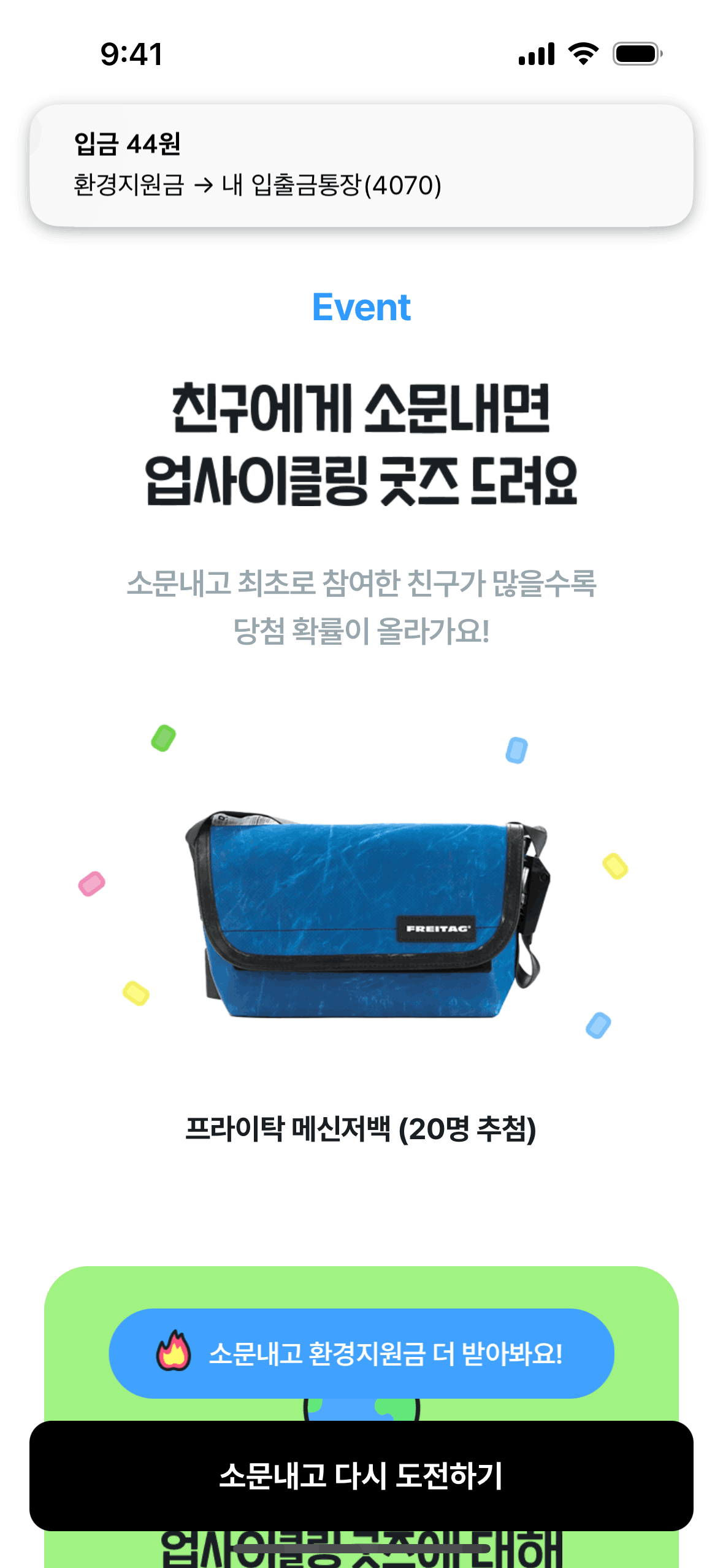 The user flow shows a user playing a recycling game to earn rewards, then being prompted to share the event to claim the reward.