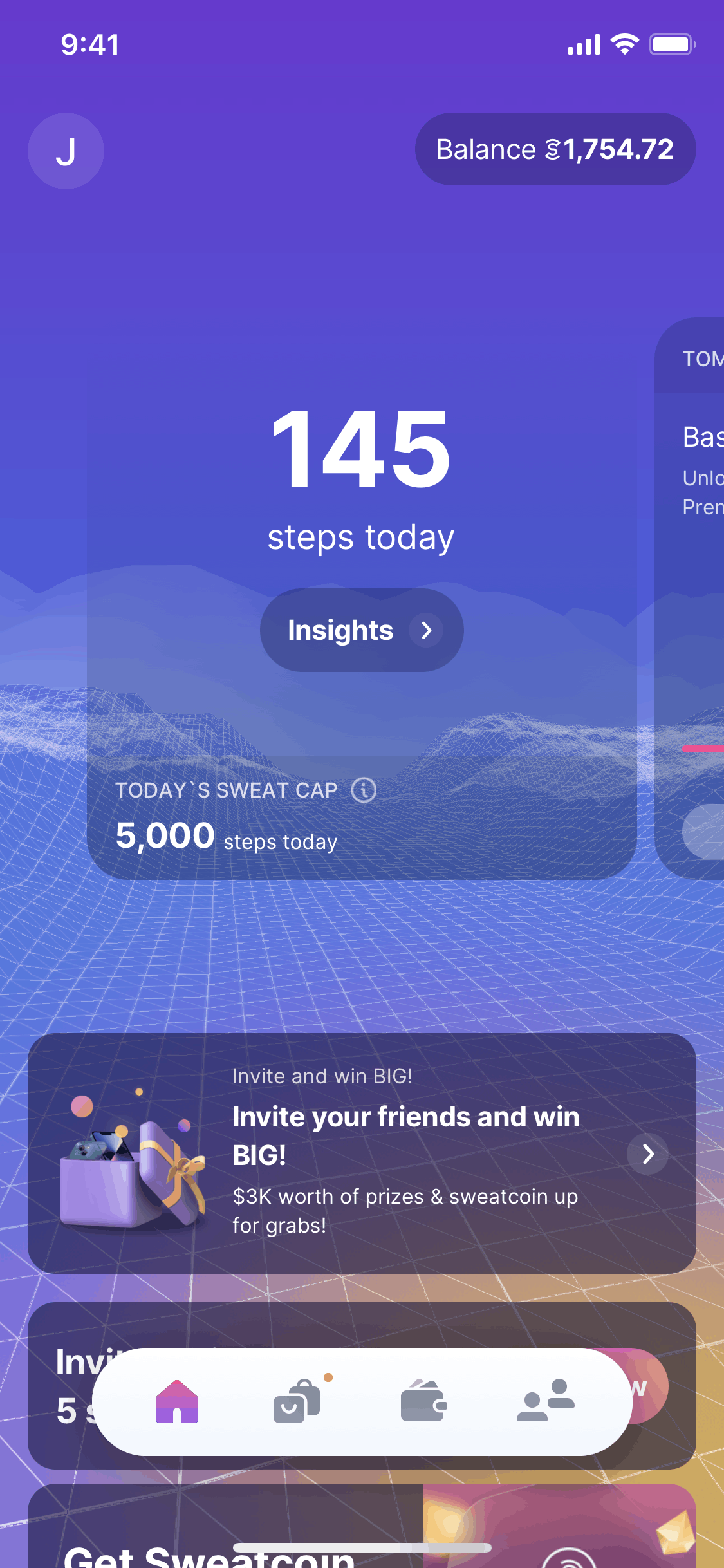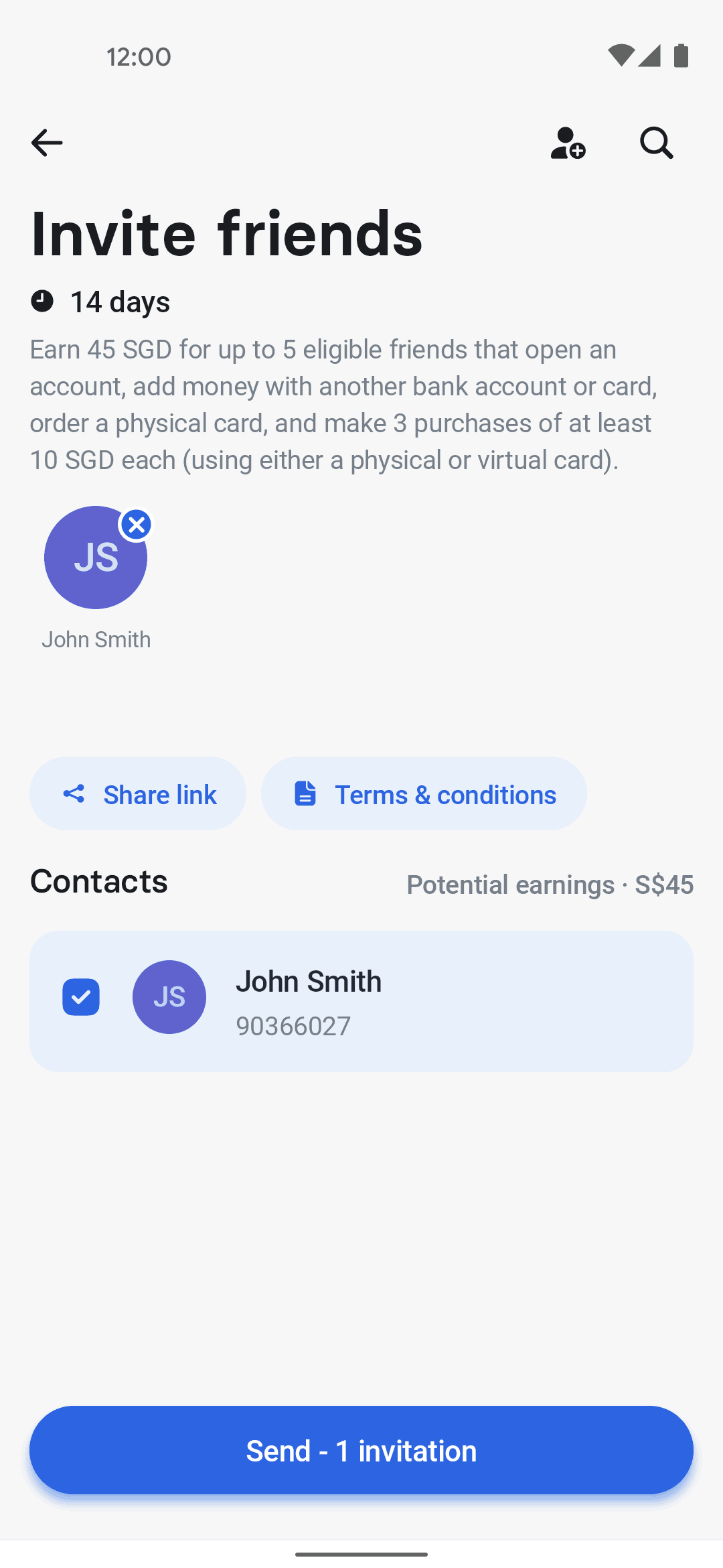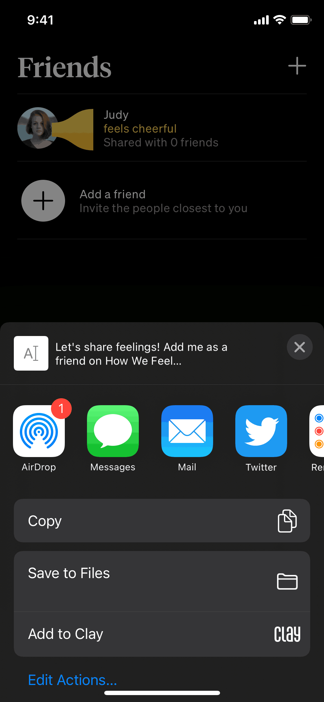 The user invites a friend to the app. They navigate from the homepage to the share sheet to send the invitation.