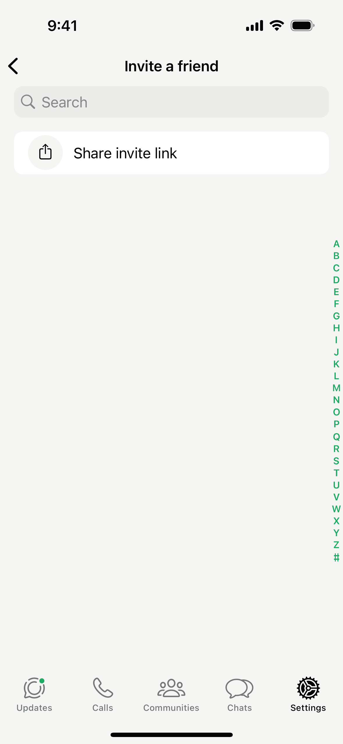 The user navigates from the settings to the invite friend screen and then shares an invite link. The goal is to invite a friend to the app.