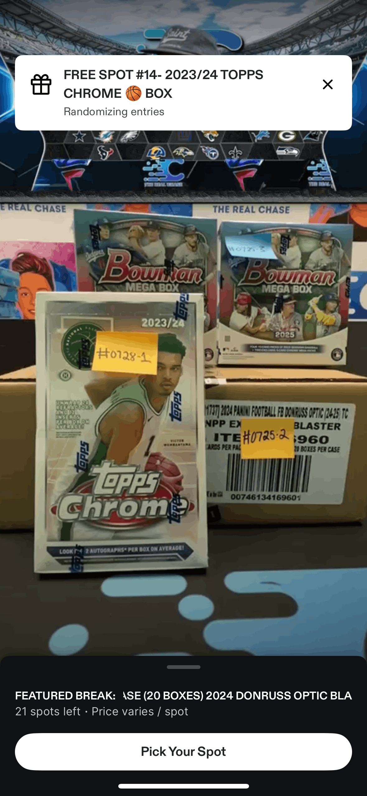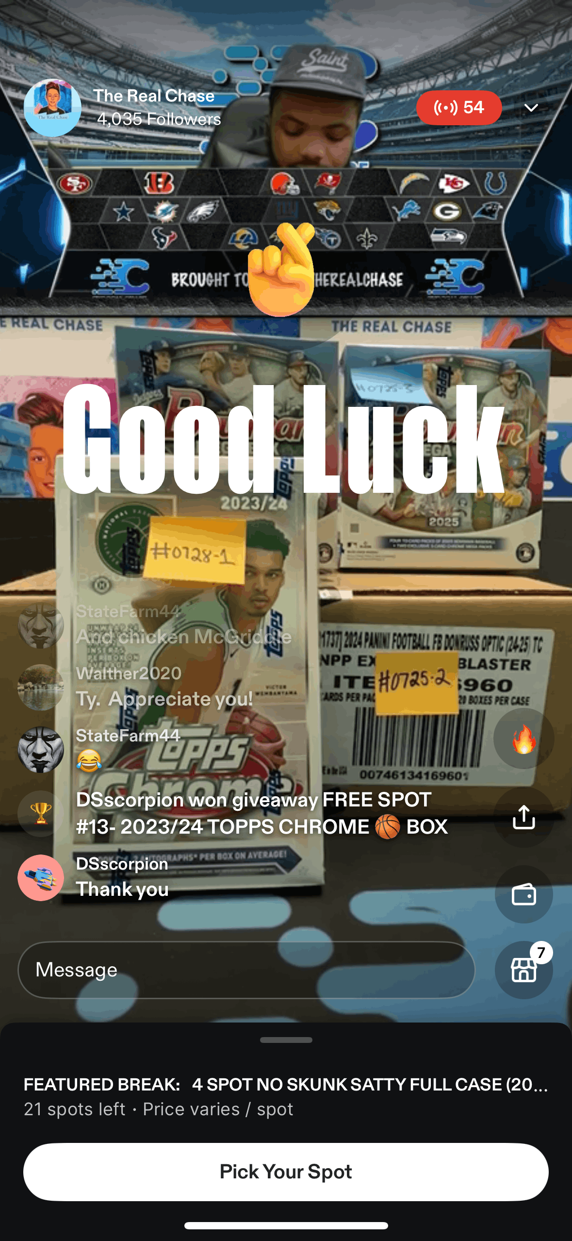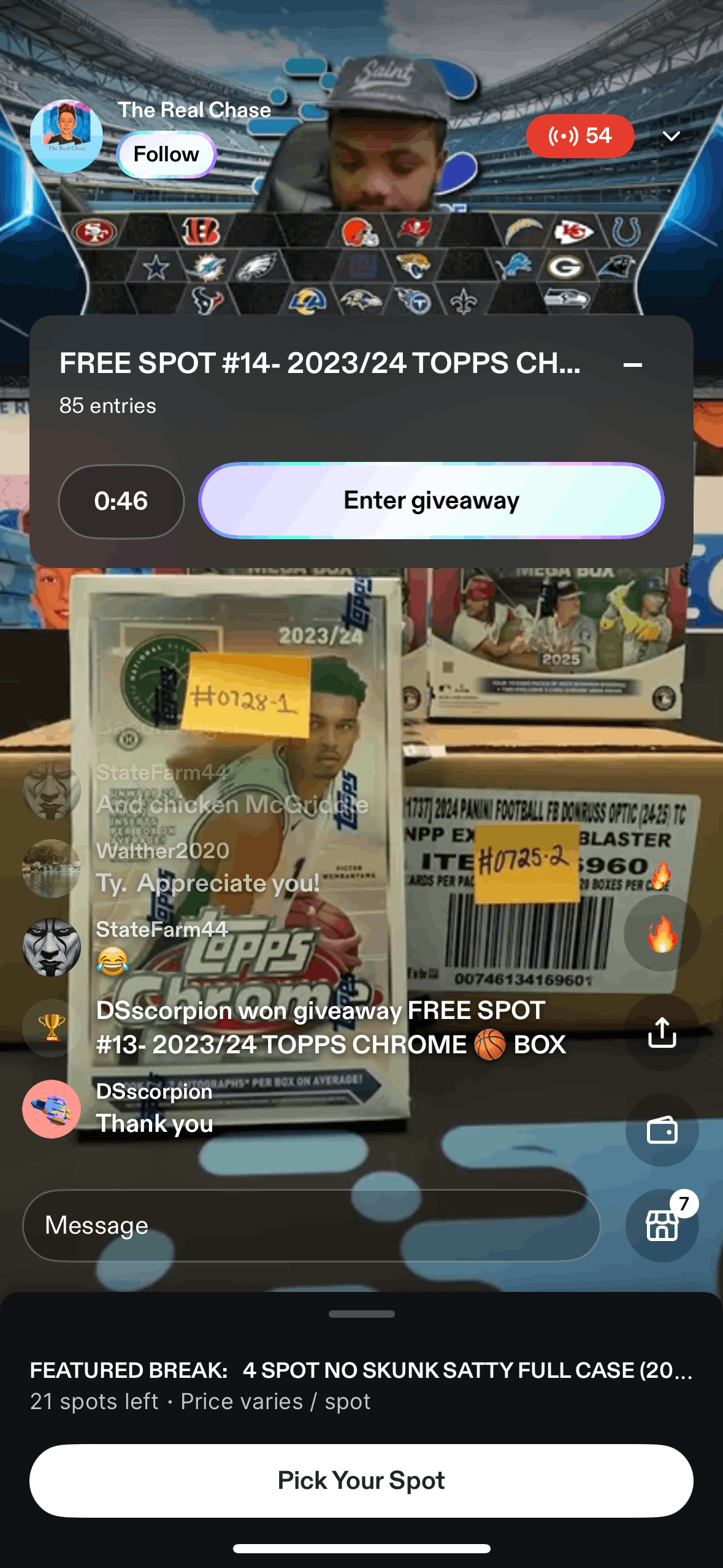 The user enters a giveaway from a live stream. A confirmation message appears after the entry is processed.