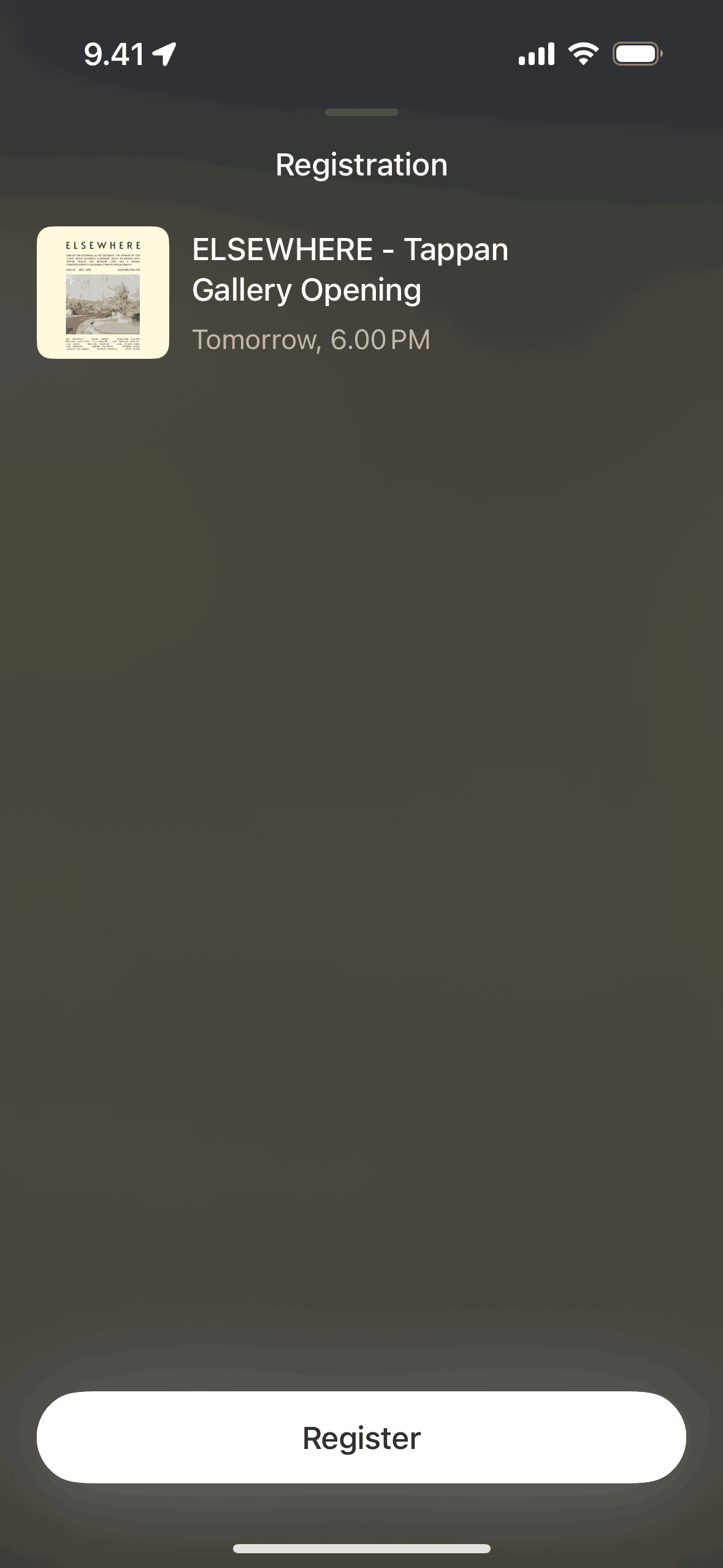 The user views event details, registers by agreeing to terms, and receives confirmation. They can then access their ticket or get directions.