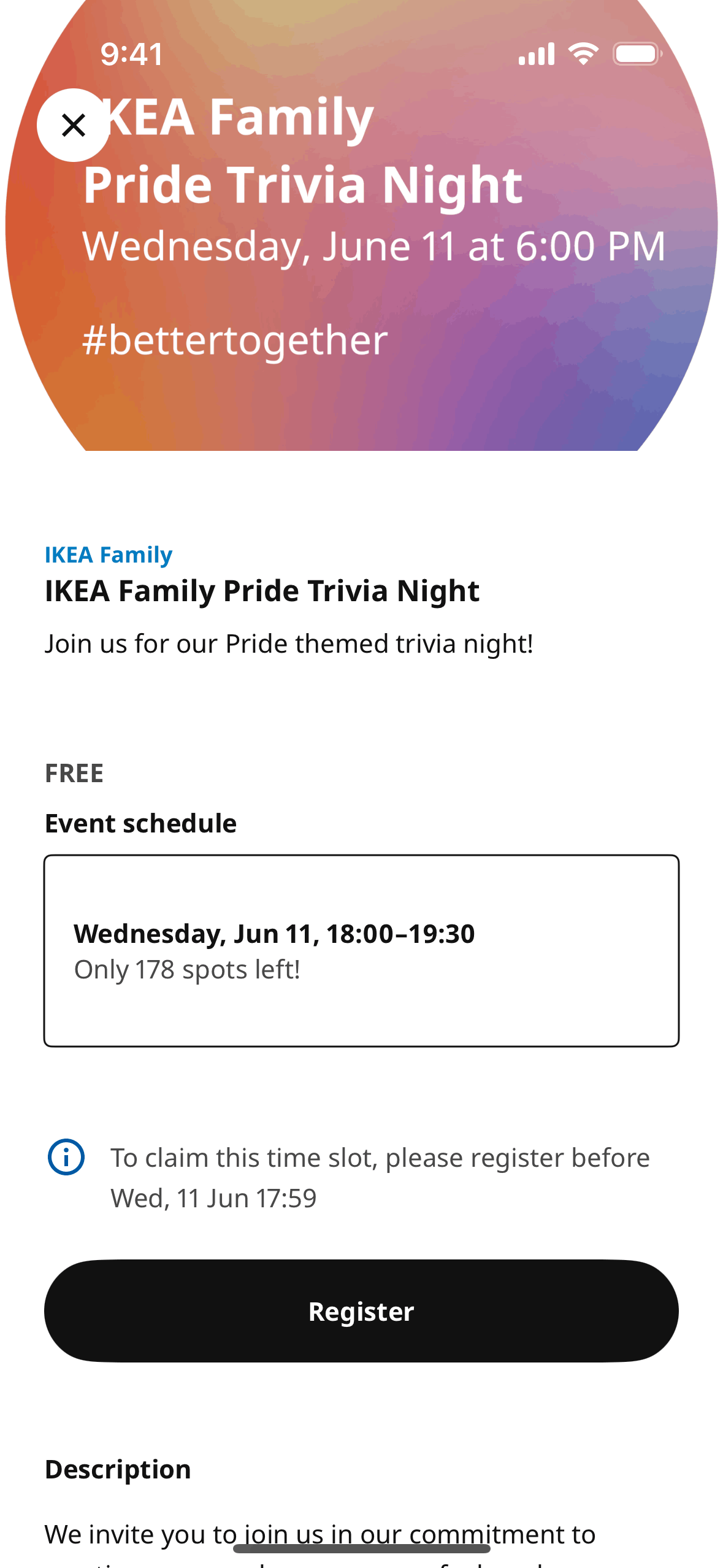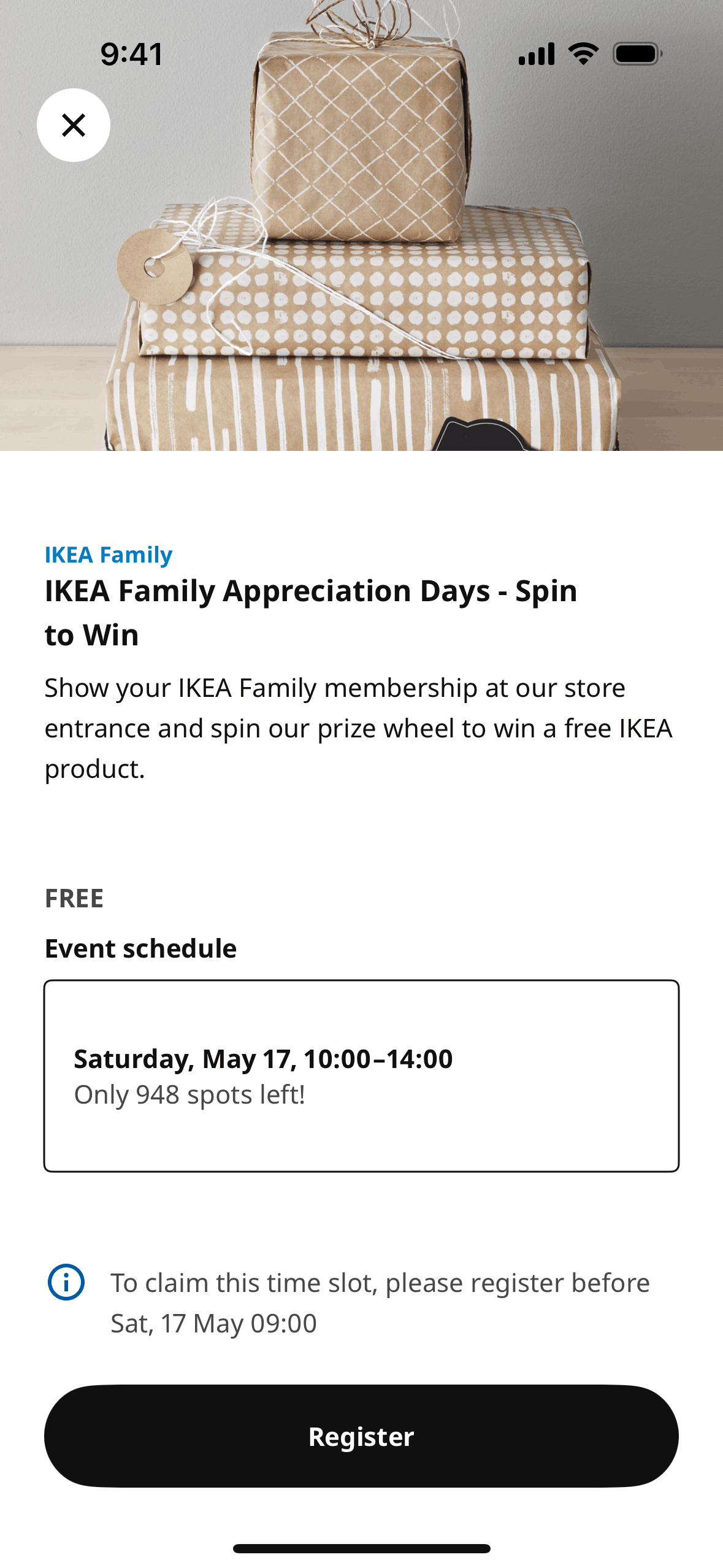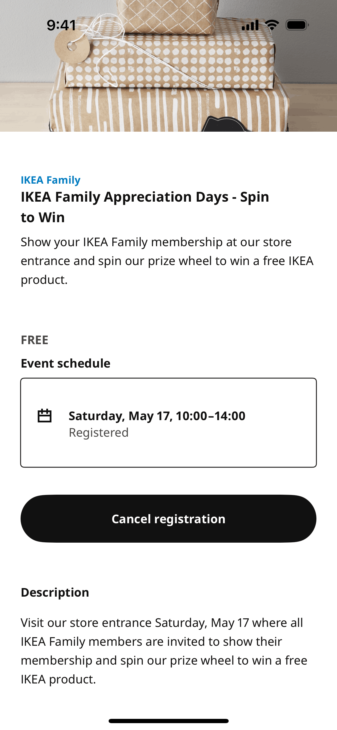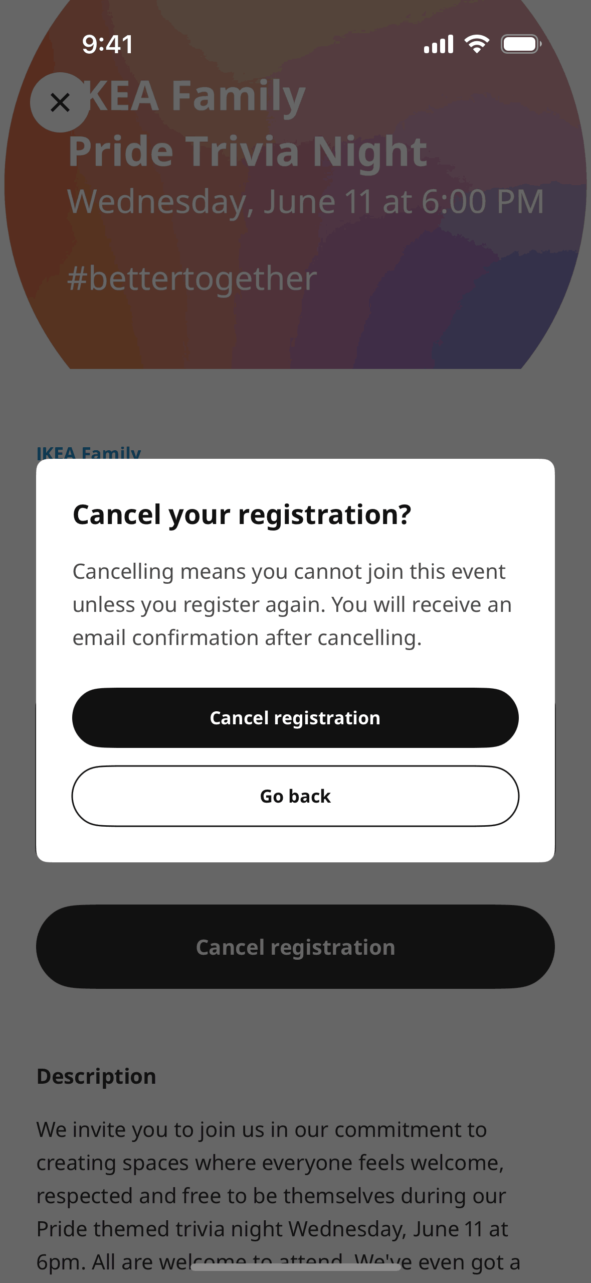 The user cancels their registration for an event. They confirm the cancellation and are then presented with the option to register again.