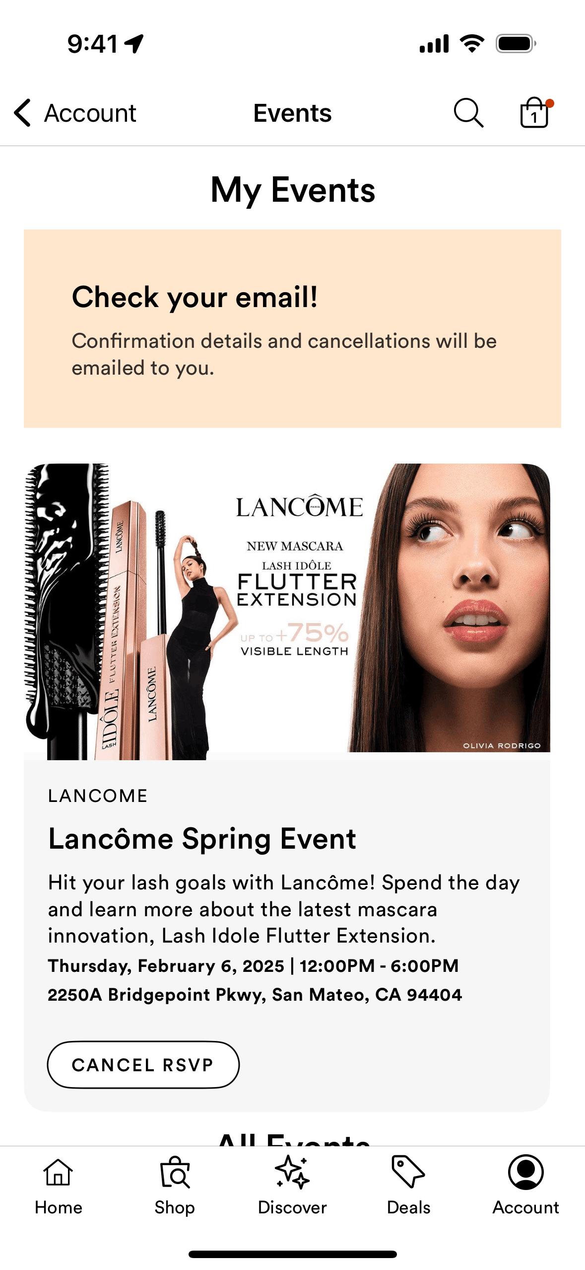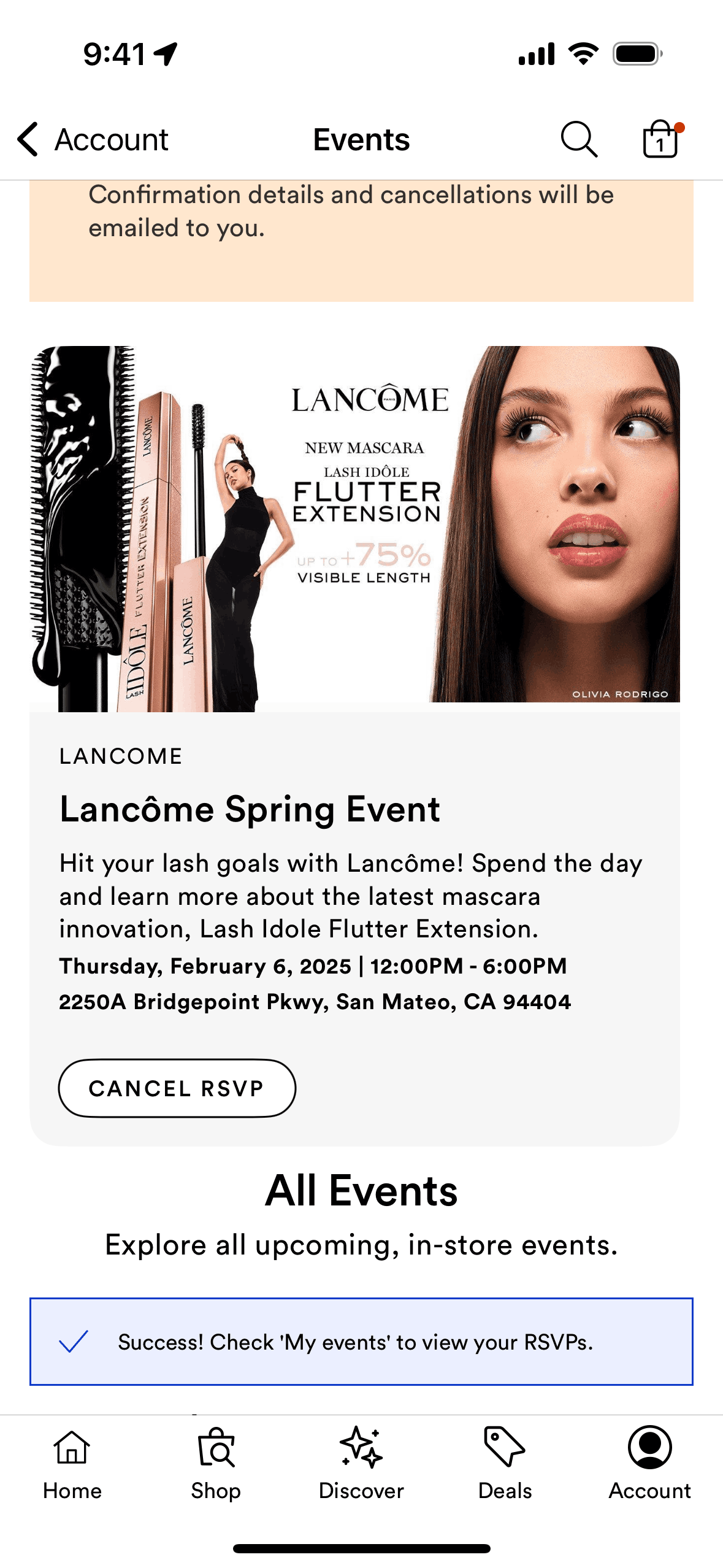 The user views a list of events, RSVPs to an event, and then views the event in their 'My Events' list.