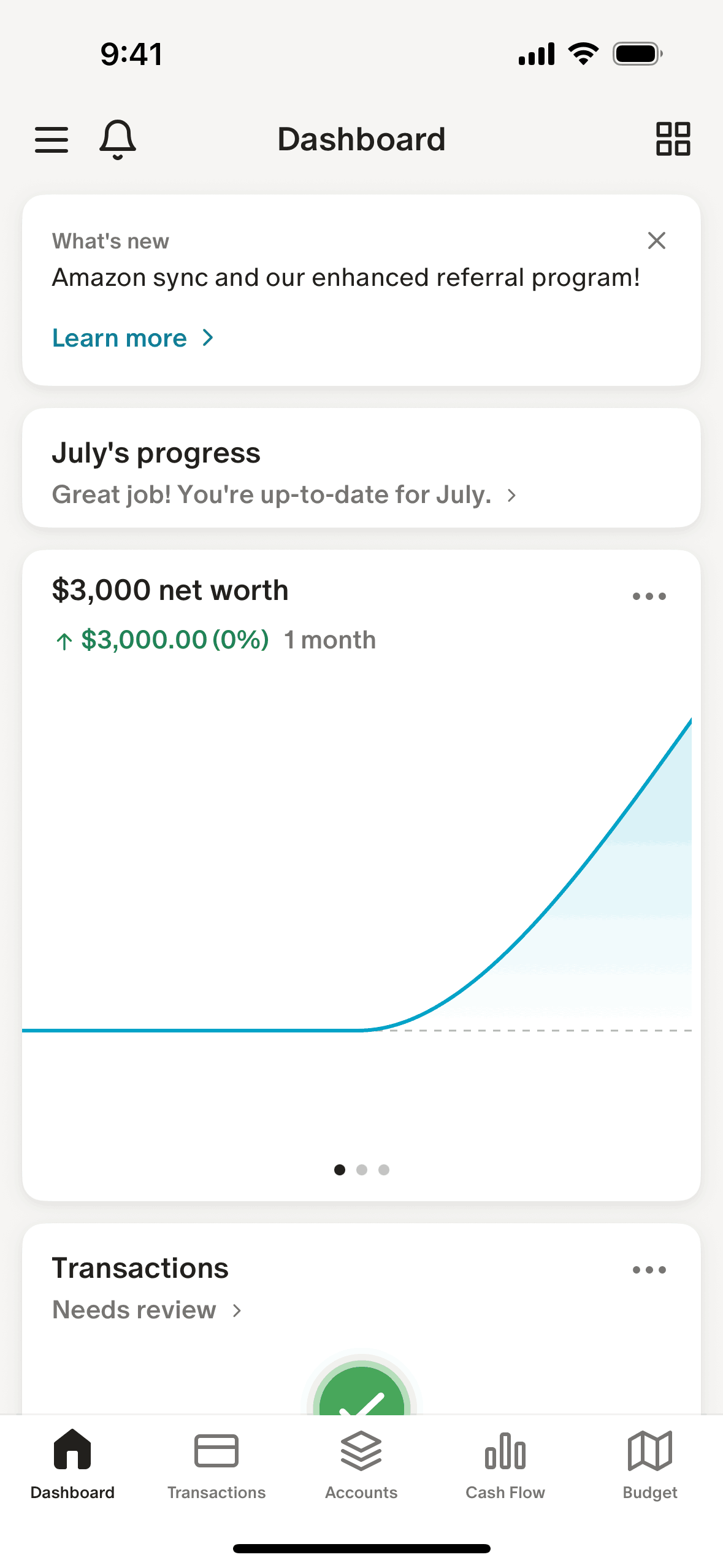 The user customizes their dashboard by selecting which widgets to display. The updated dashboard reflects these customization choices.