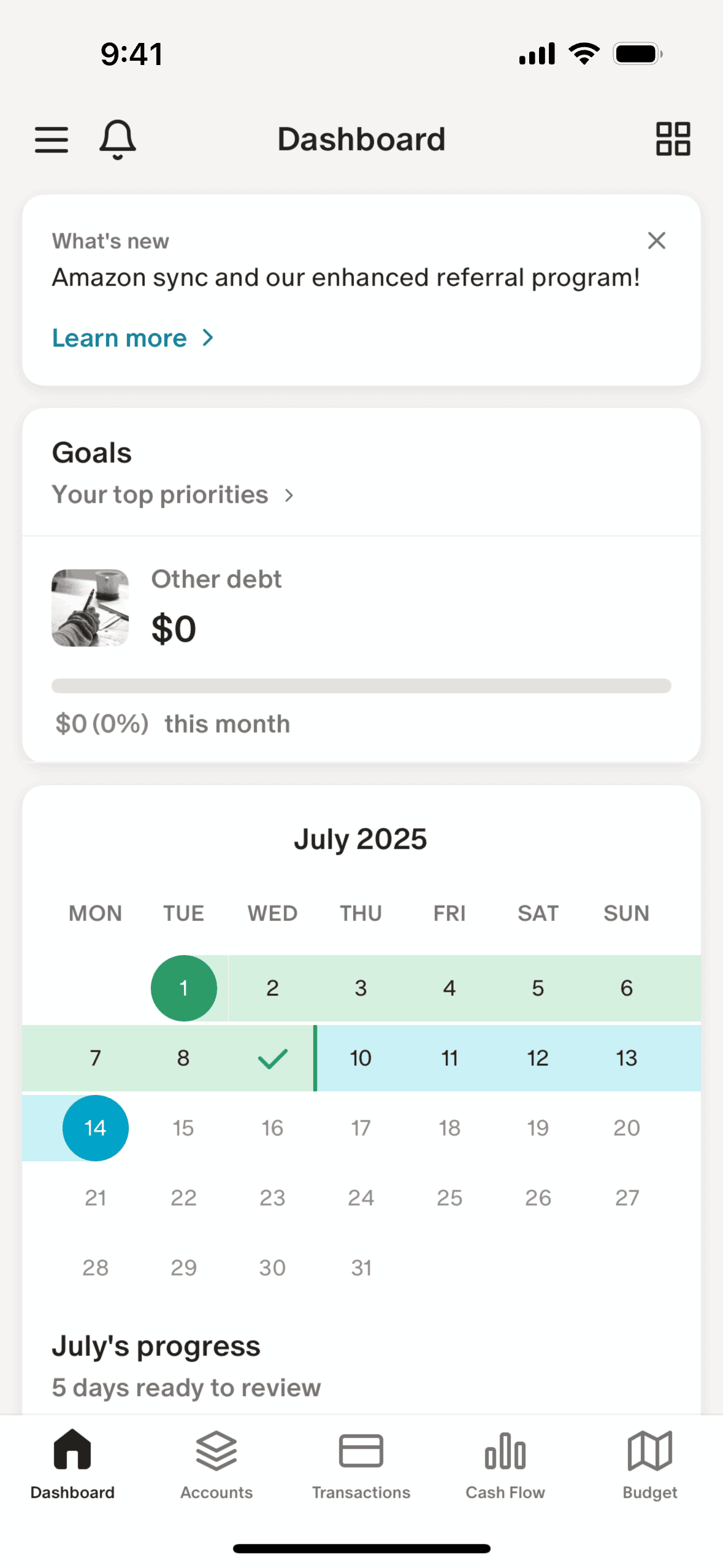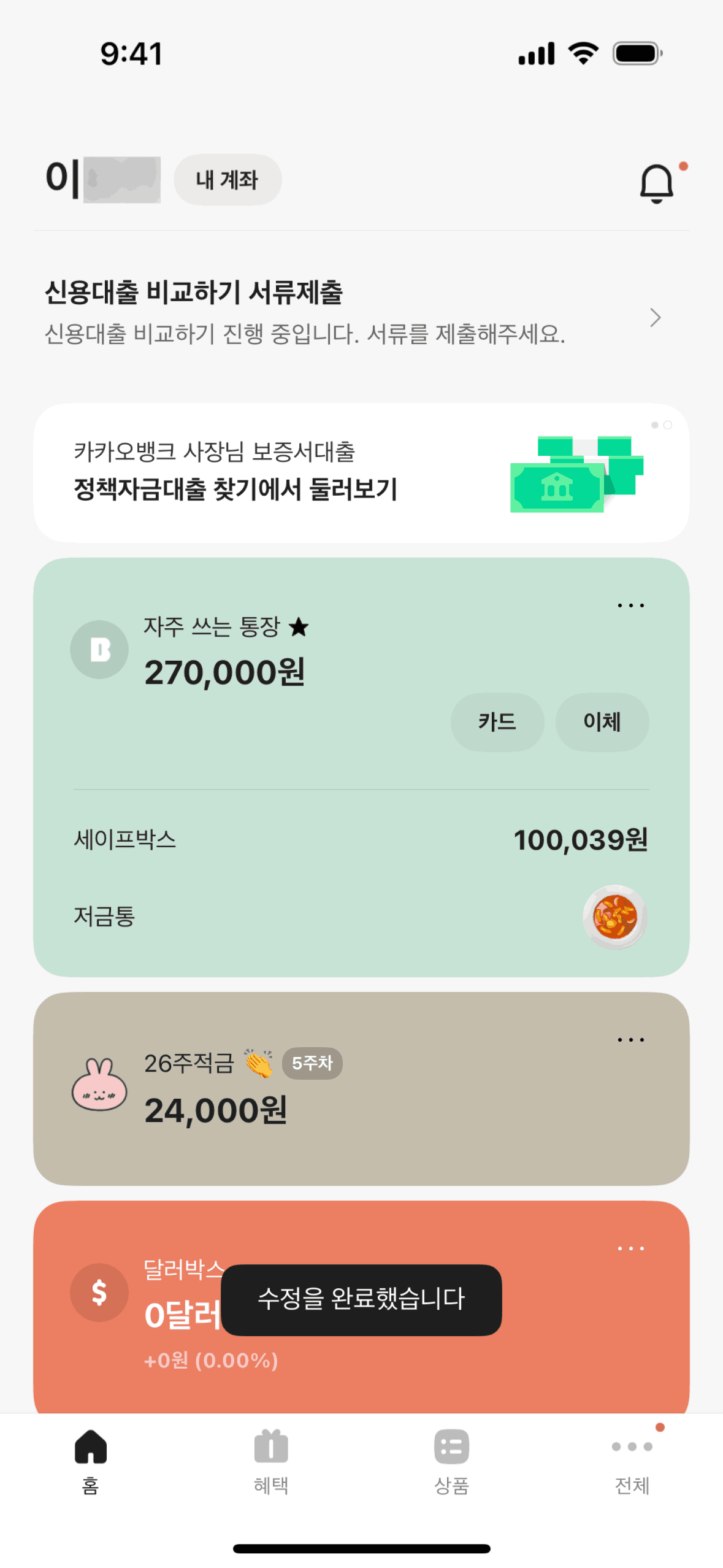 The user customizes their home screen by reordering sections and hiding the "Spending footprint". The updated home screen reflects these changes.