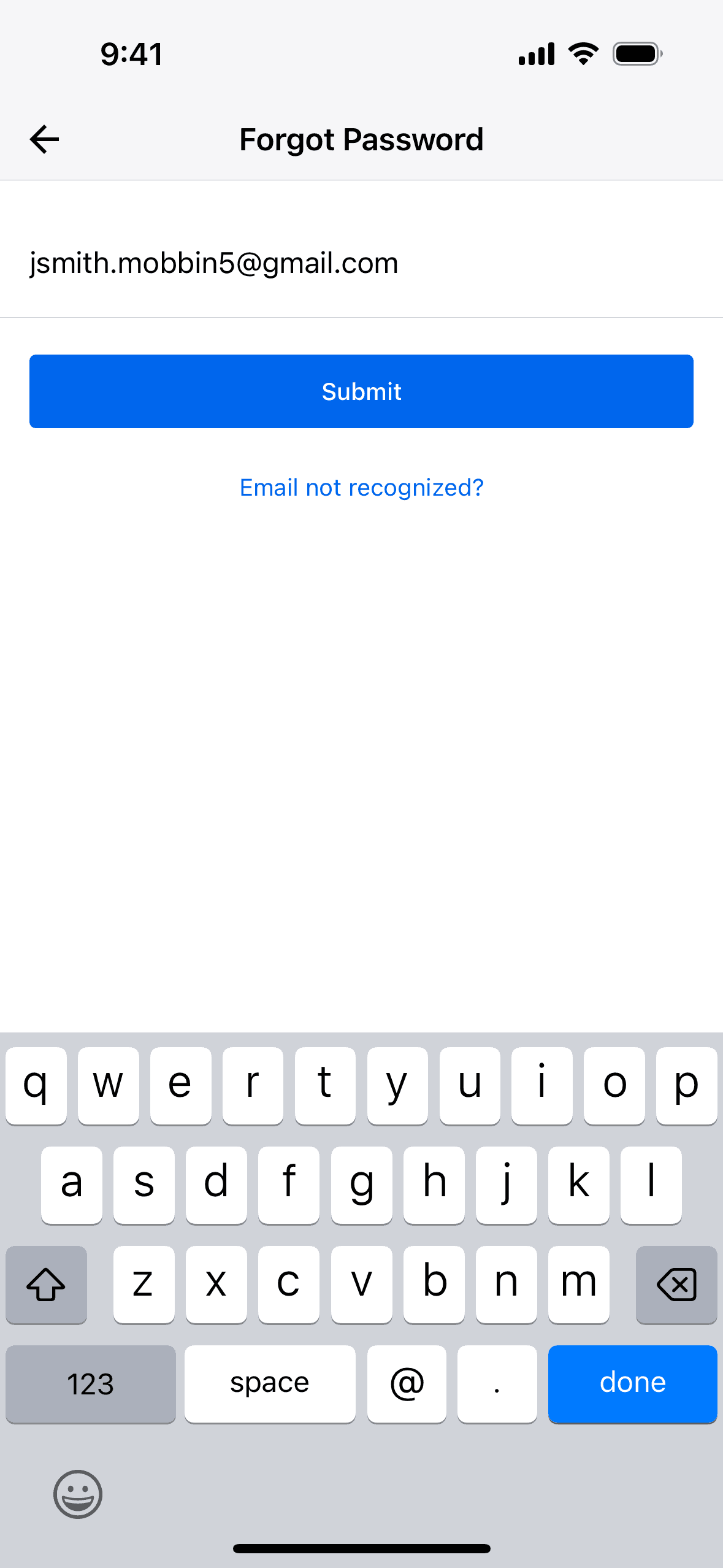 The user flow demonstrates resetting a password. It involves entering an email, submitting a request, and receiving a confirmation.