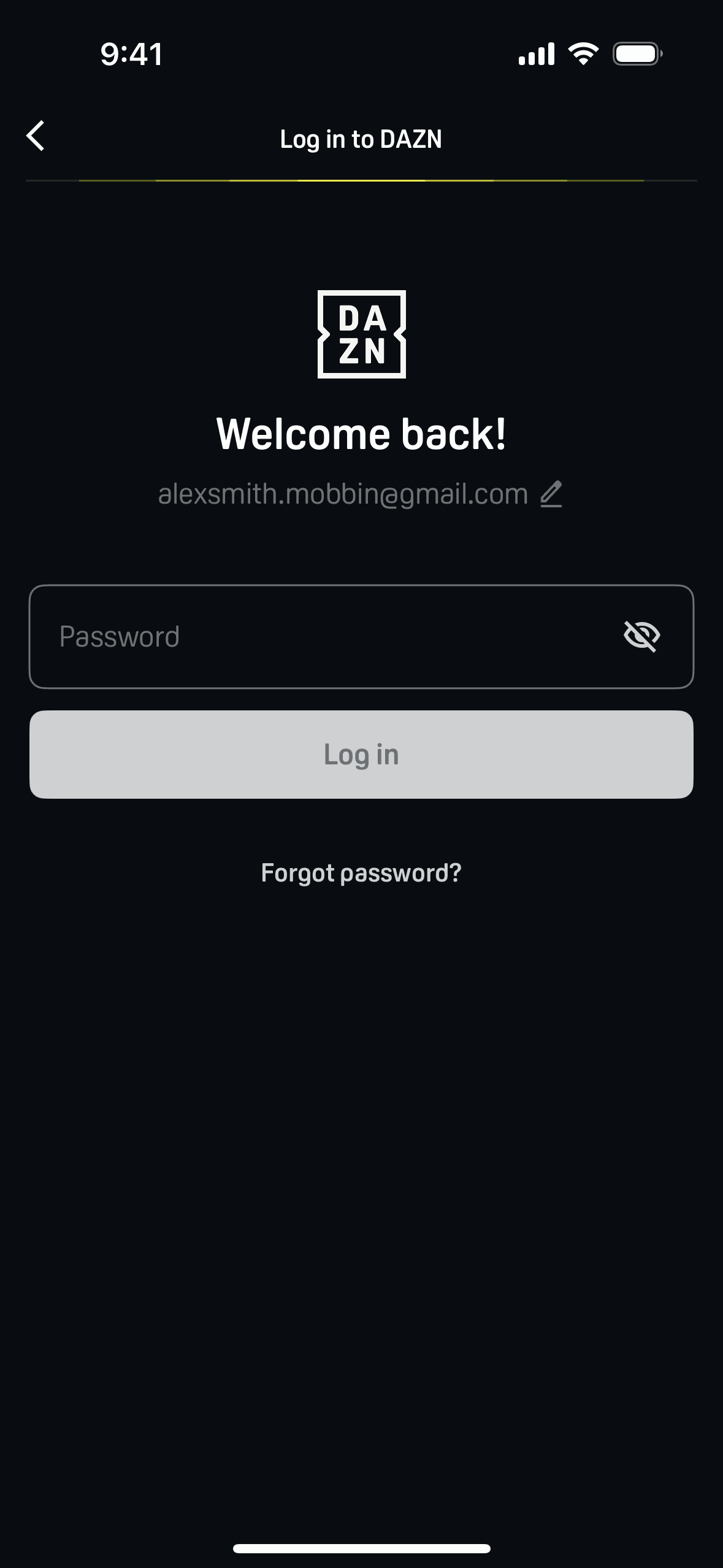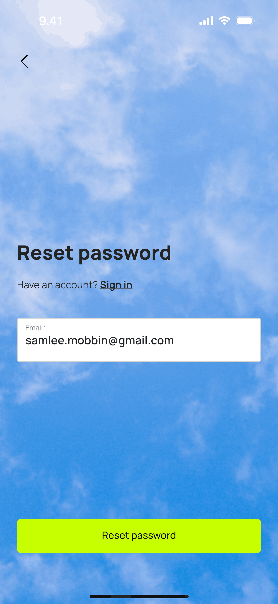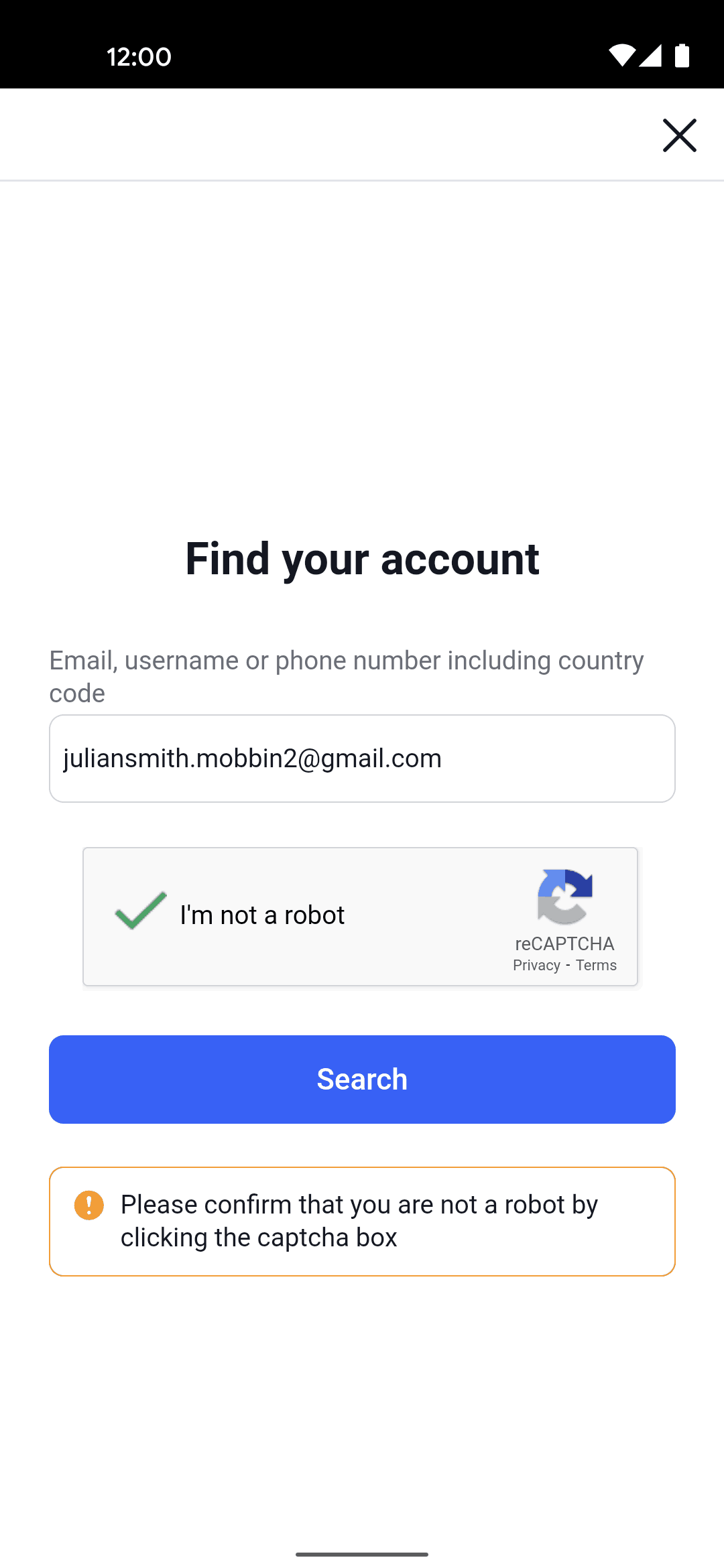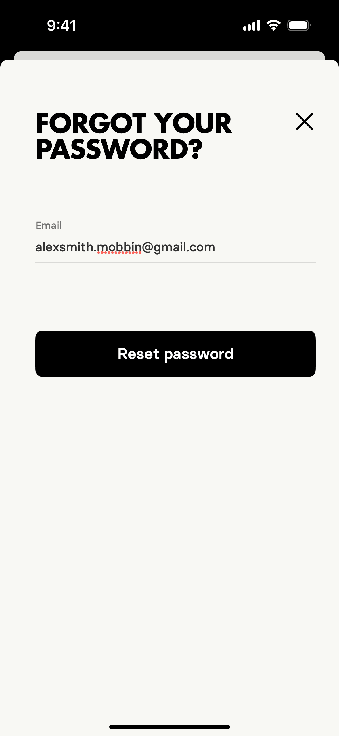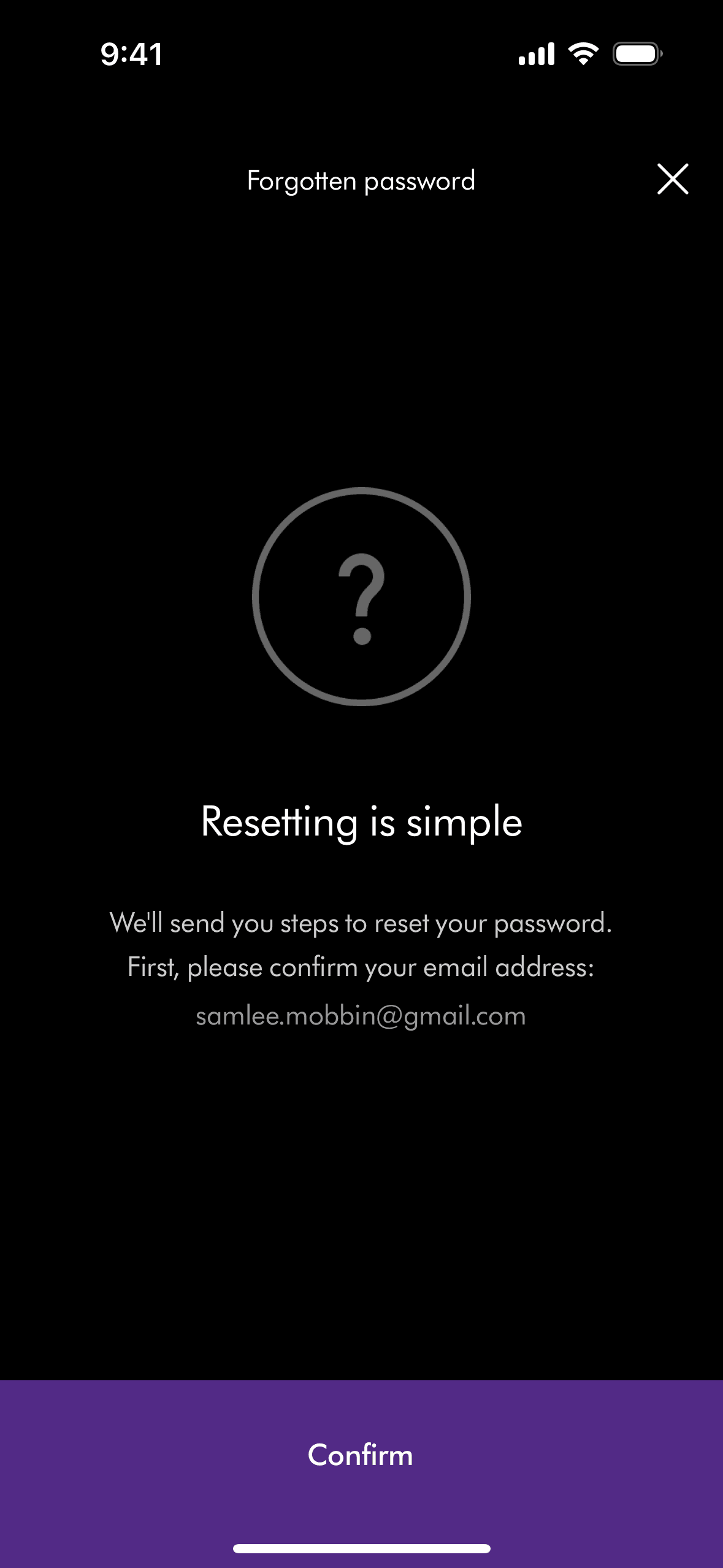 The user initiates a password reset flow from the login screen. They confirm their email and receive a confirmation that a reset email has been sent.