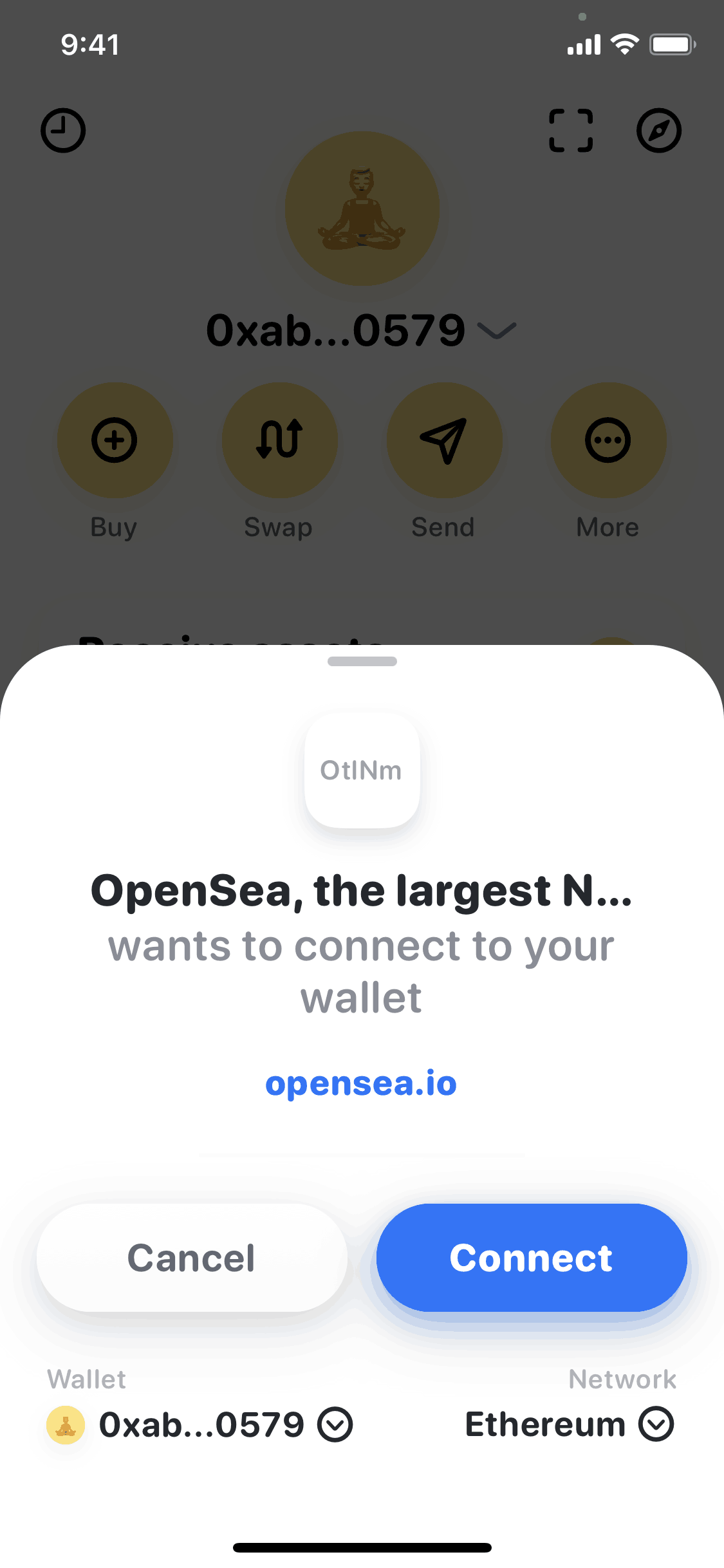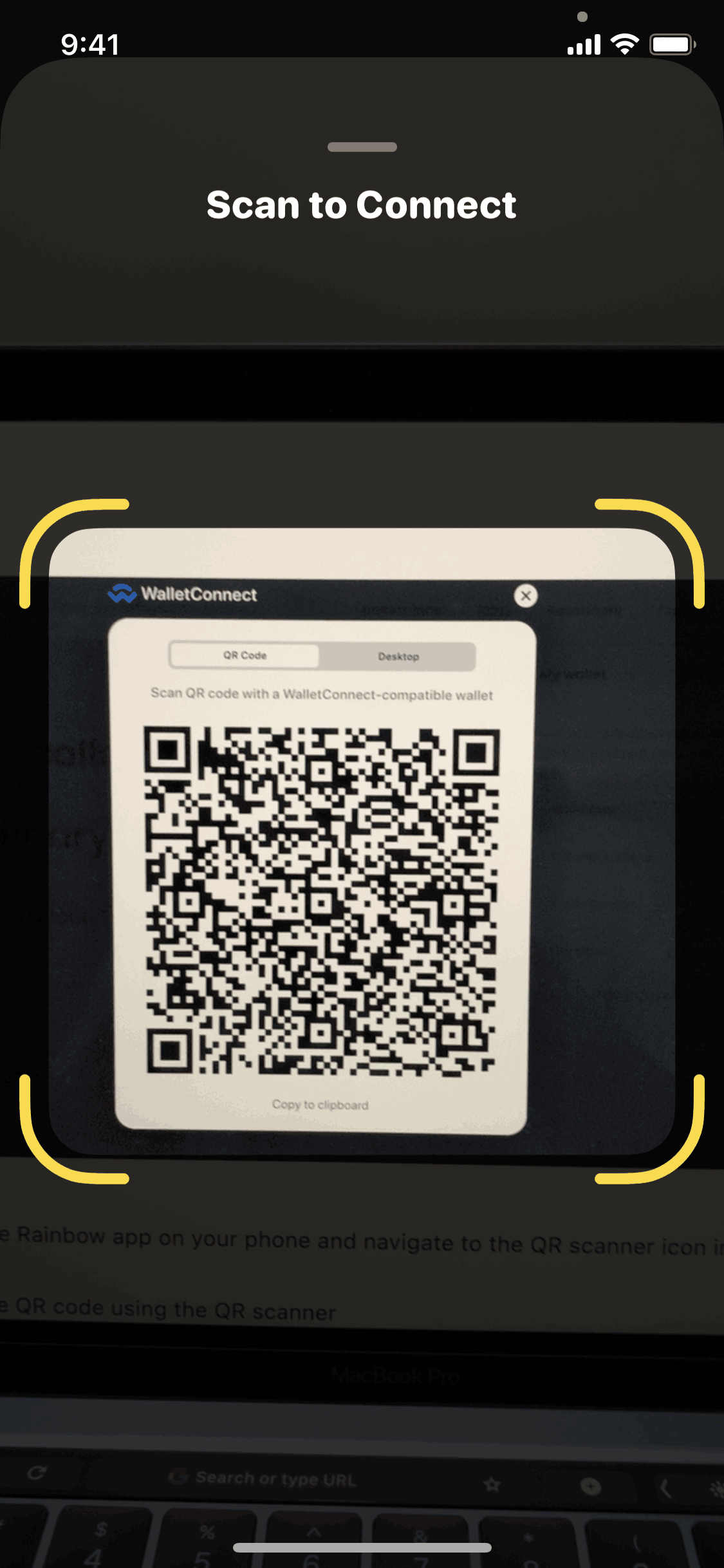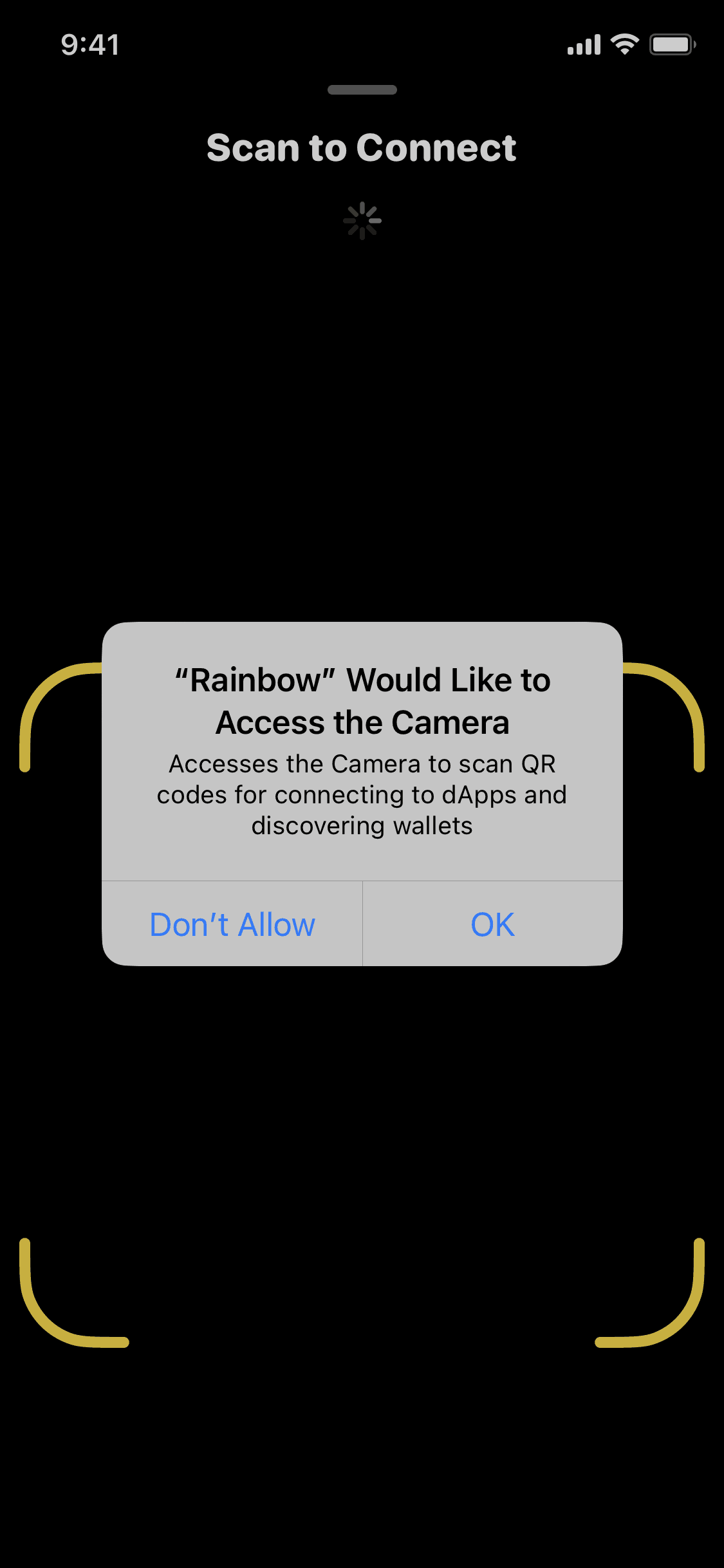The user scans a QR code to connect their wallet to a dApp. The user grants permissions and confirms the connection.