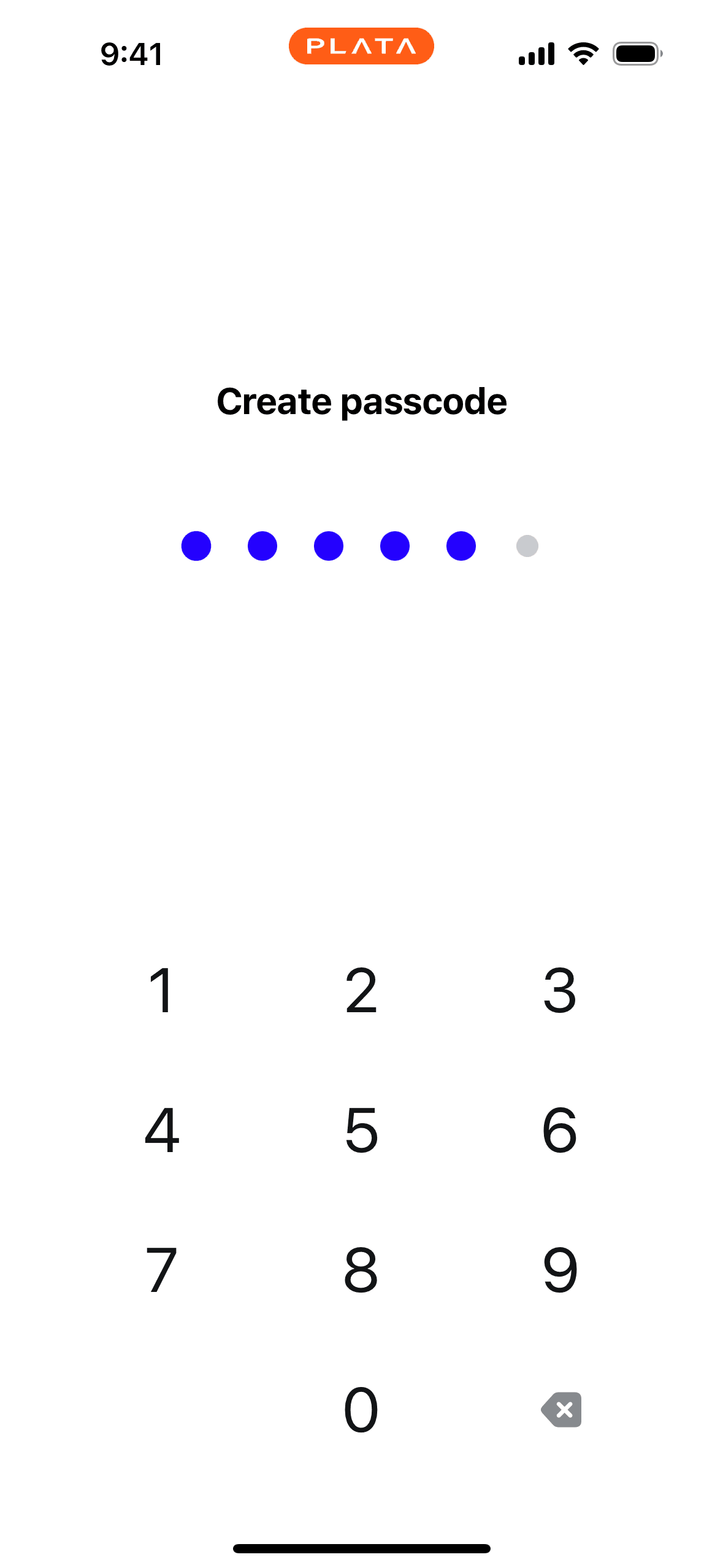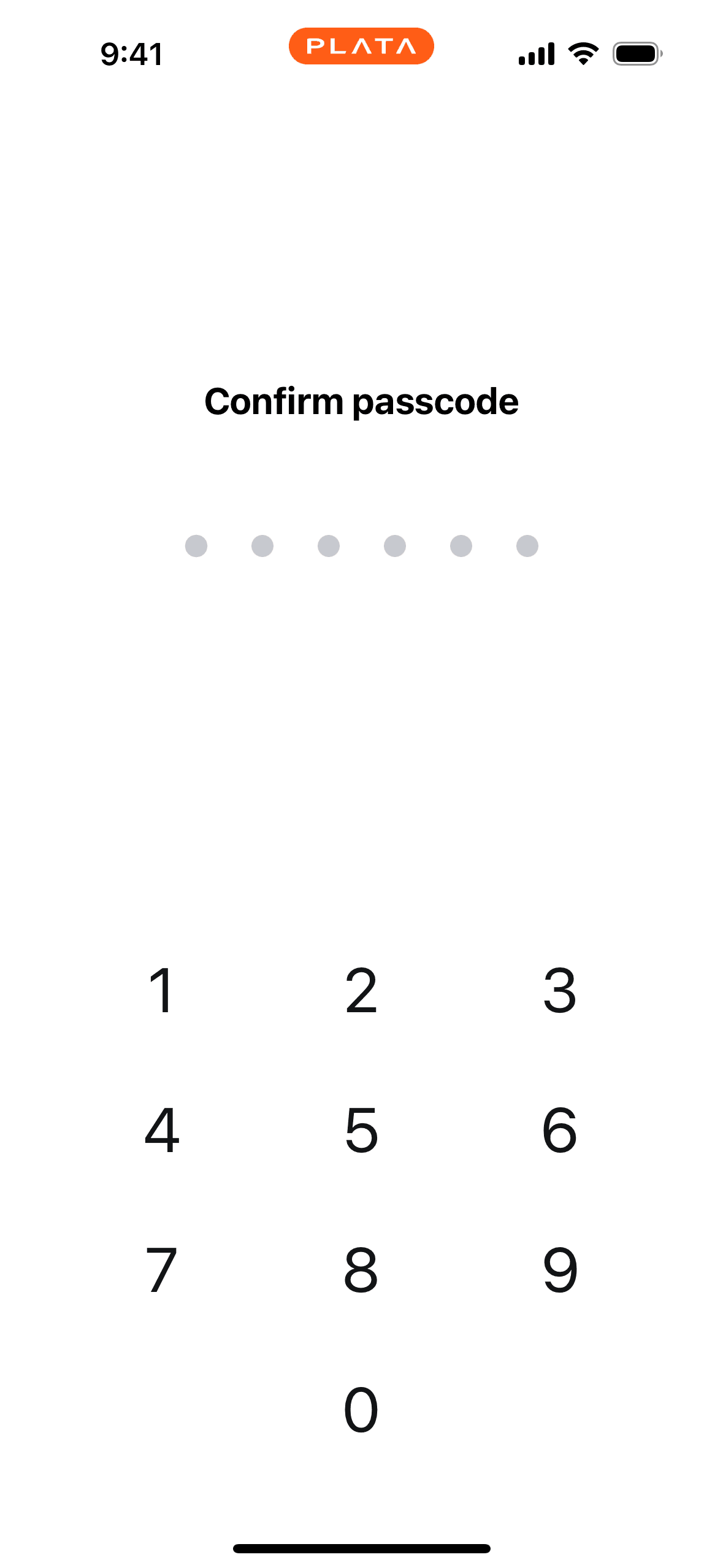 The user flow guides the user through setting up a passcode and then offers the option to enable Face ID for authentication. It begins with QR code scanning.