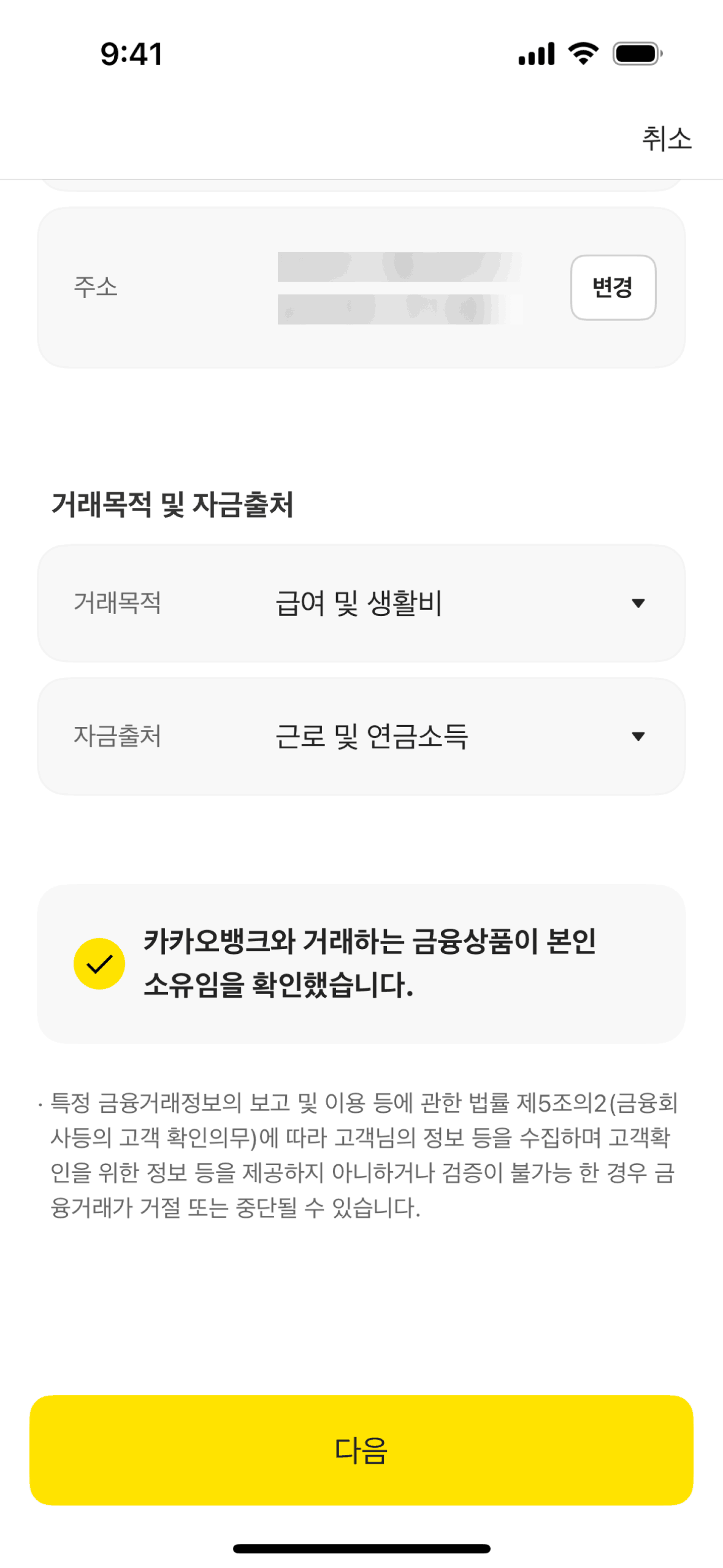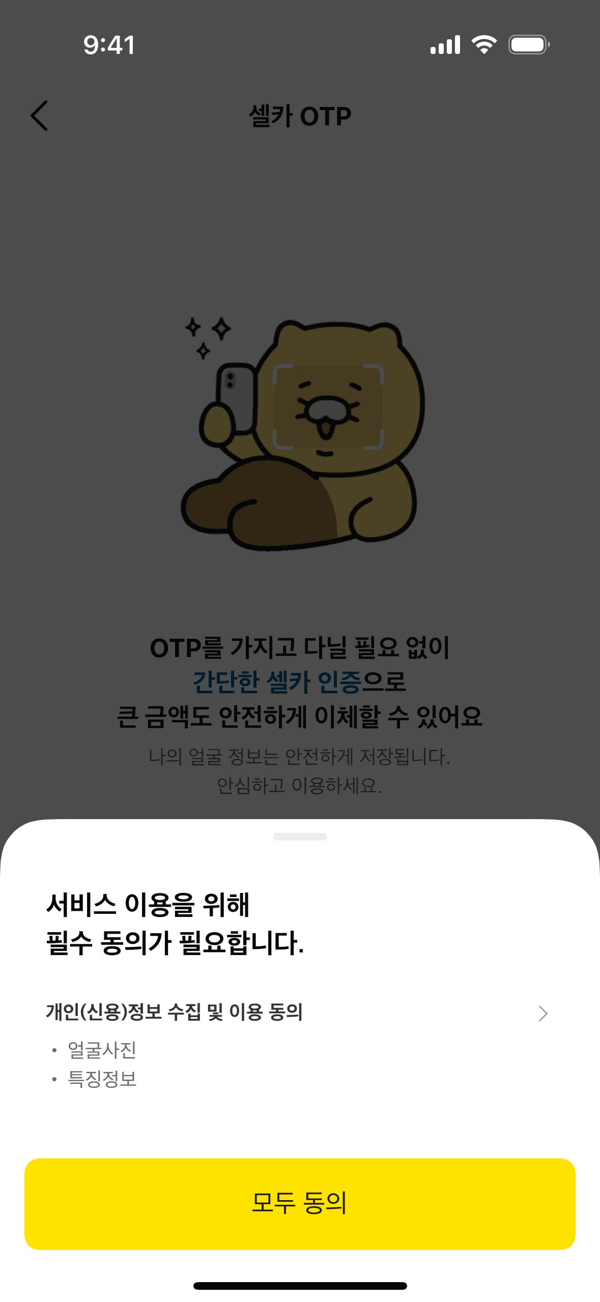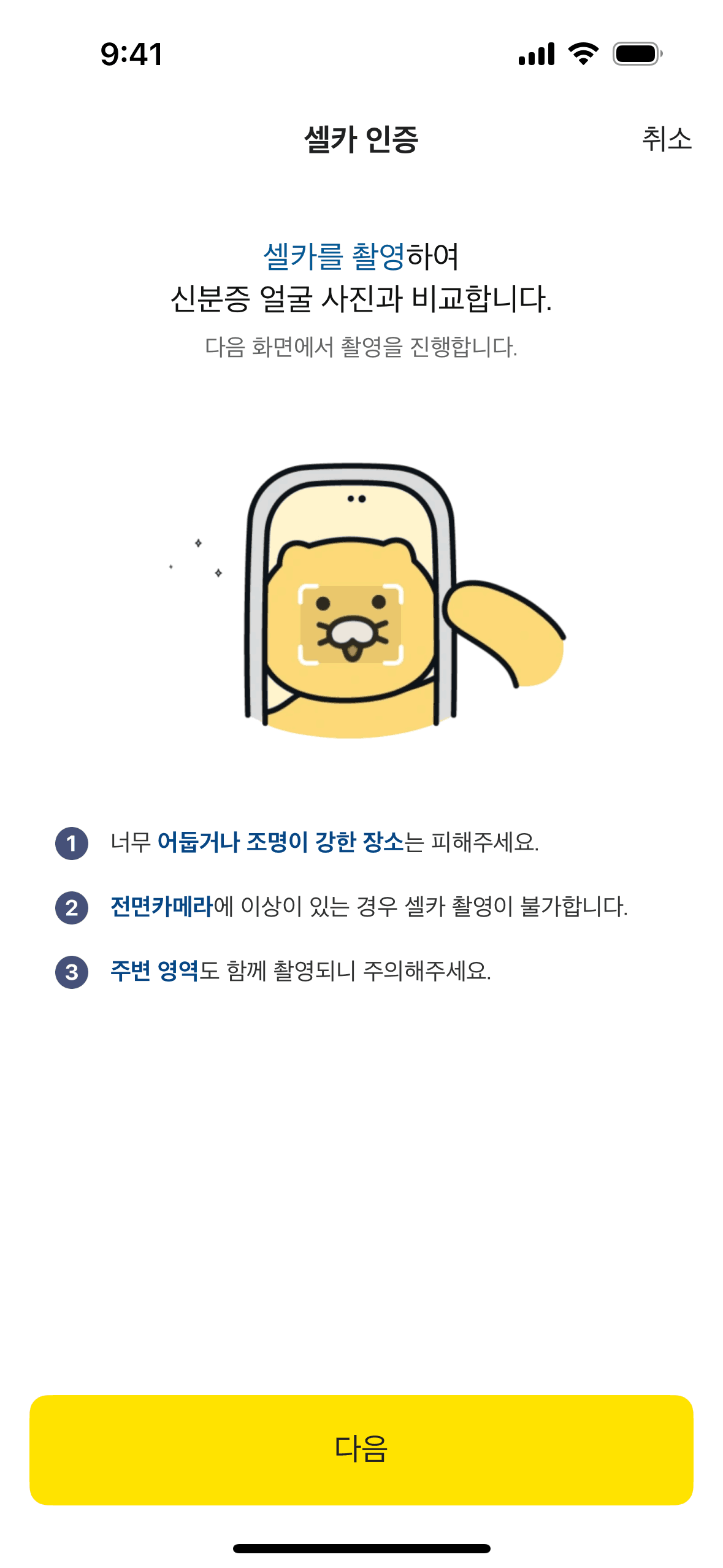 The user flow demonstrates setting up a personal safe by issuing a KakaoBank certificate. It involves ID submission, information confirmation, and account verification.