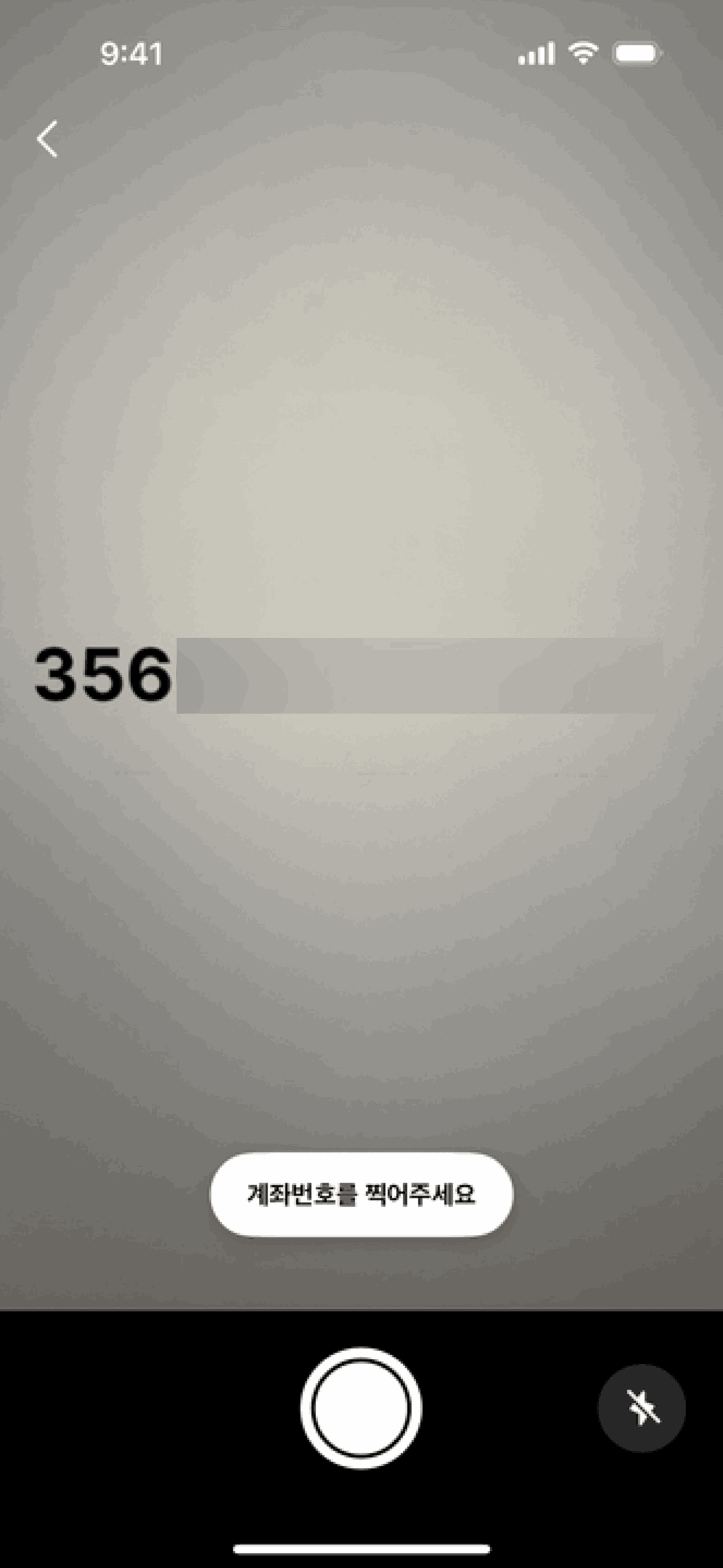 The user scans an account number using the camera and then enters the amount to send. This allows for quick and easy transfer to a new recipient.