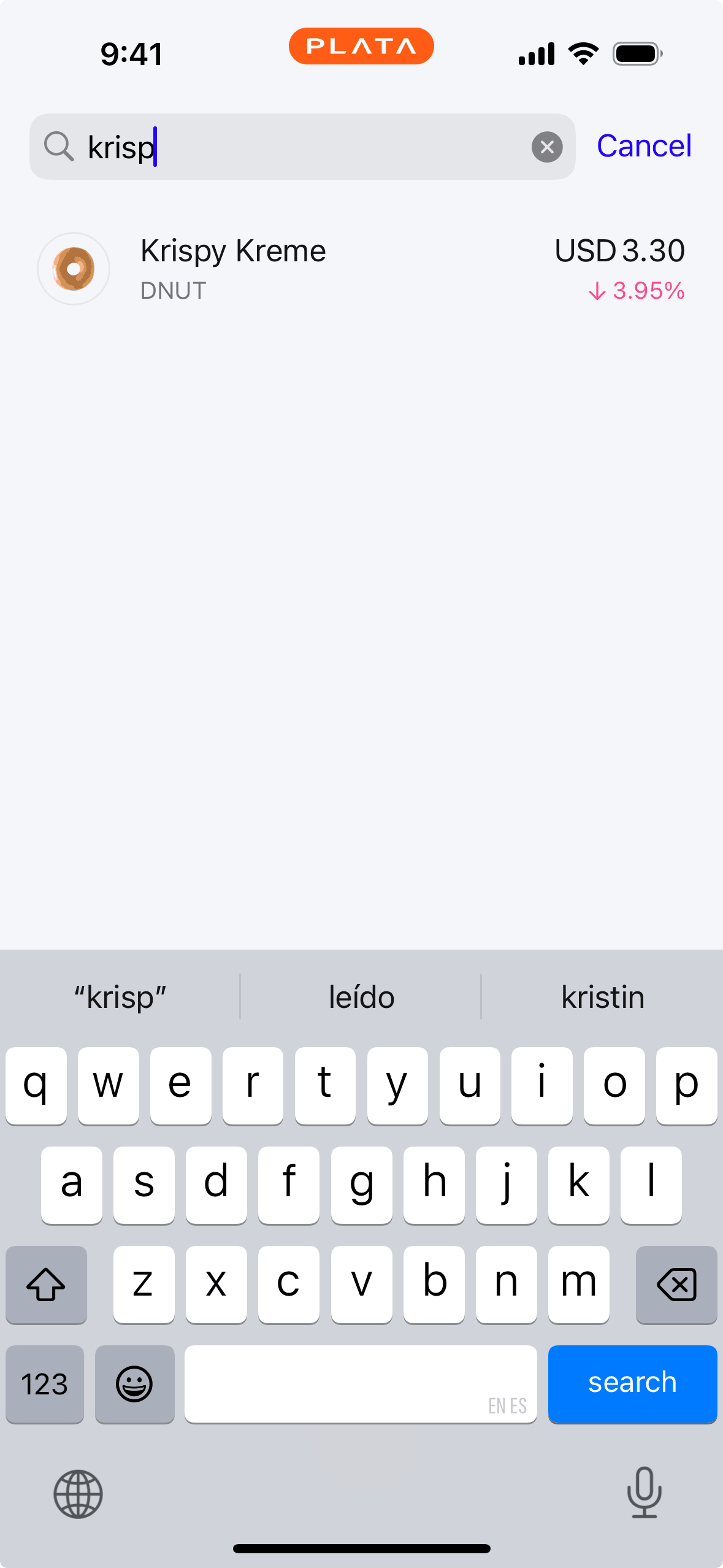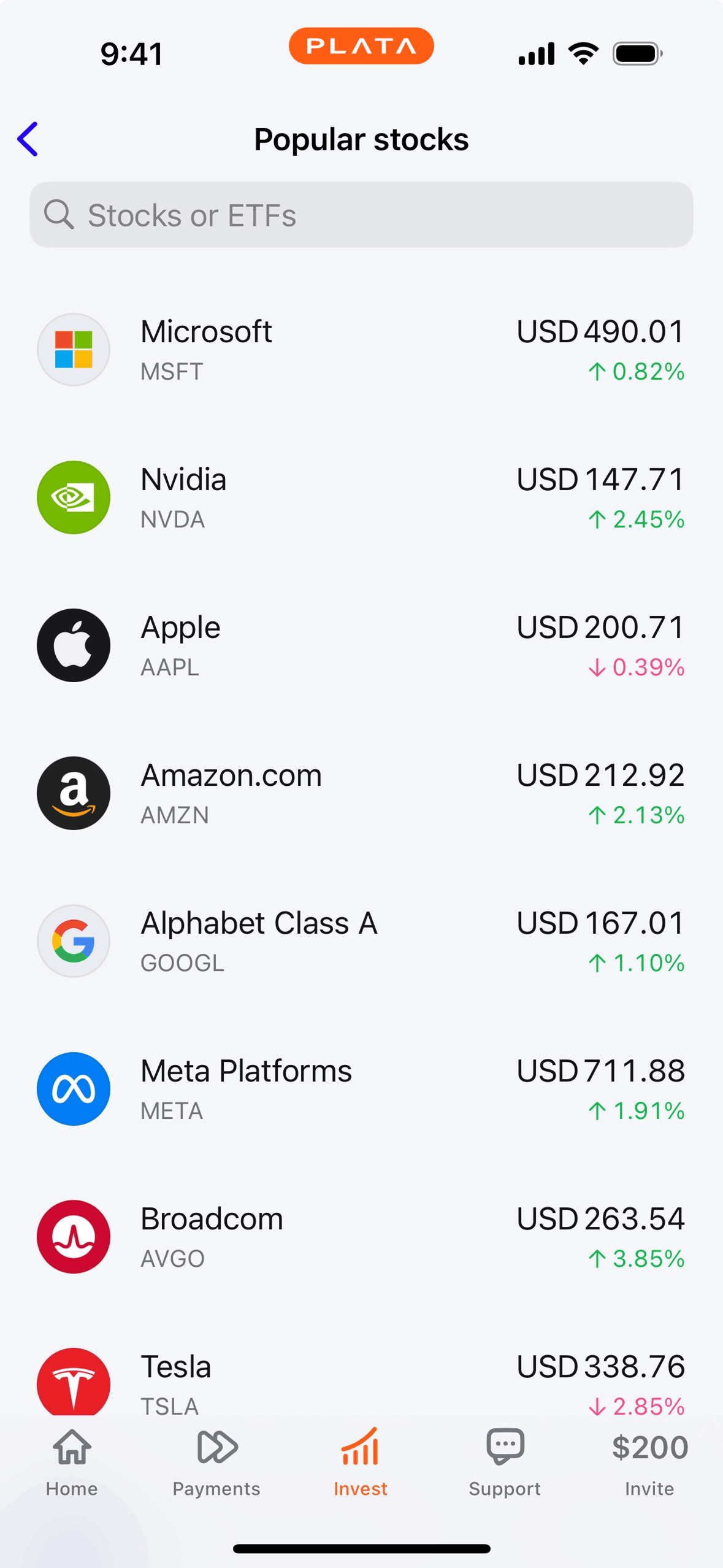 The user searches for a specific stock and views its details. The flow ends with the option to buy the stock.