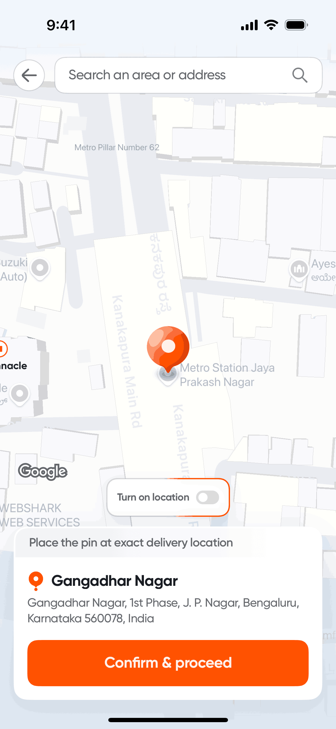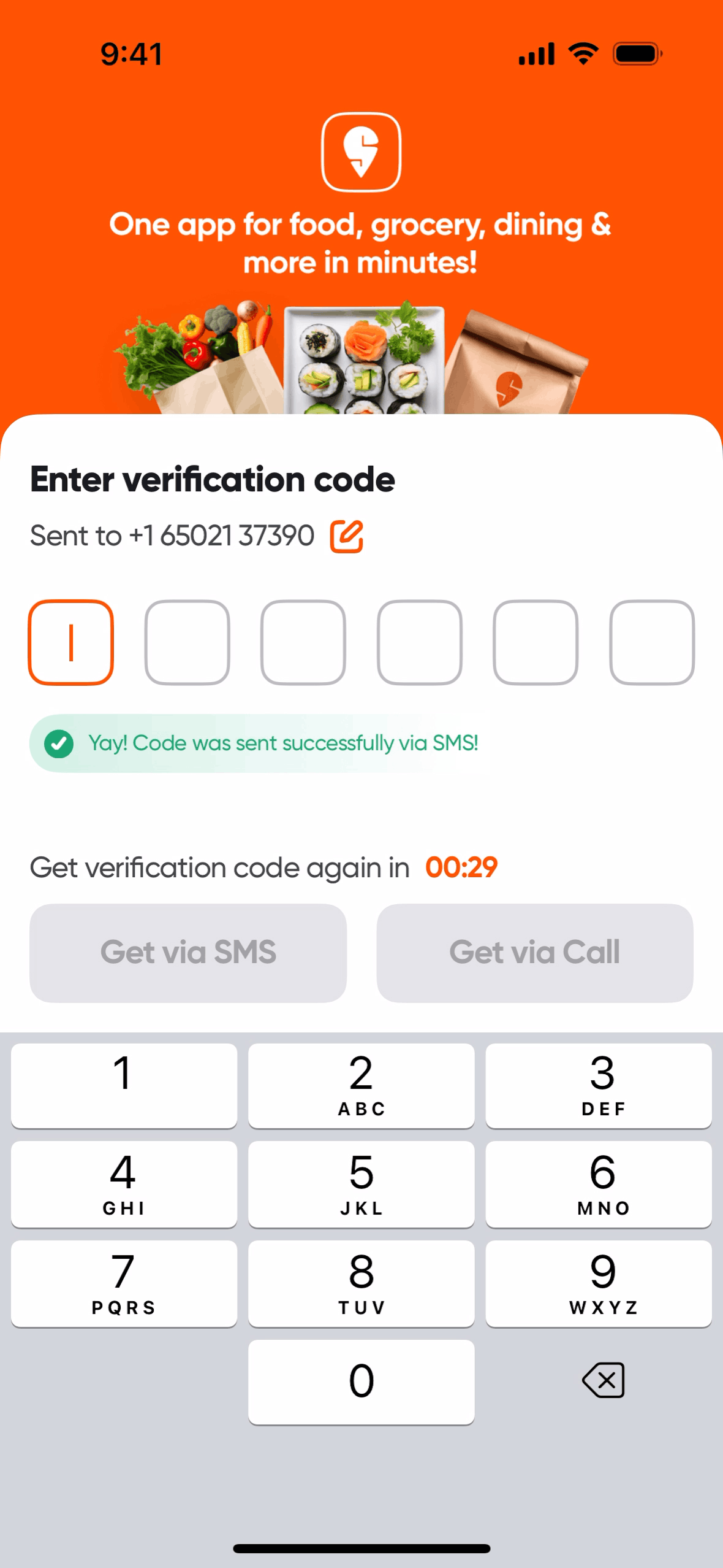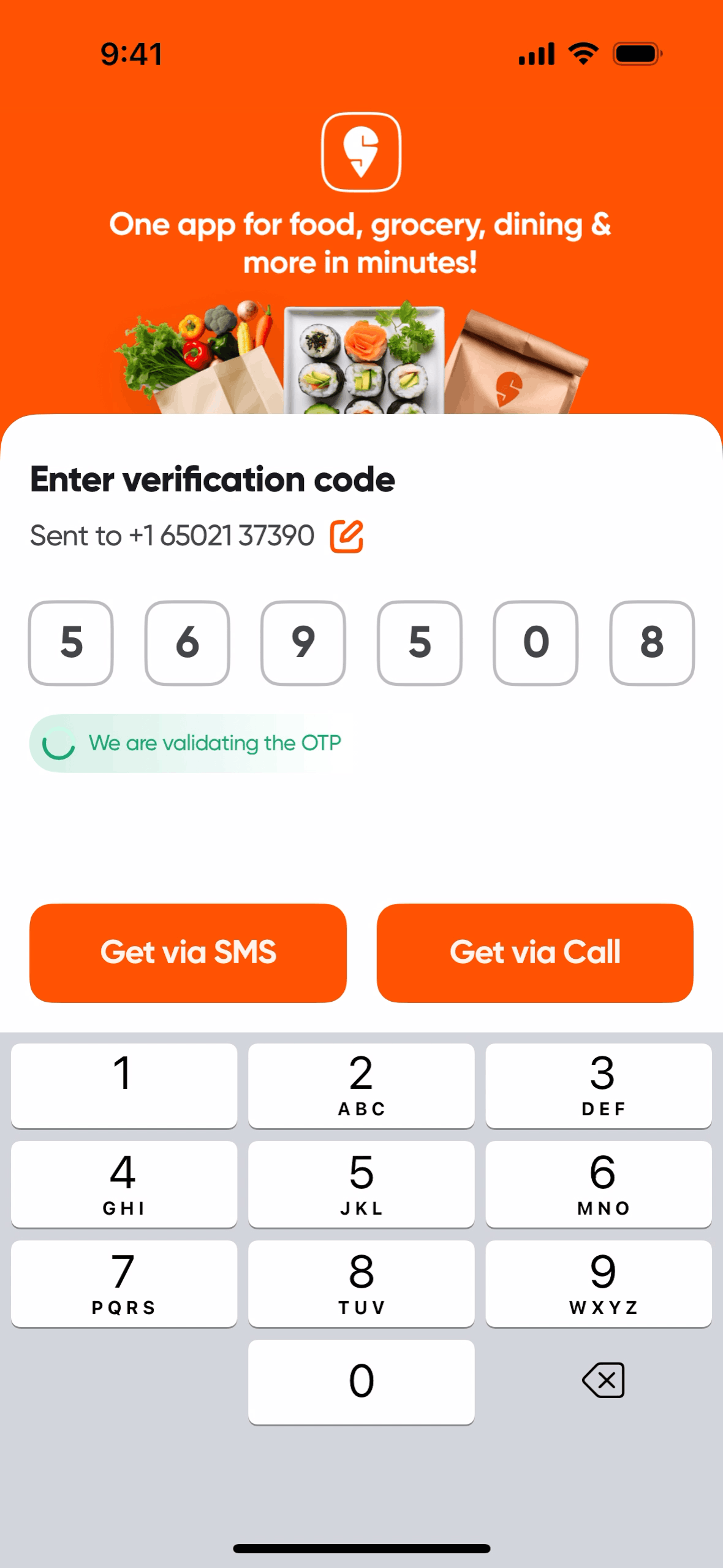 The user goes through the onboarding process, providing their phone number, name, and address. Finally, they land on the app's home screen.