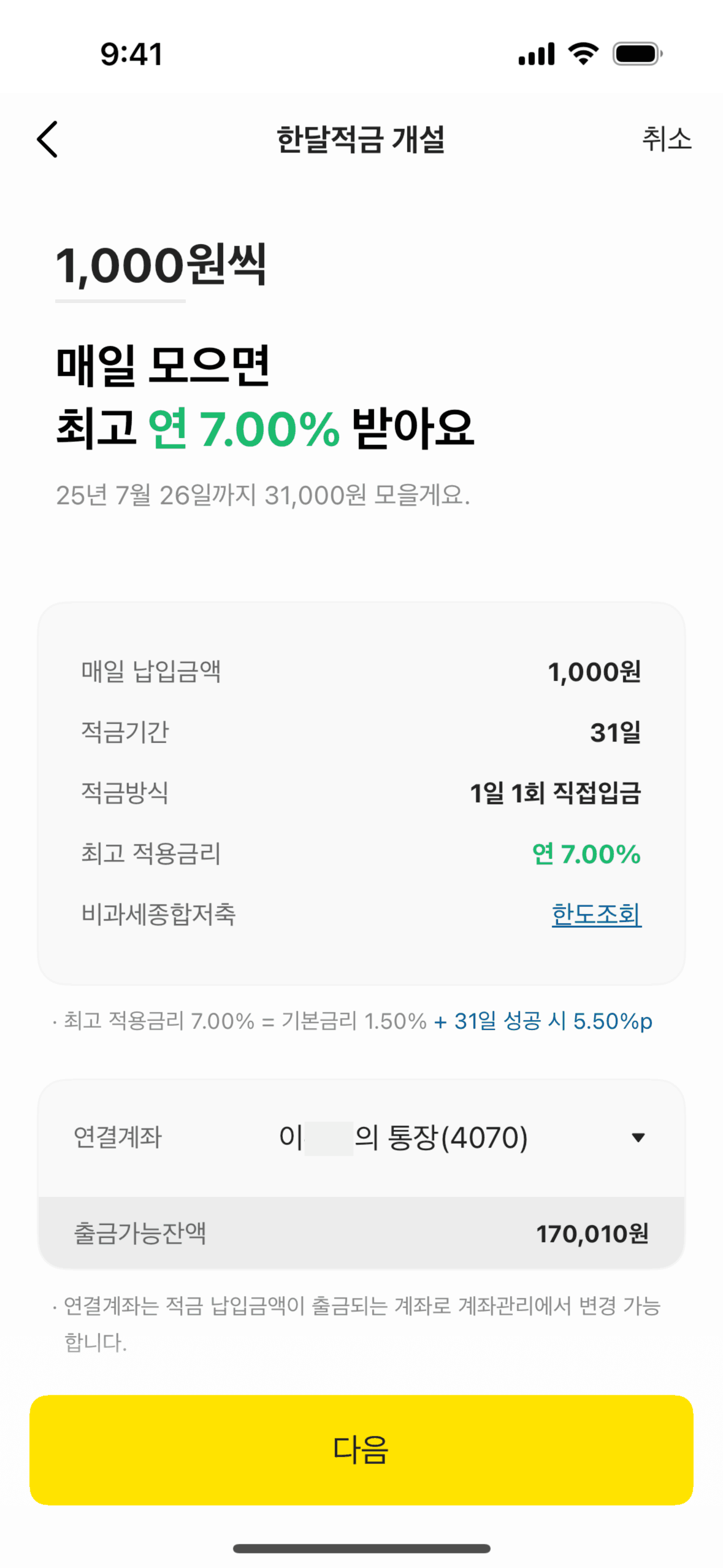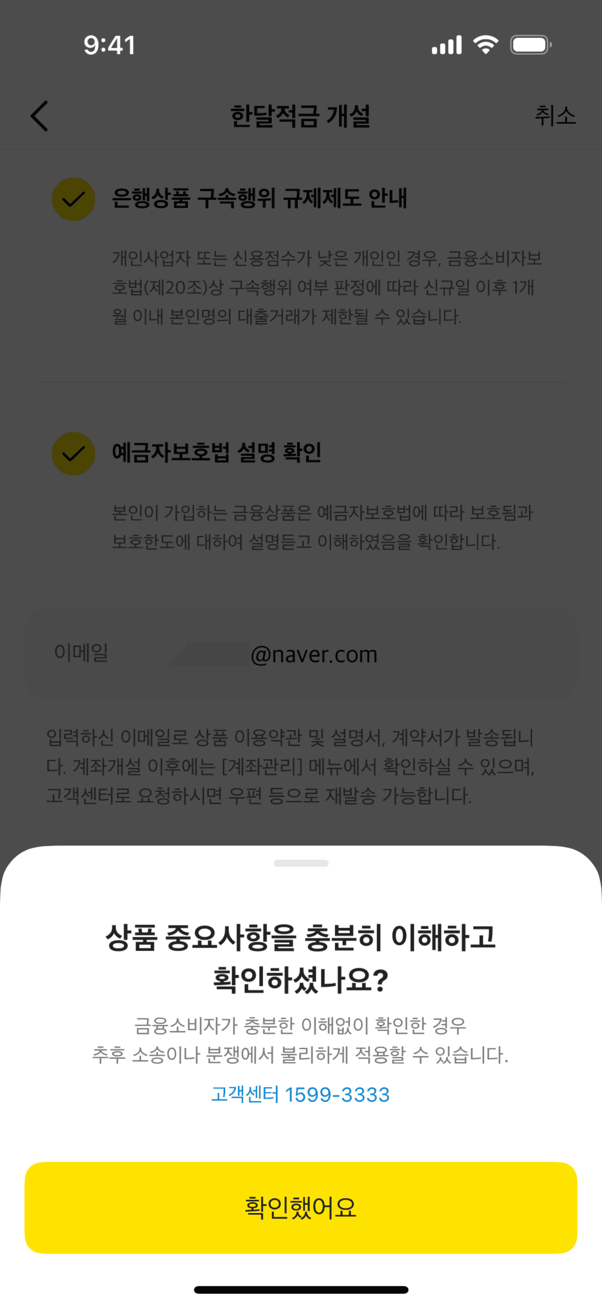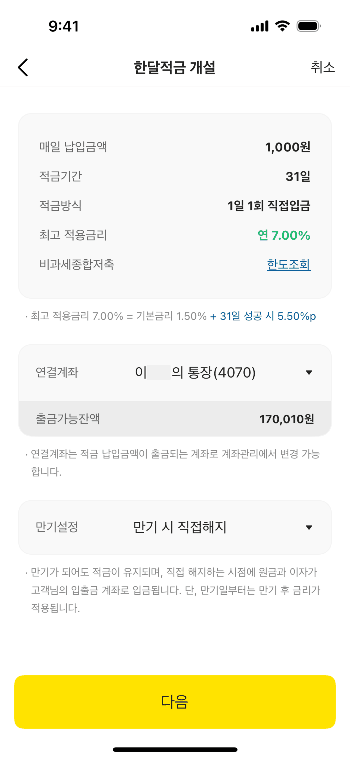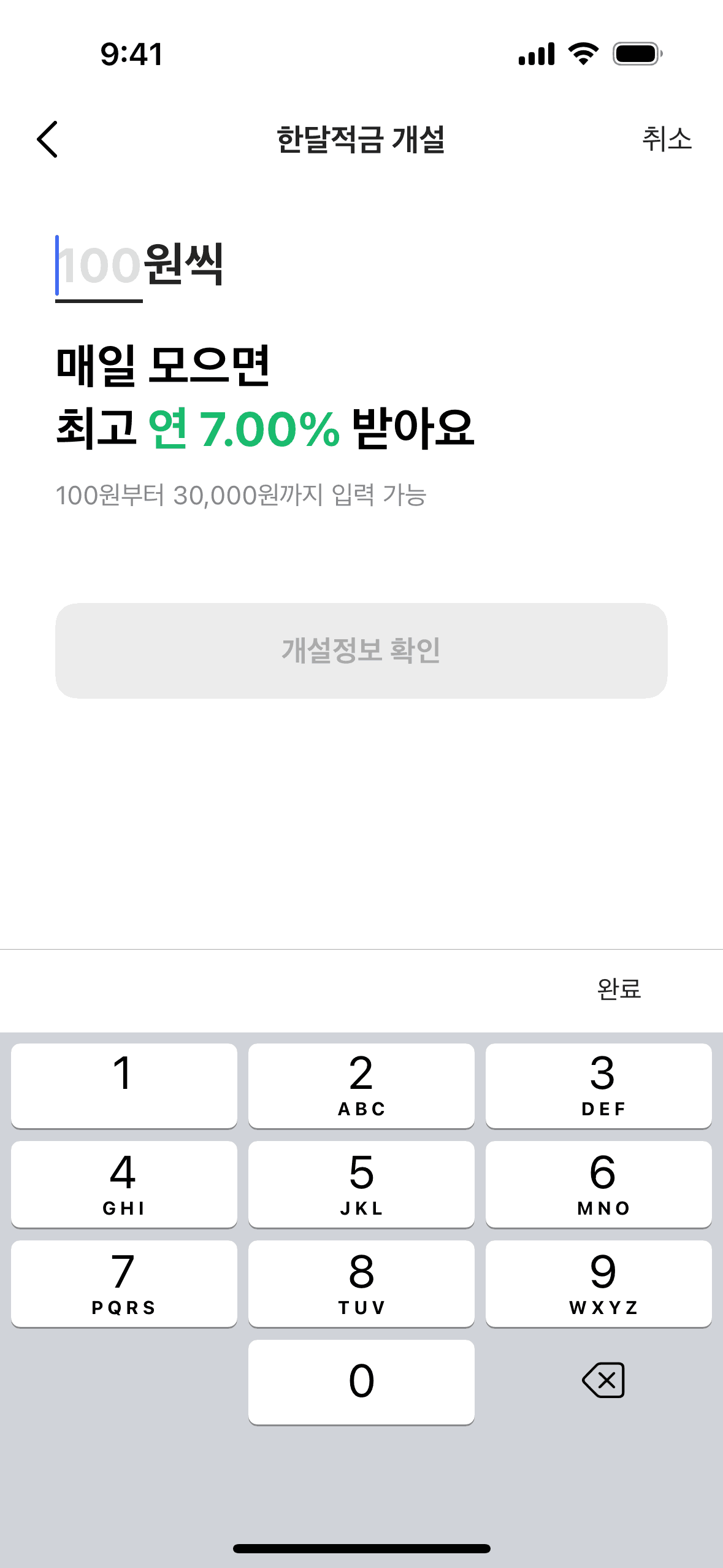 The user flow demonstrates opening a one-month savings account. It includes agreeing to terms, entering the amount, and confirming account creation.