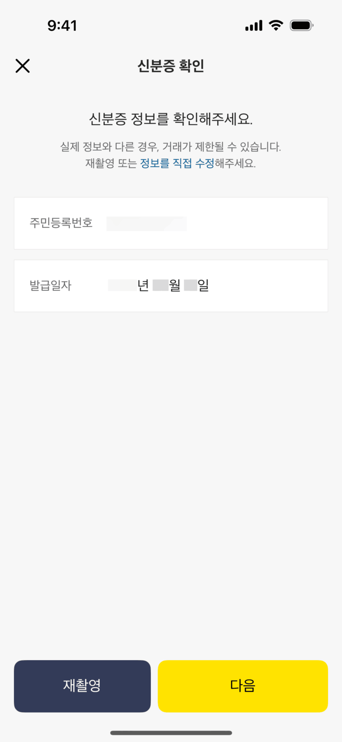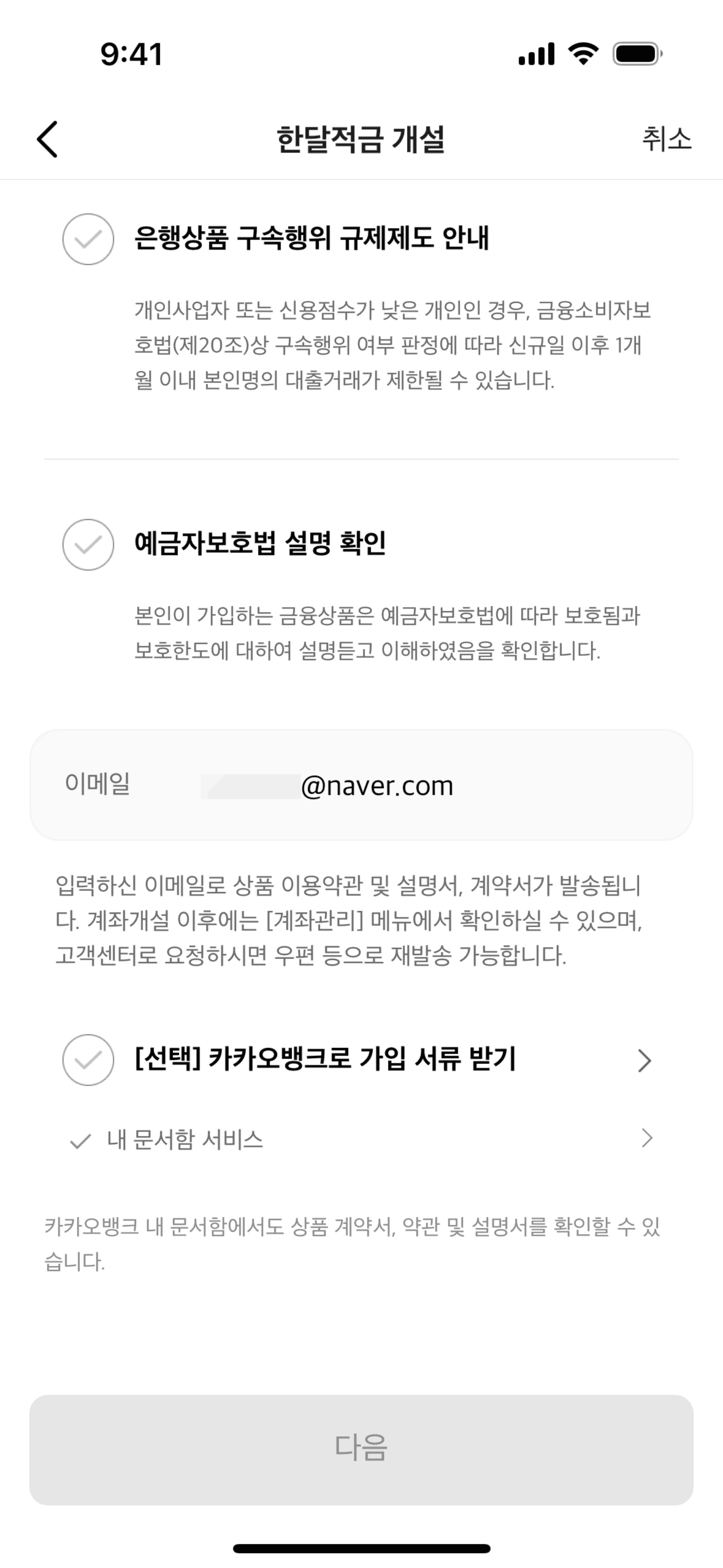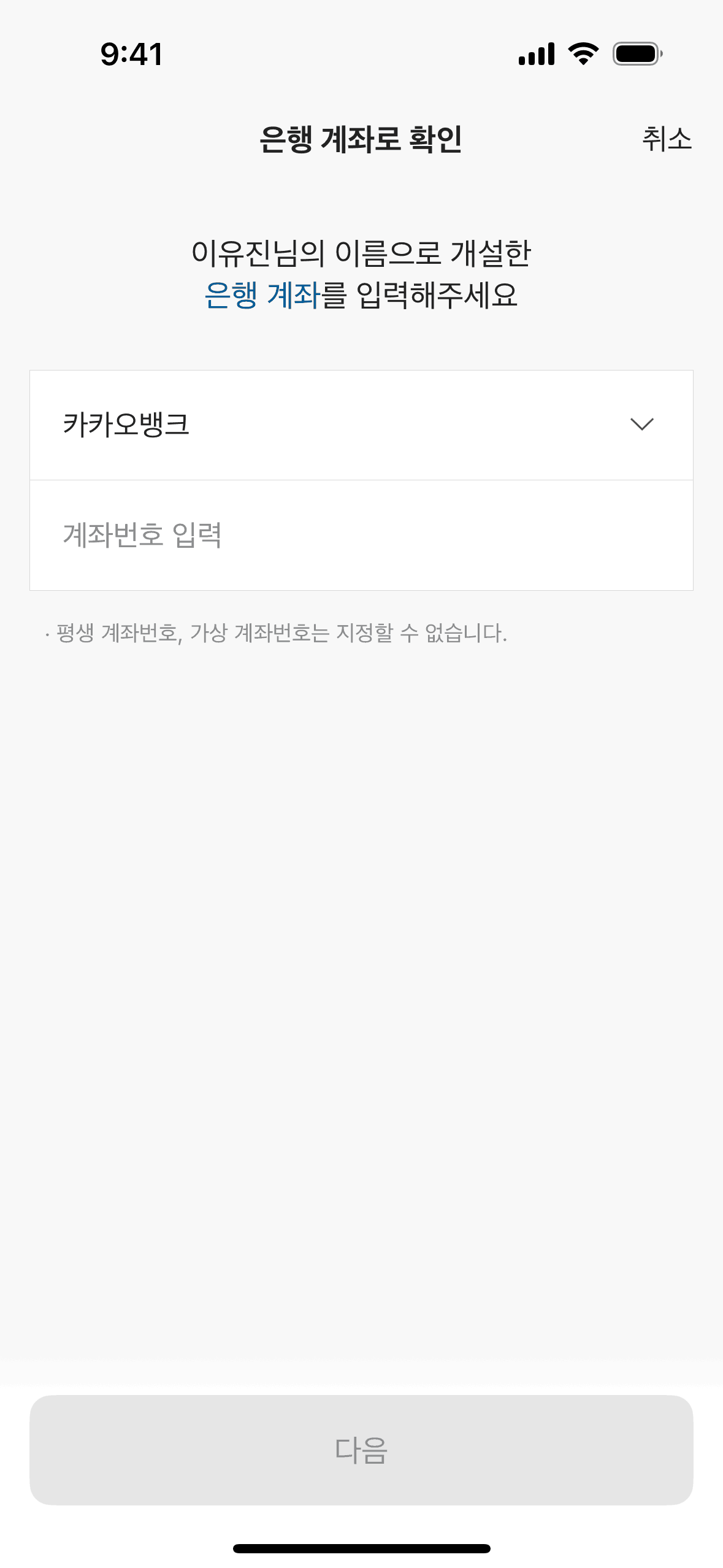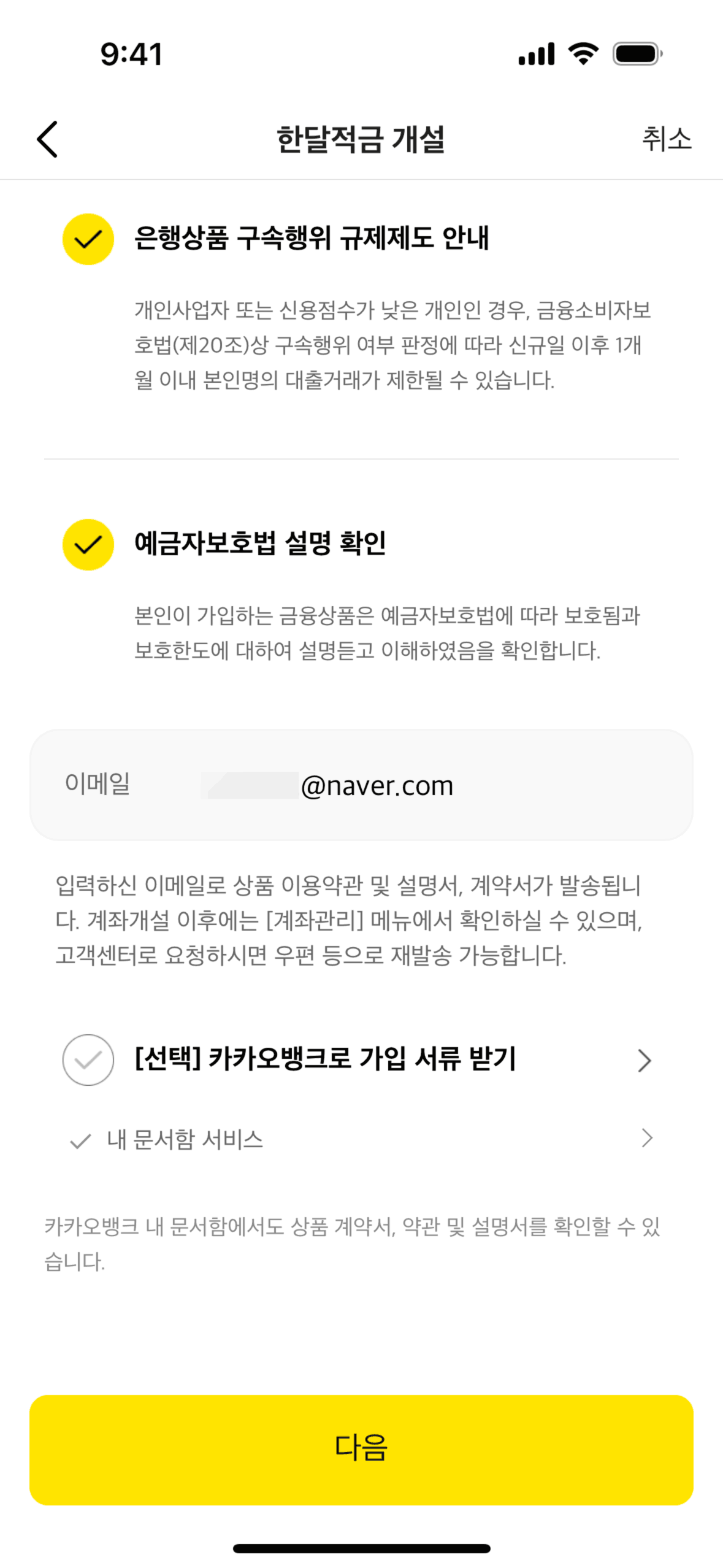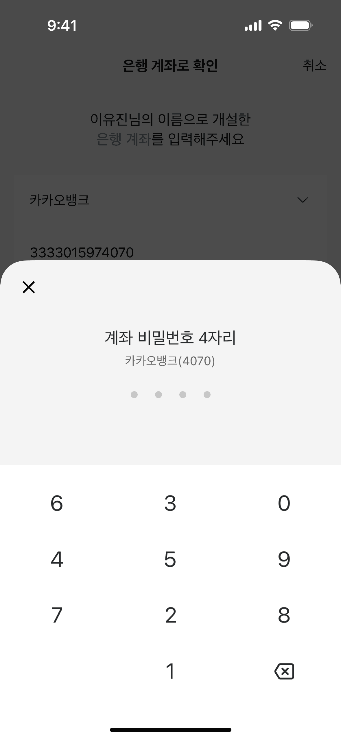 The user flow demonstrates setting up a personal safe by issuing a KakaoBank certificate. It involves ID submission, information confirmation, and account verification.
