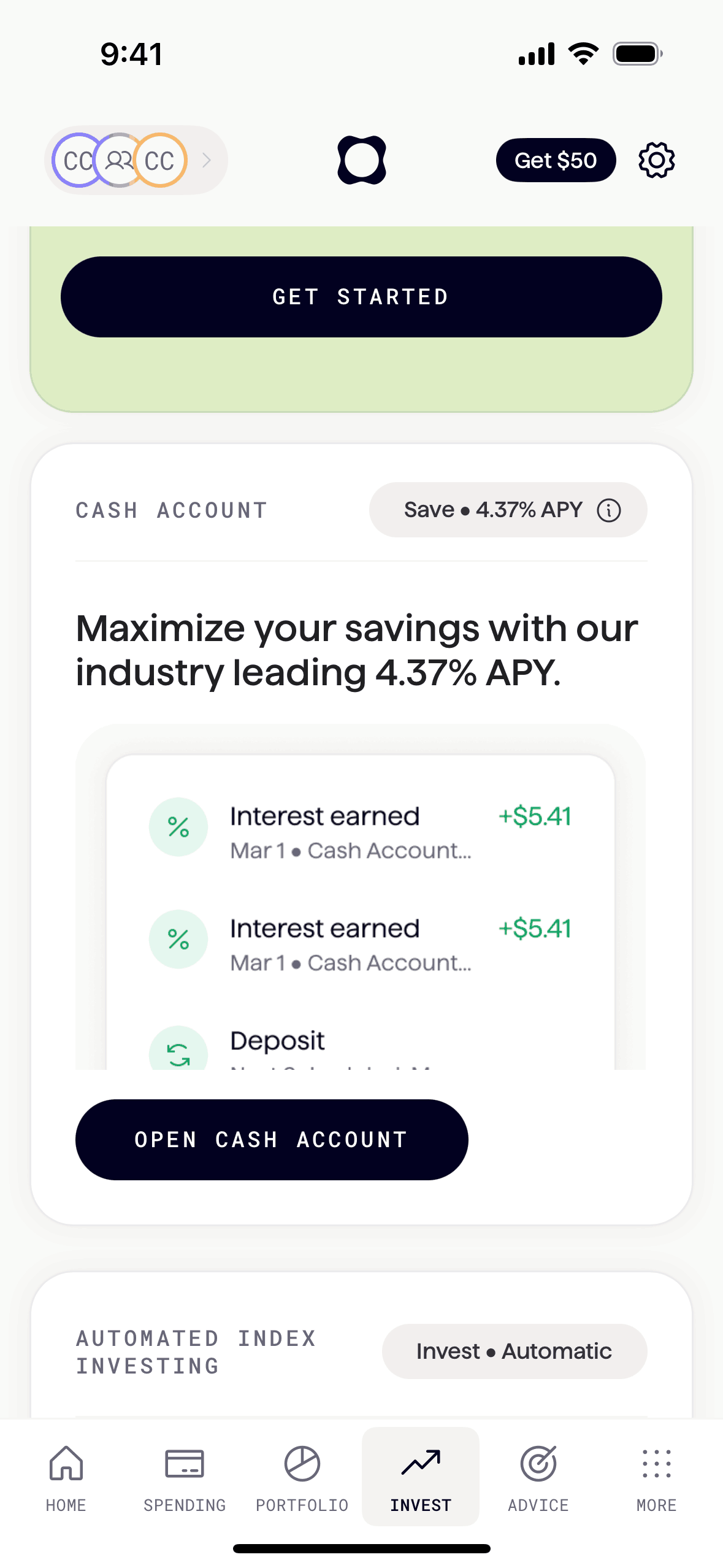 The user flow shows the process of opening a cash account, which includes setting up two-factor authentication and verifying the user's identity.