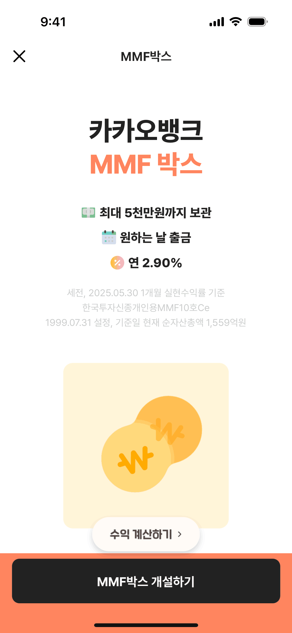 The user flow showcases opening an MMF box, including calculating potential profits and agreeing to terms. It ends with the MMF box main screen.