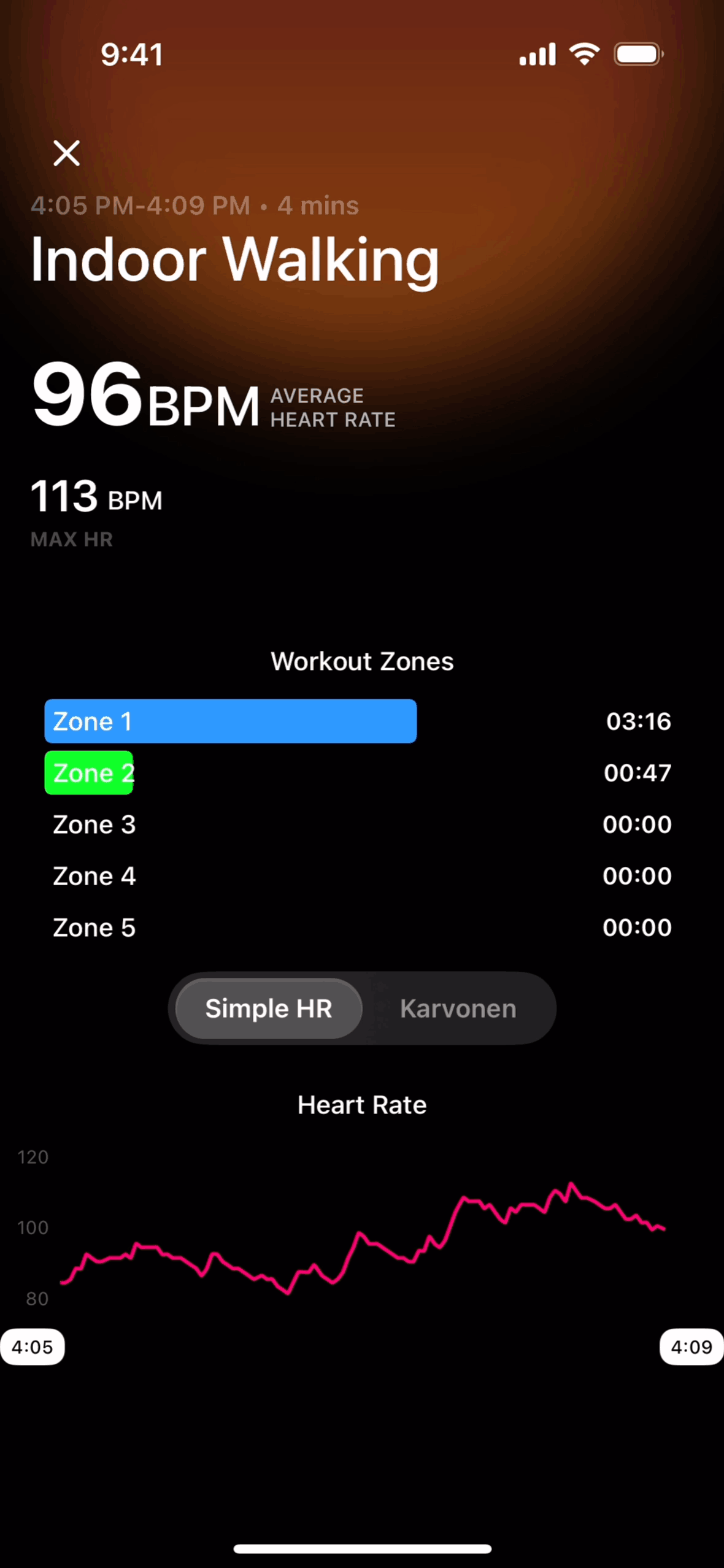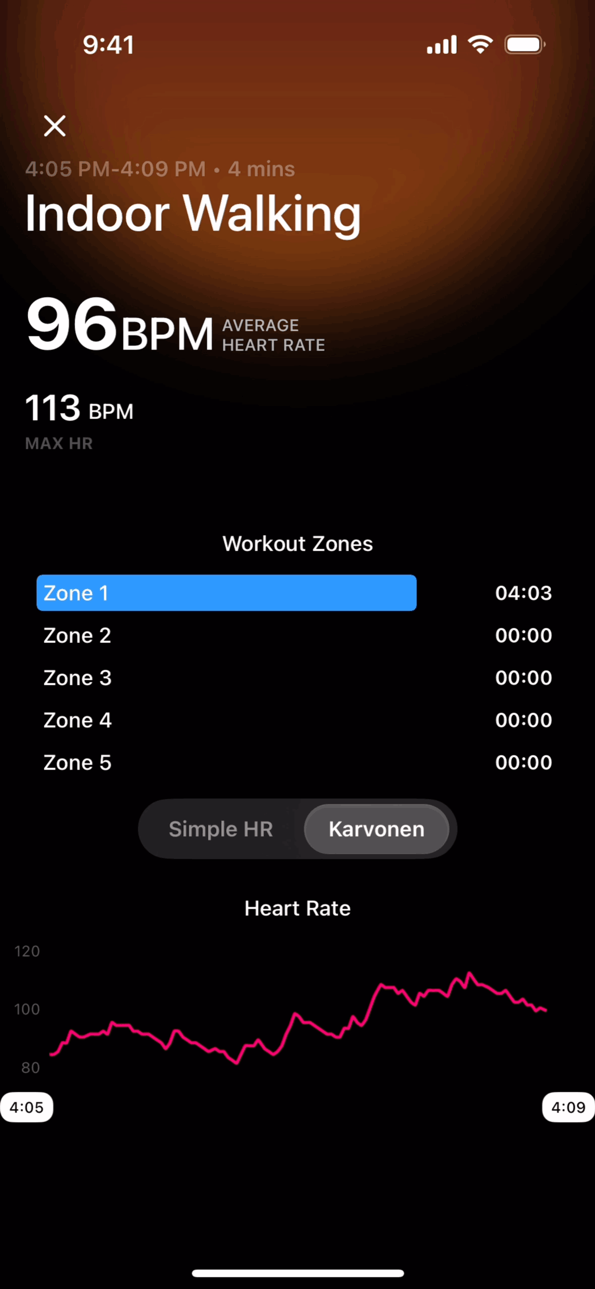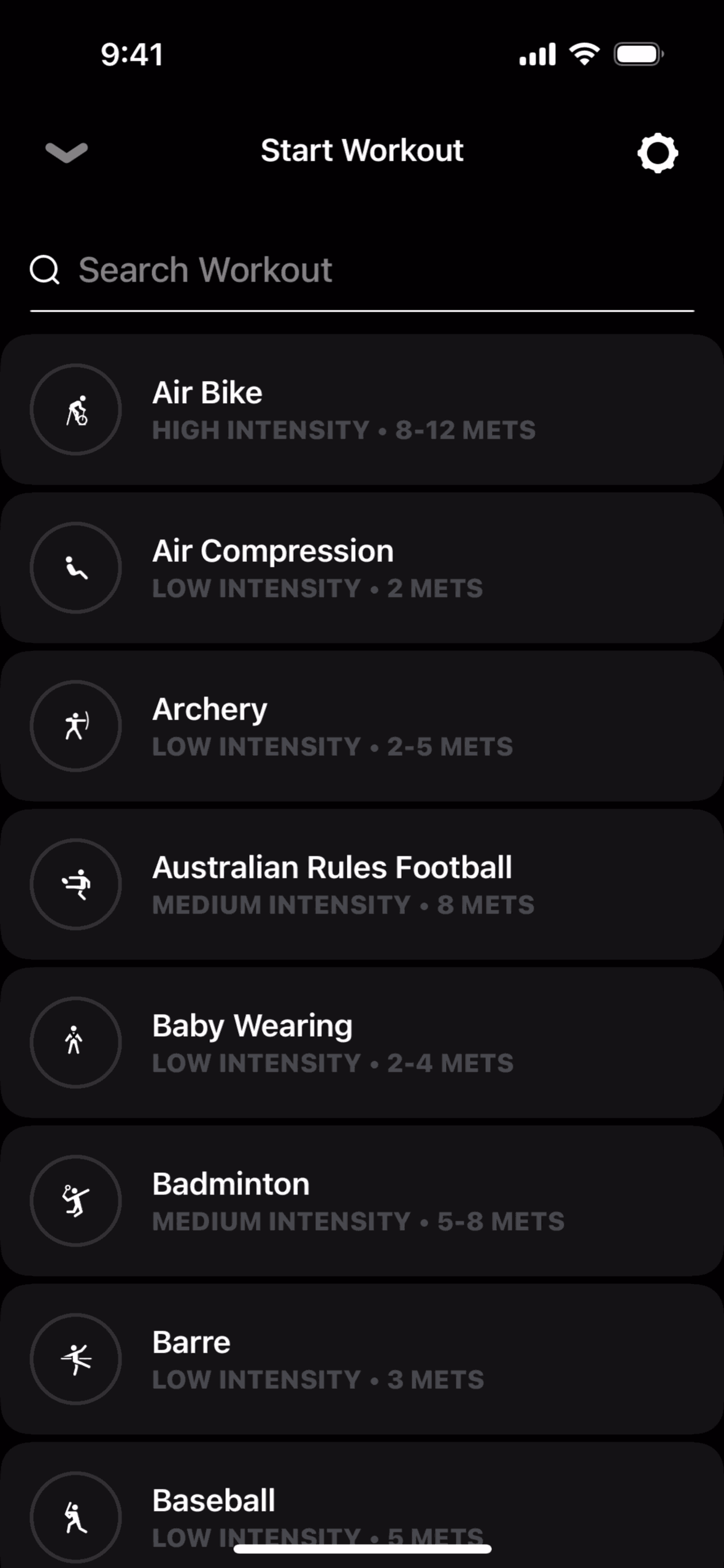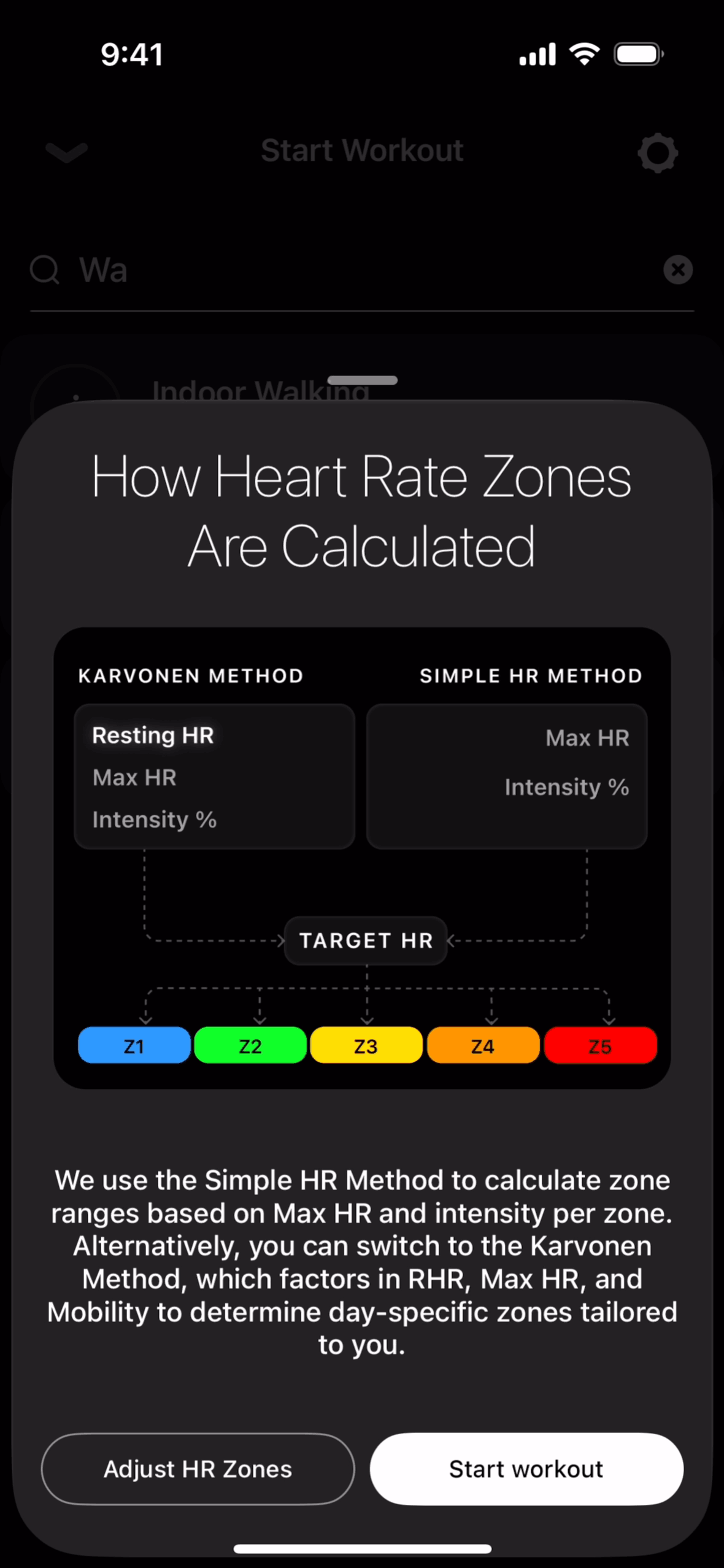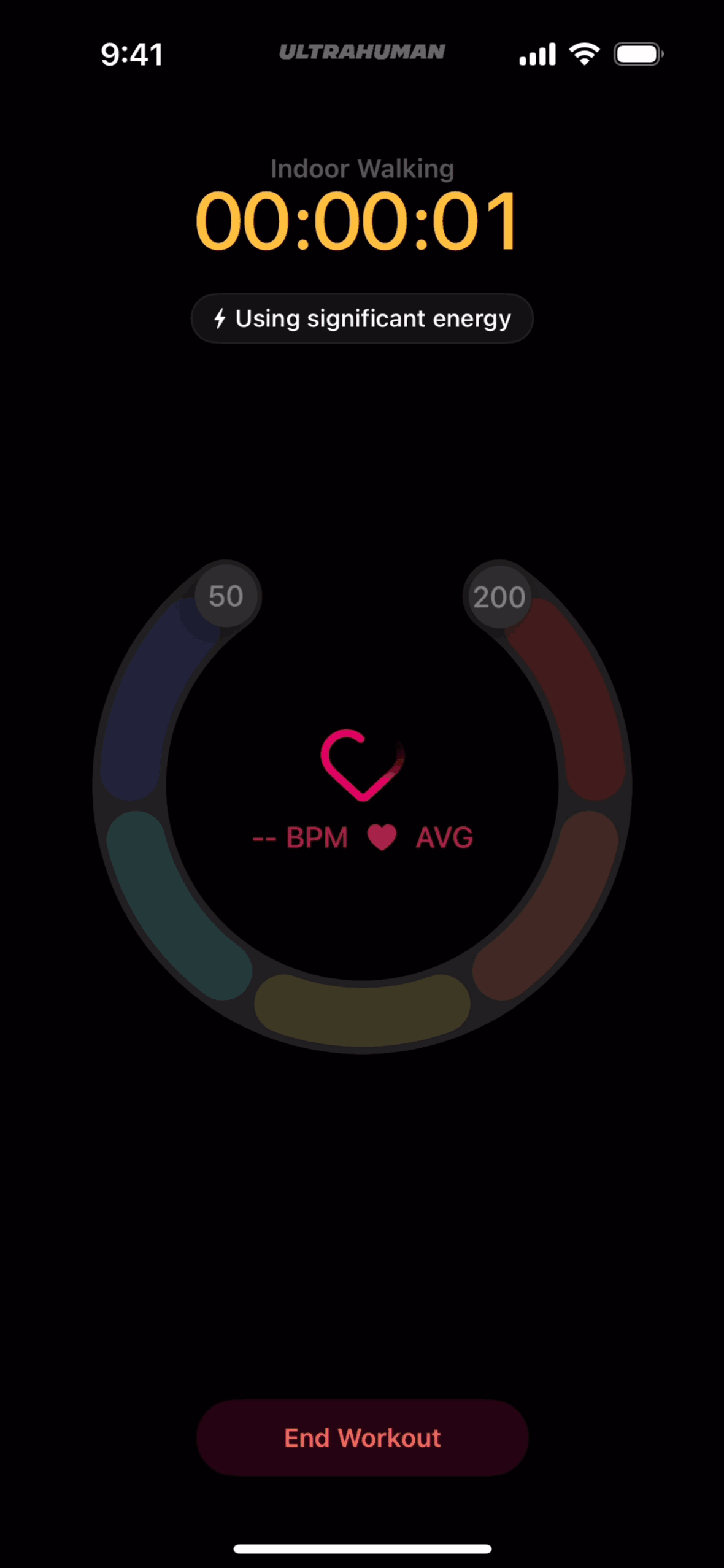 The user flow demonstrates how a user starts, tracks, and completes a workout session, viewing a summary of their performance afterwards.