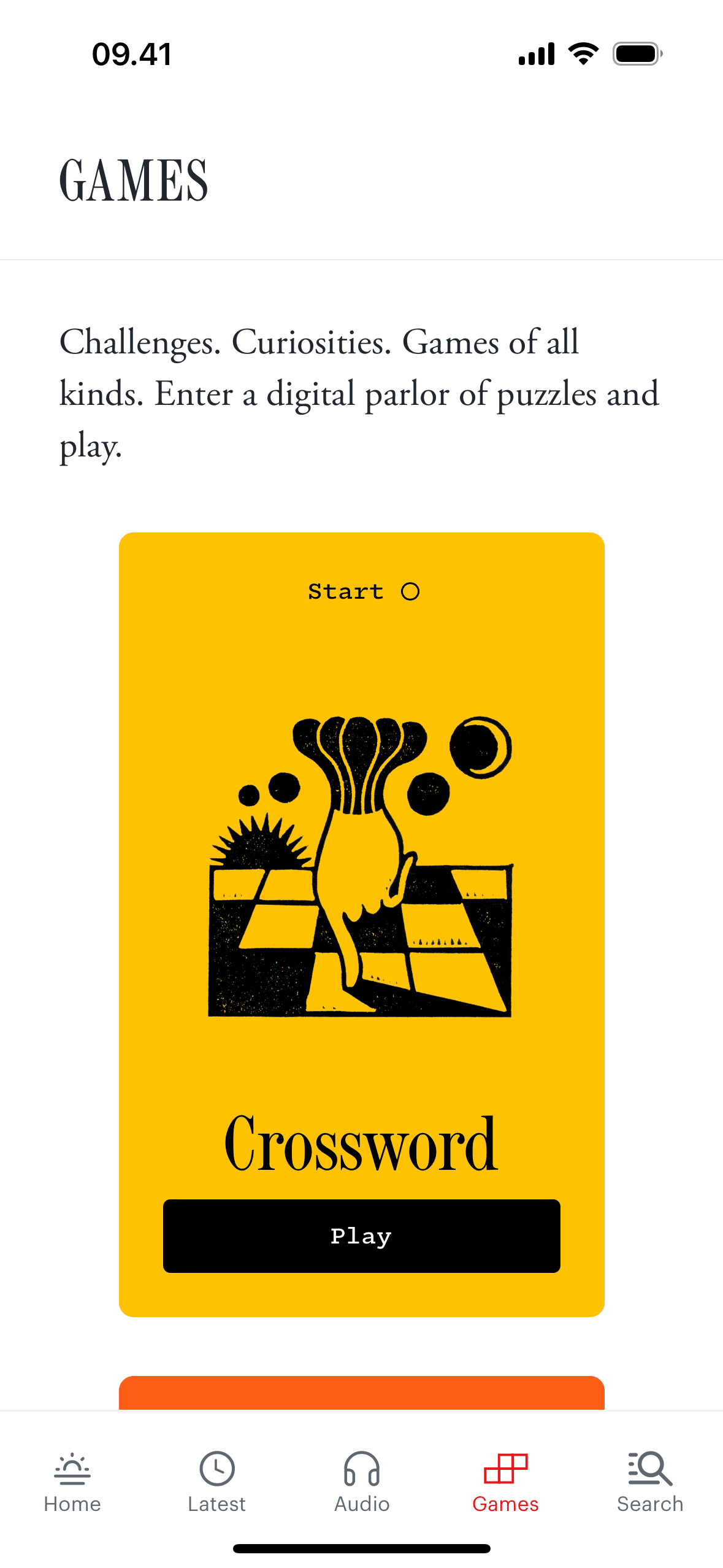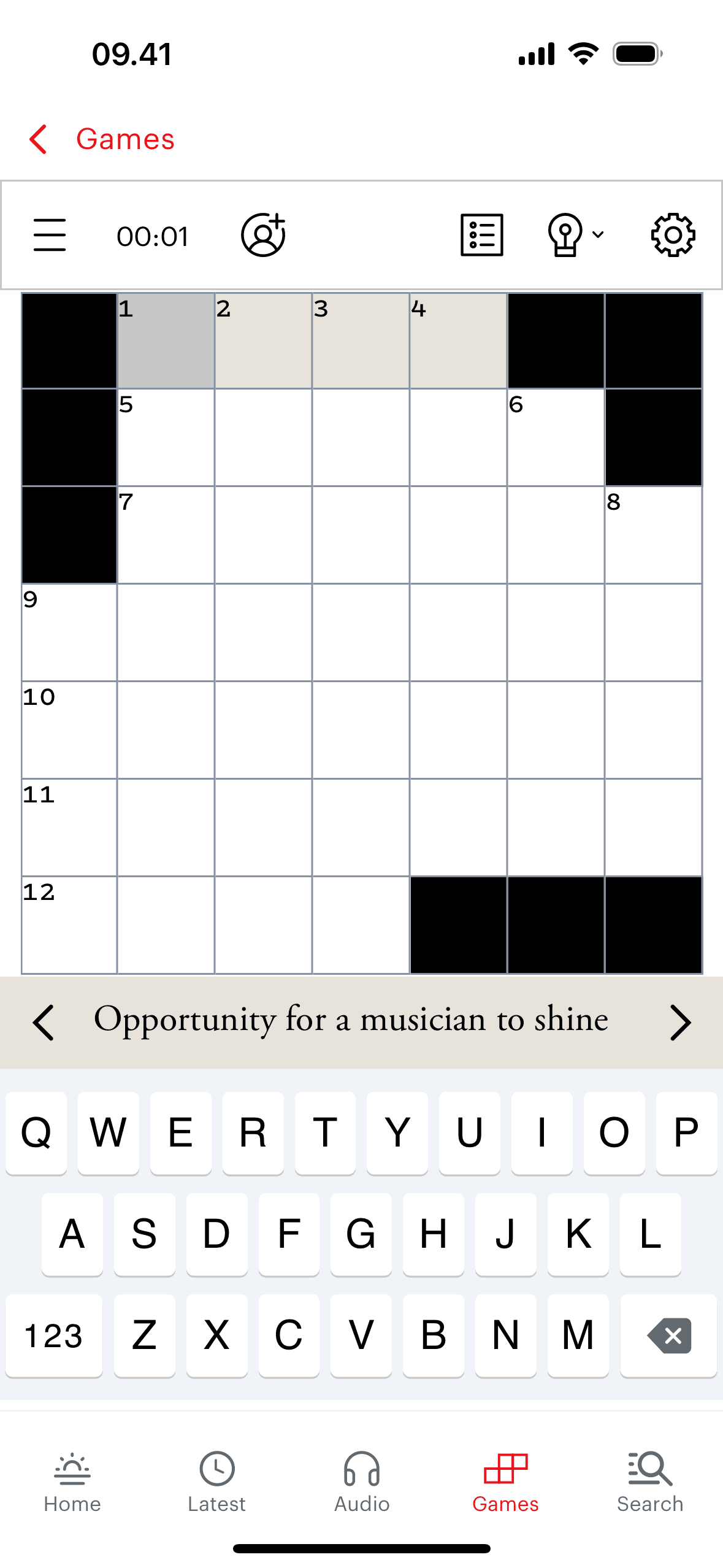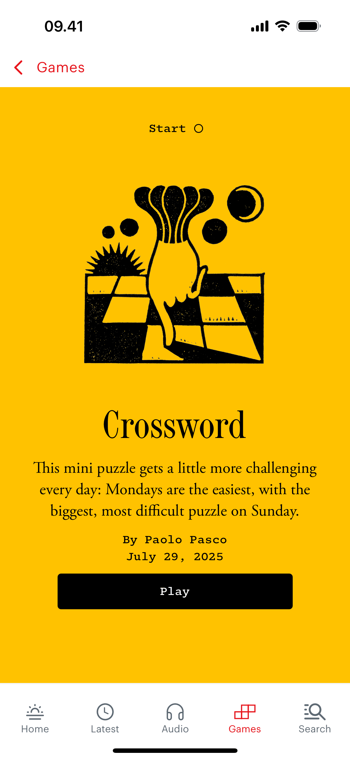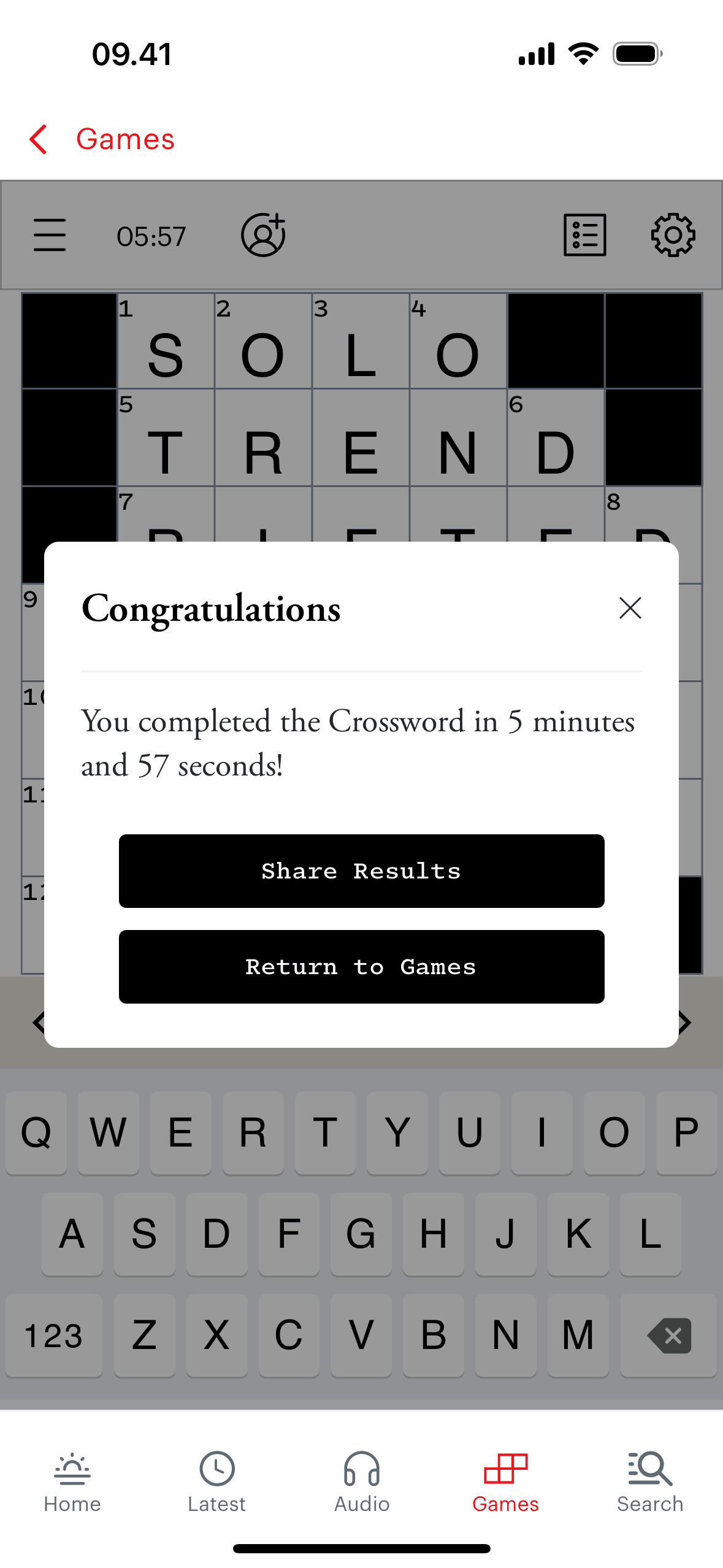 The user flow demonstrates completing a crossword puzzle. It showcases puzzle selection, gameplay, and a completion screen.