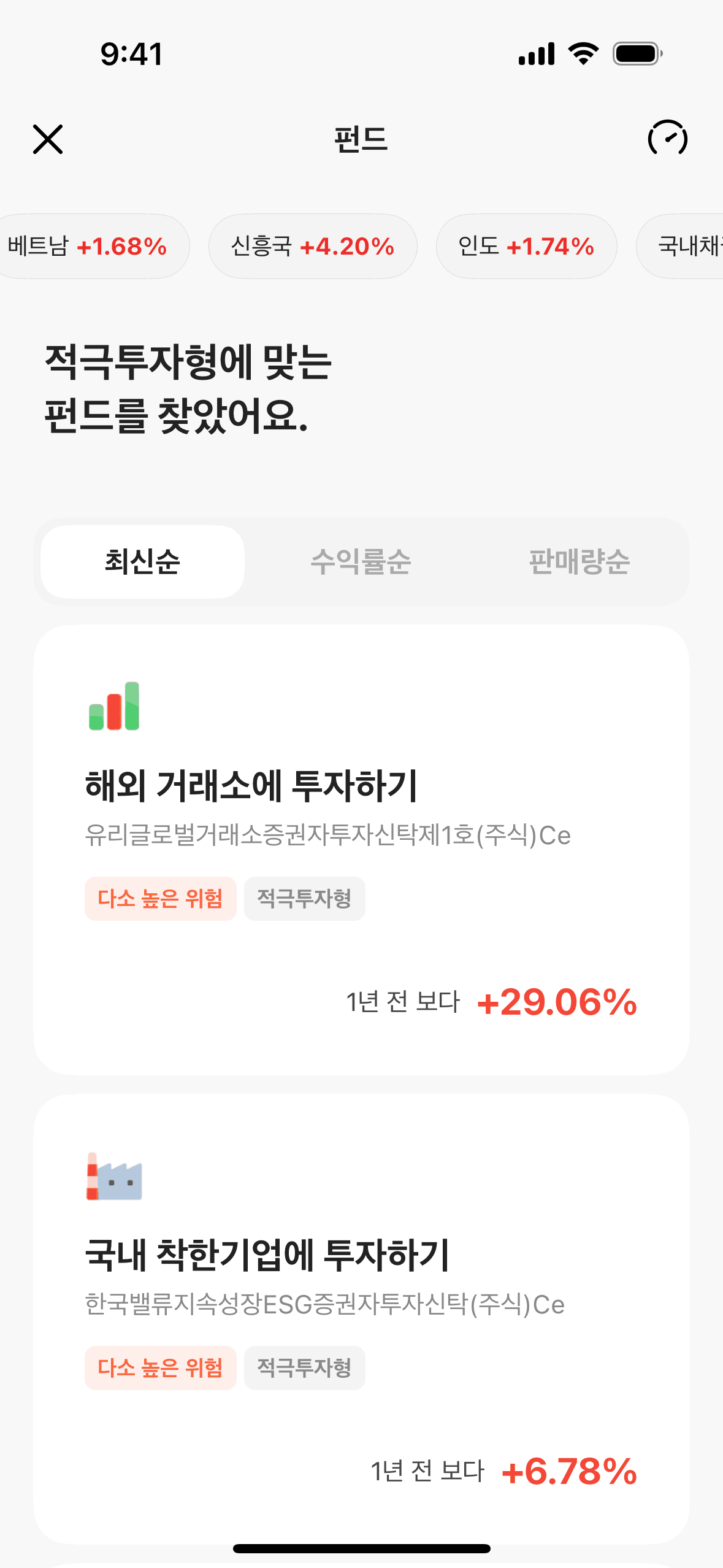 The user completes an investment profile quiz to find suitable funds. The quiz results in a filtered fund list based on the user's investor profile.