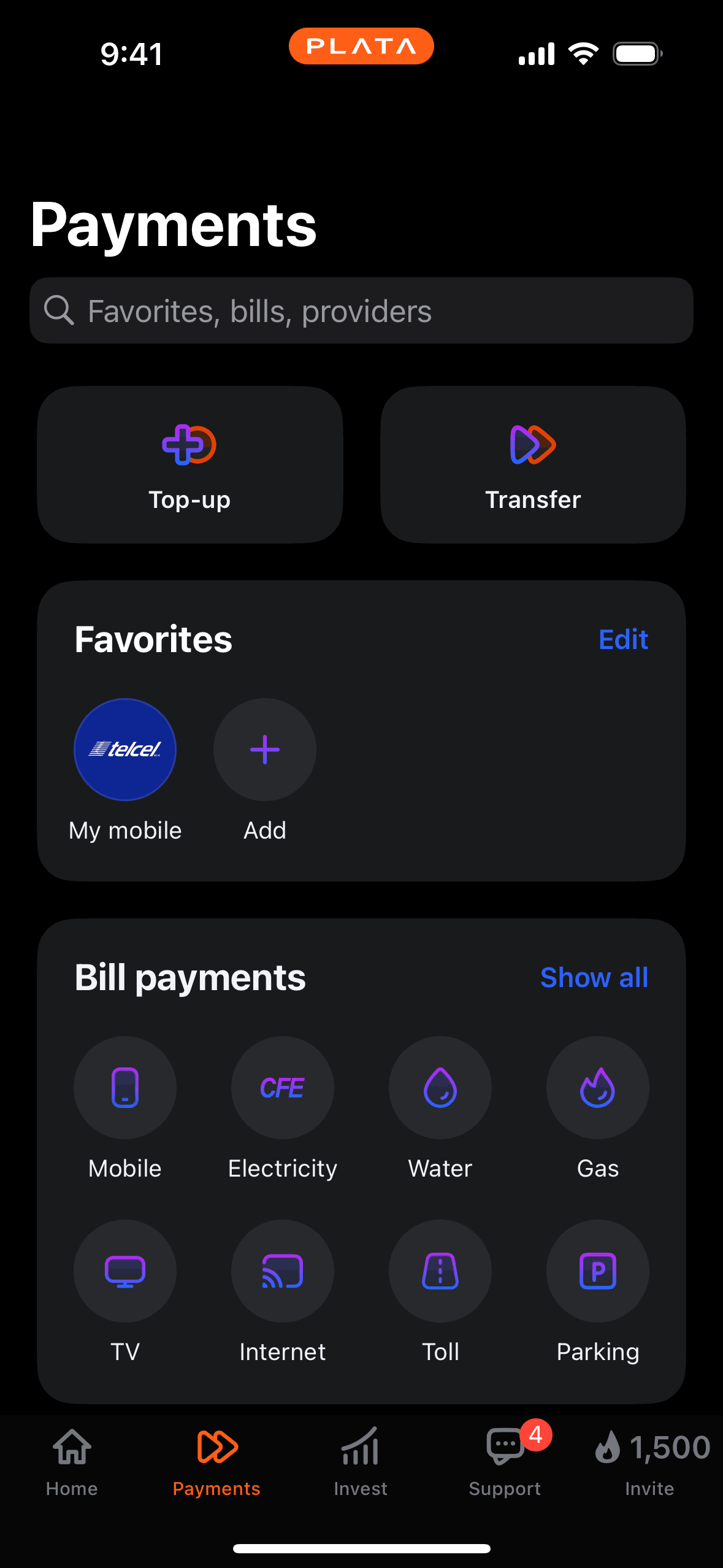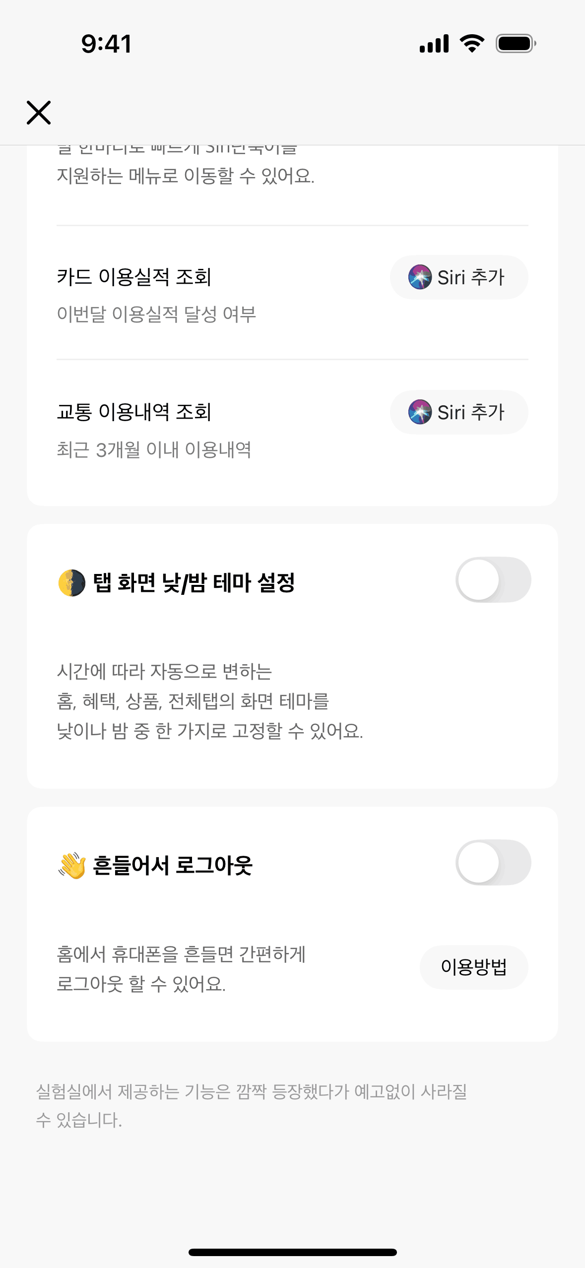 The user enables dark mode by toggling the day/night theme in experiments settings. The app then switches to dark mode across different tabs.