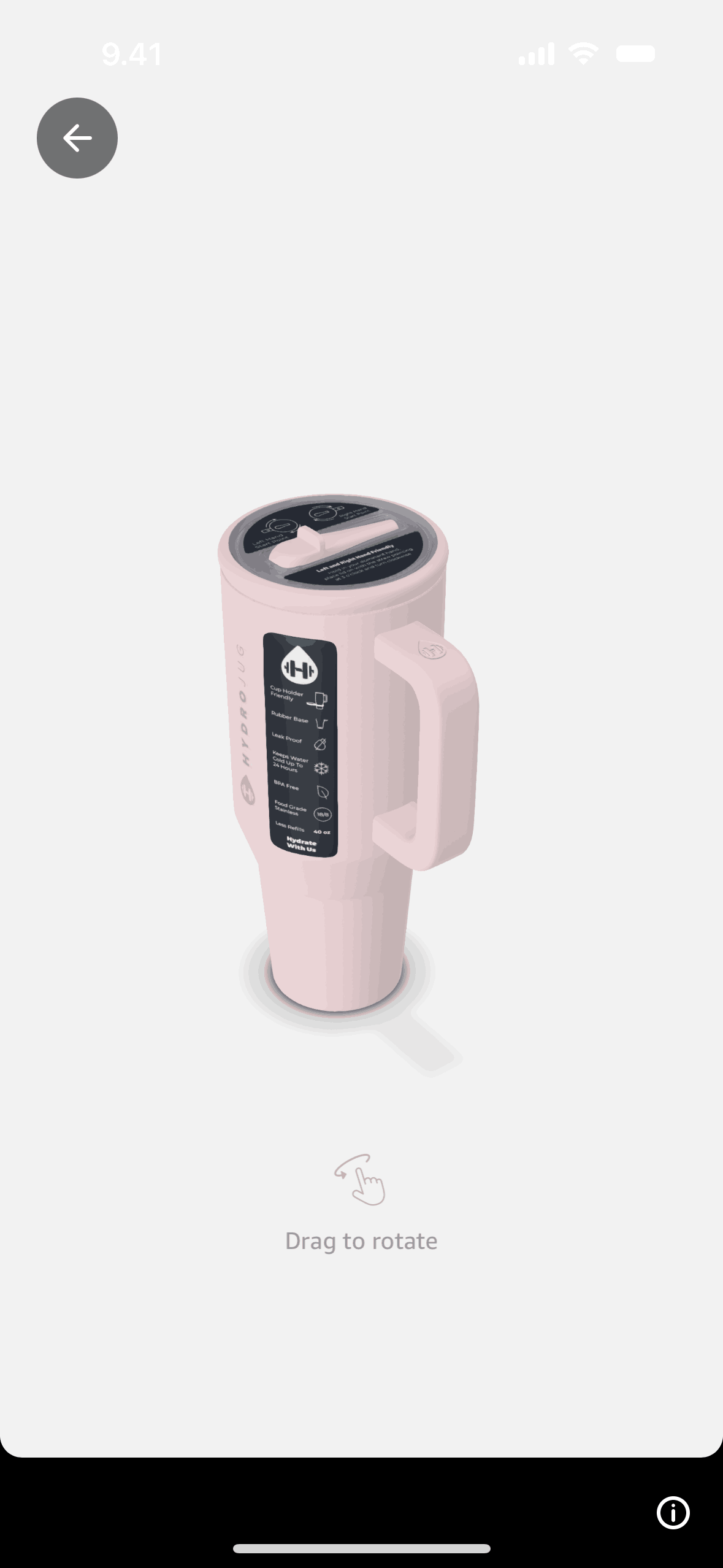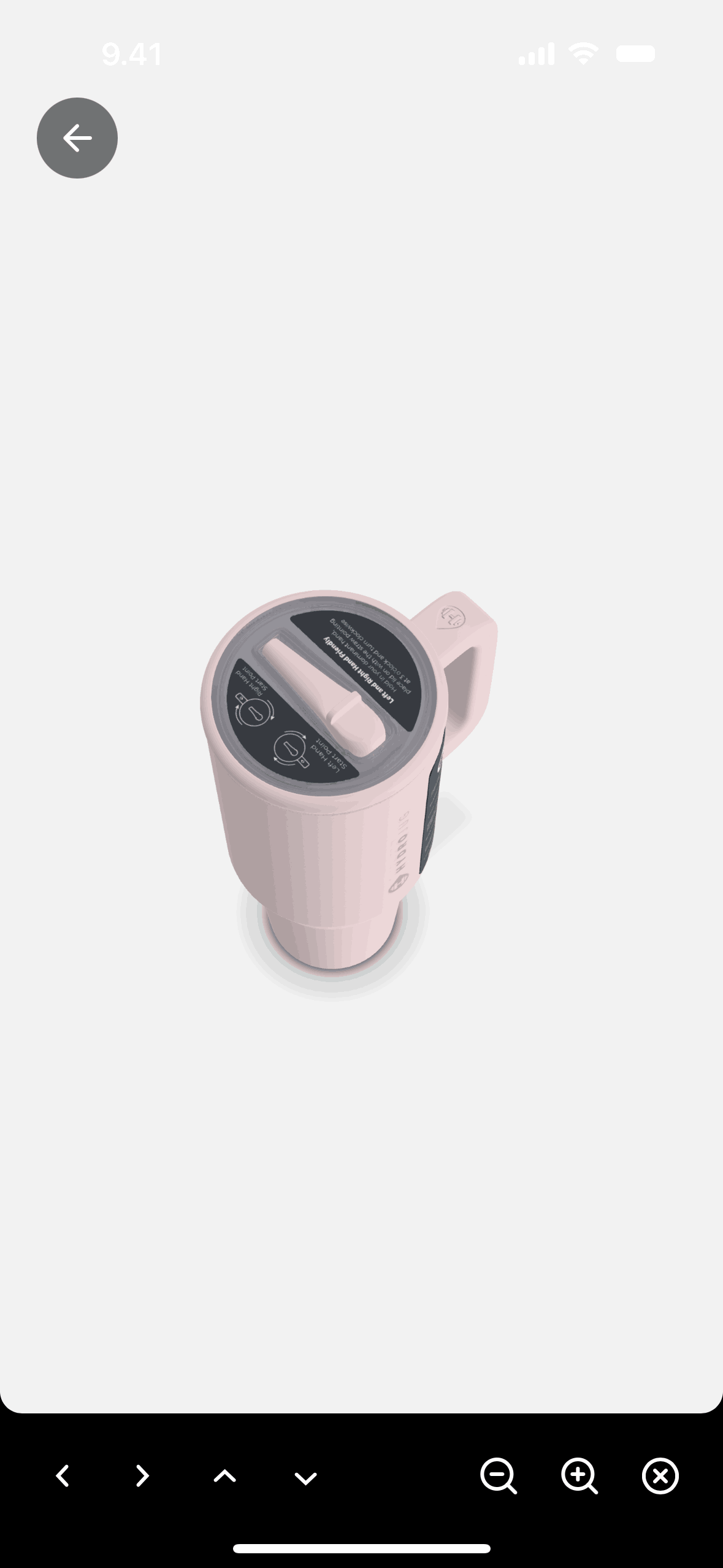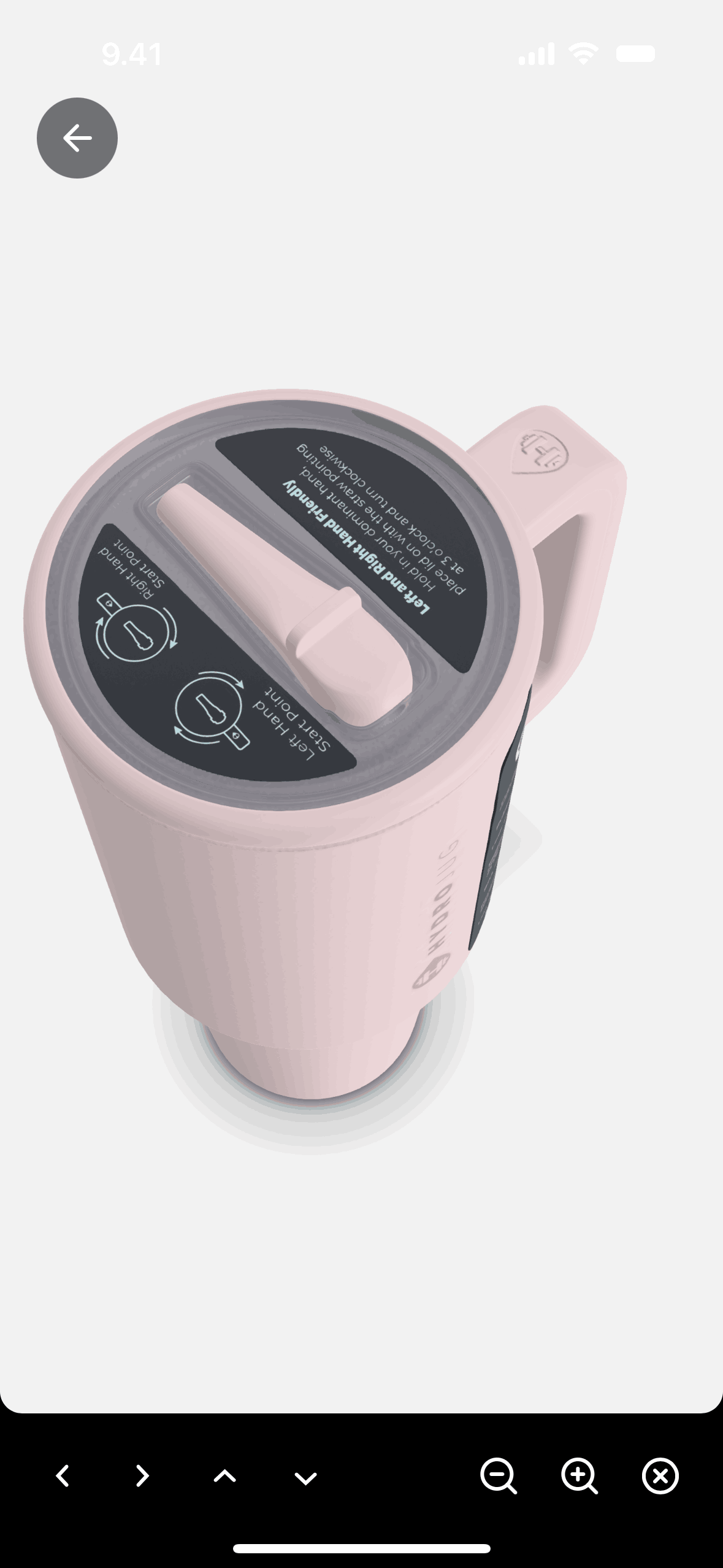 The user views a product and then interacts with a 3D model by rotating and zooming. The flow showcases the 3D viewing experience.