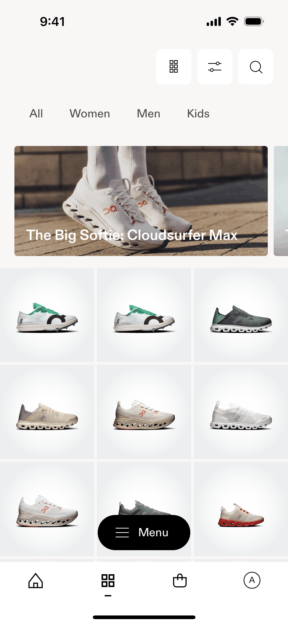 The user switches from a list view to a grid view on a product listing page. This allows the user to browse products in their preferred format.