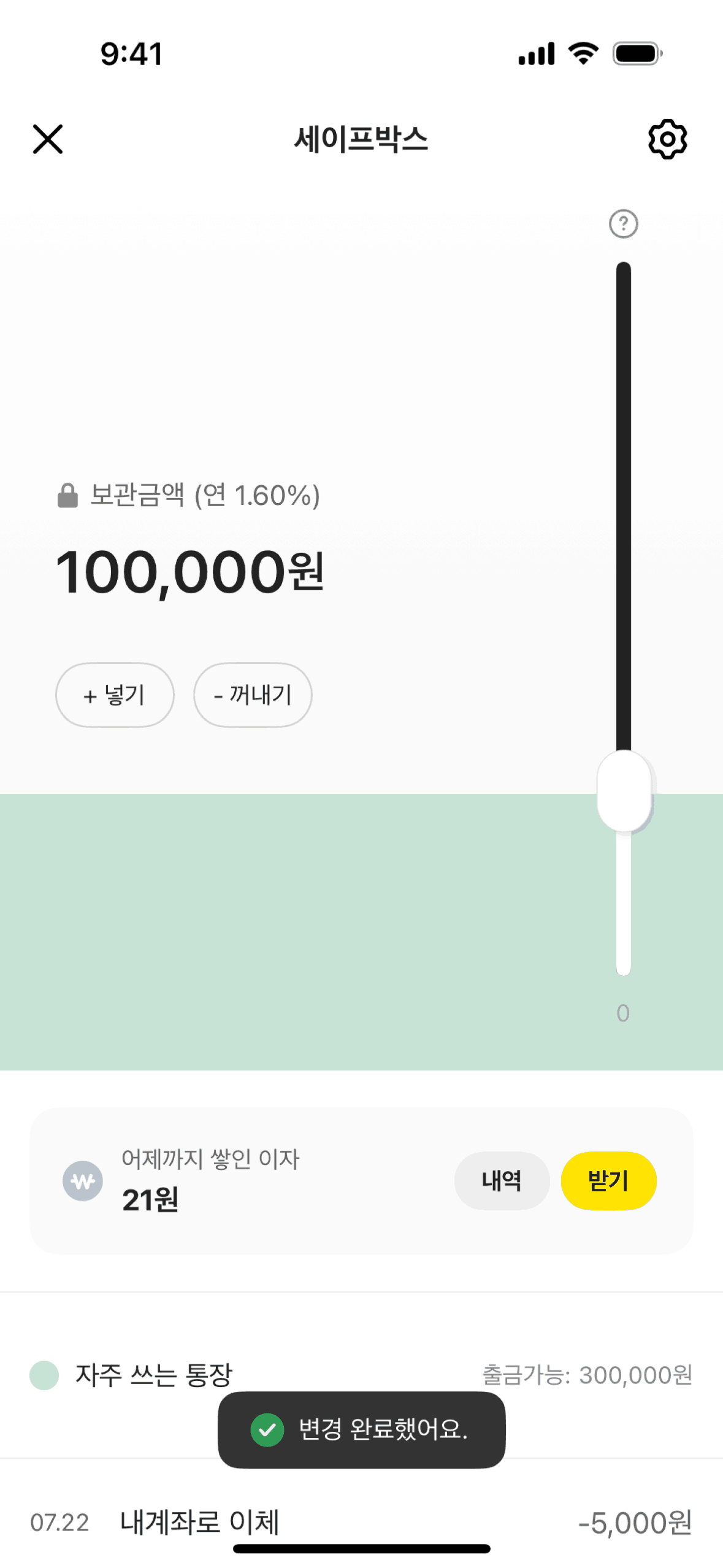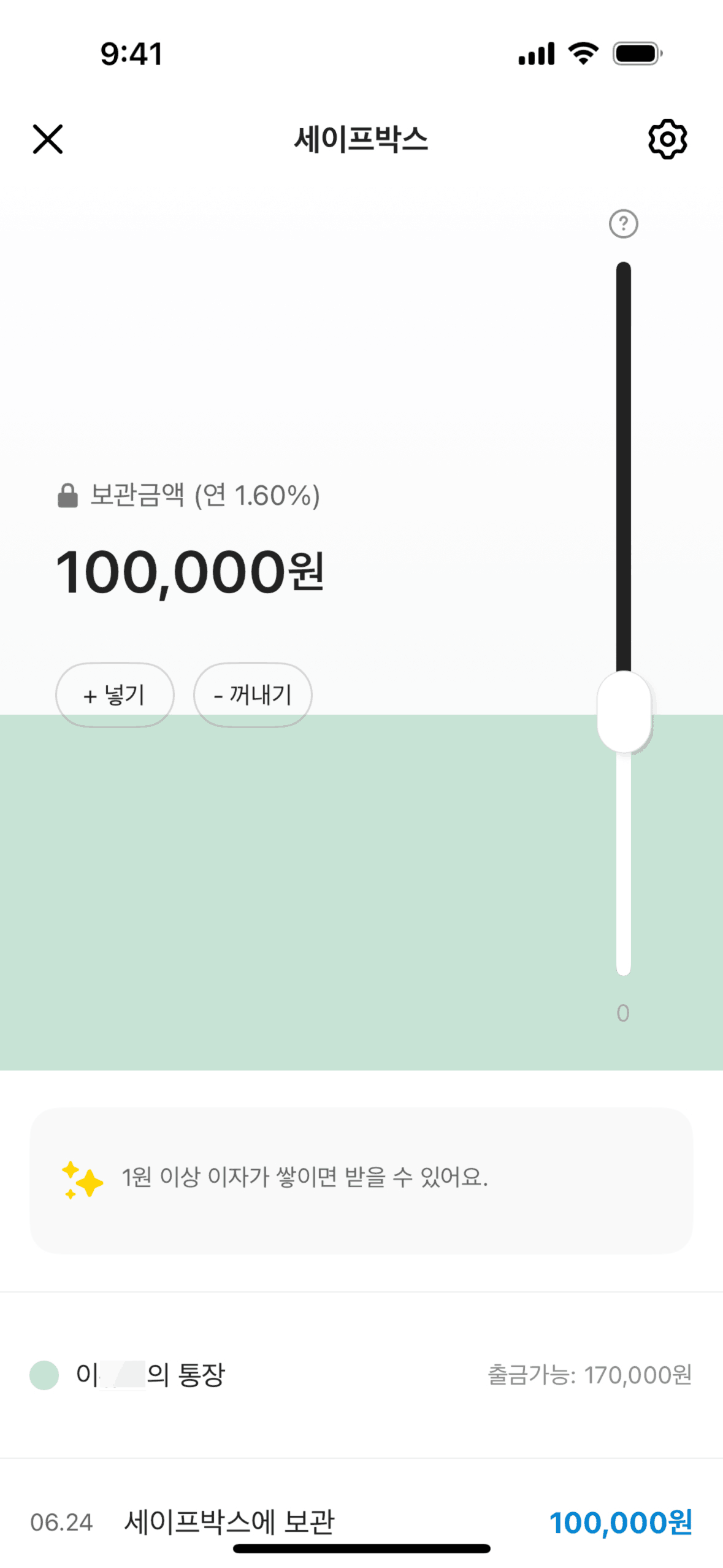 The user withdraws money from a safe box. They input the amount, confirm it, and view the updated balance.