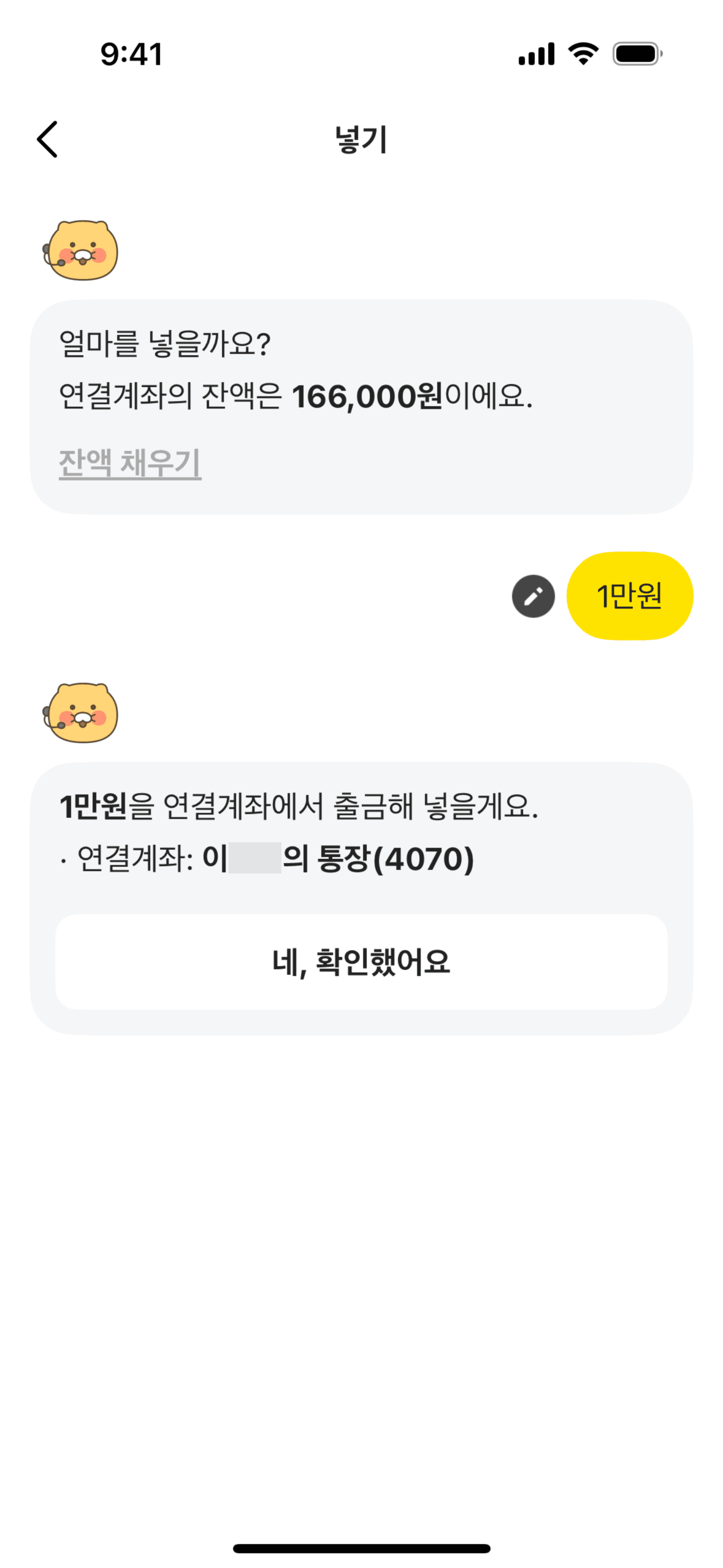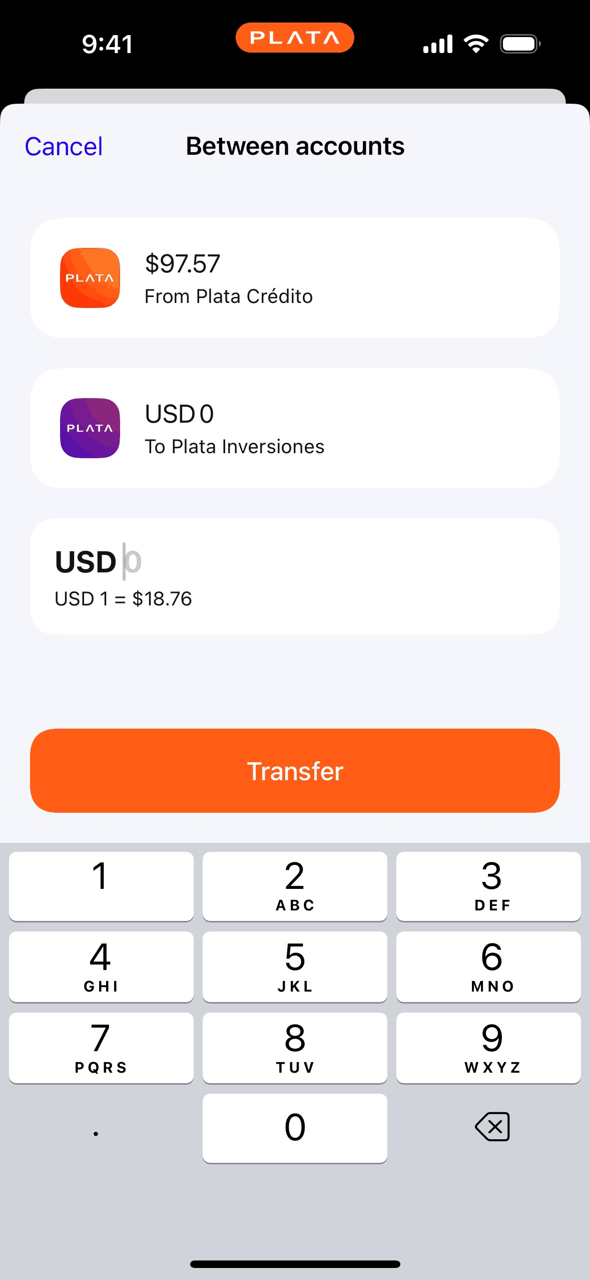 The user initiates and completes a transfer between two accounts. The flow includes amount input and confirmation of the transaction.