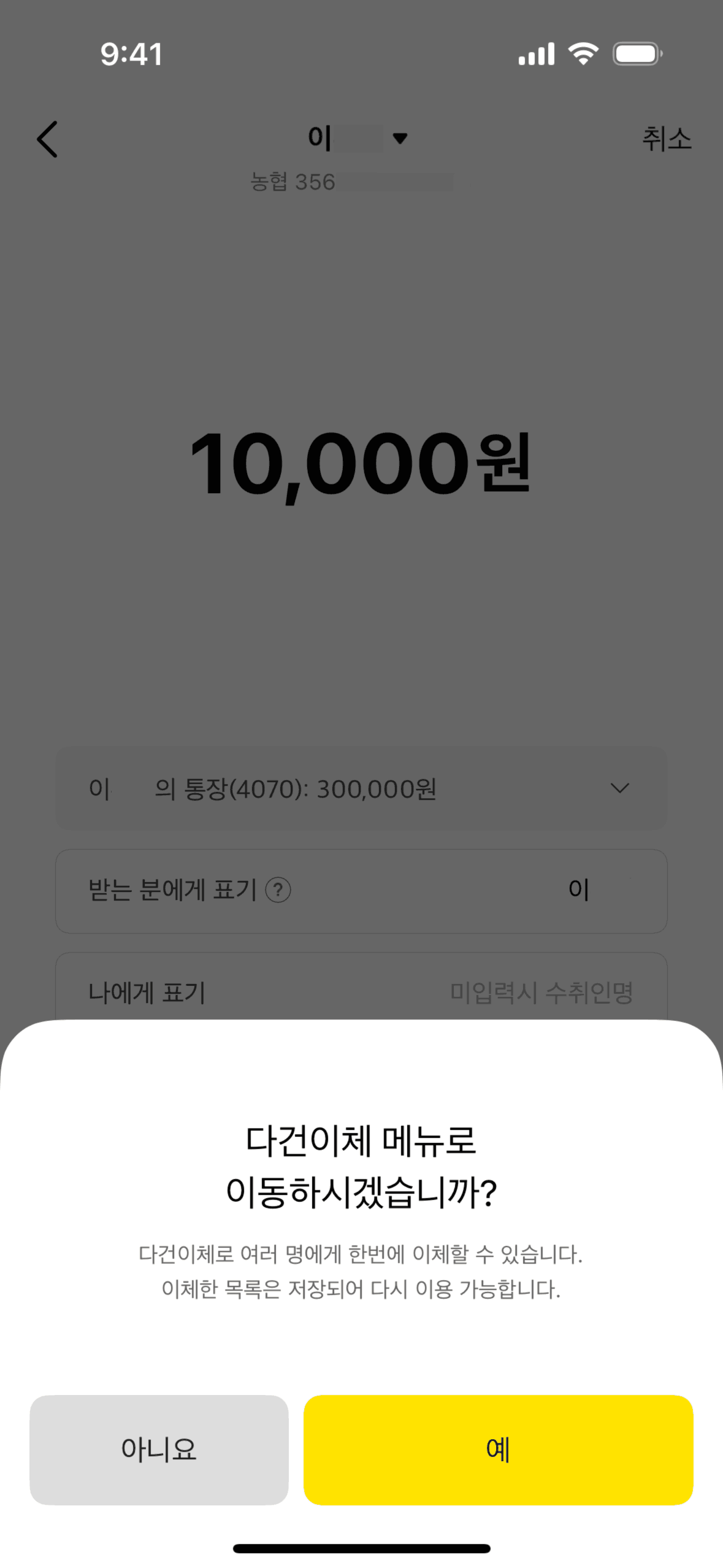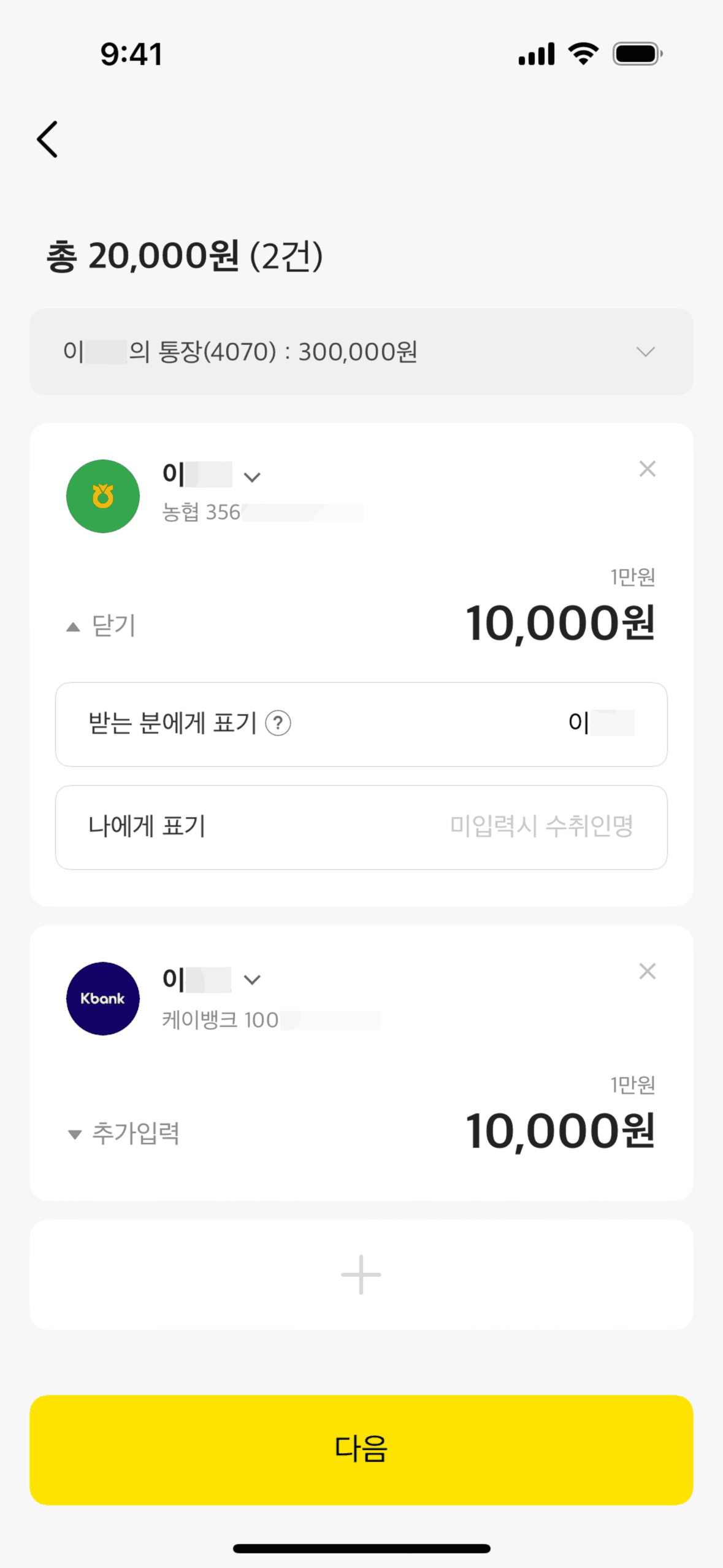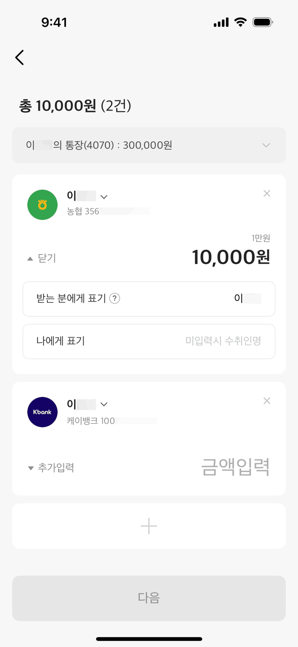The user initiates a money transfer, switches to multiple recipients, adds recipients and amounts, and completes the transfer. The flow ends with a confirmation and transfer details.