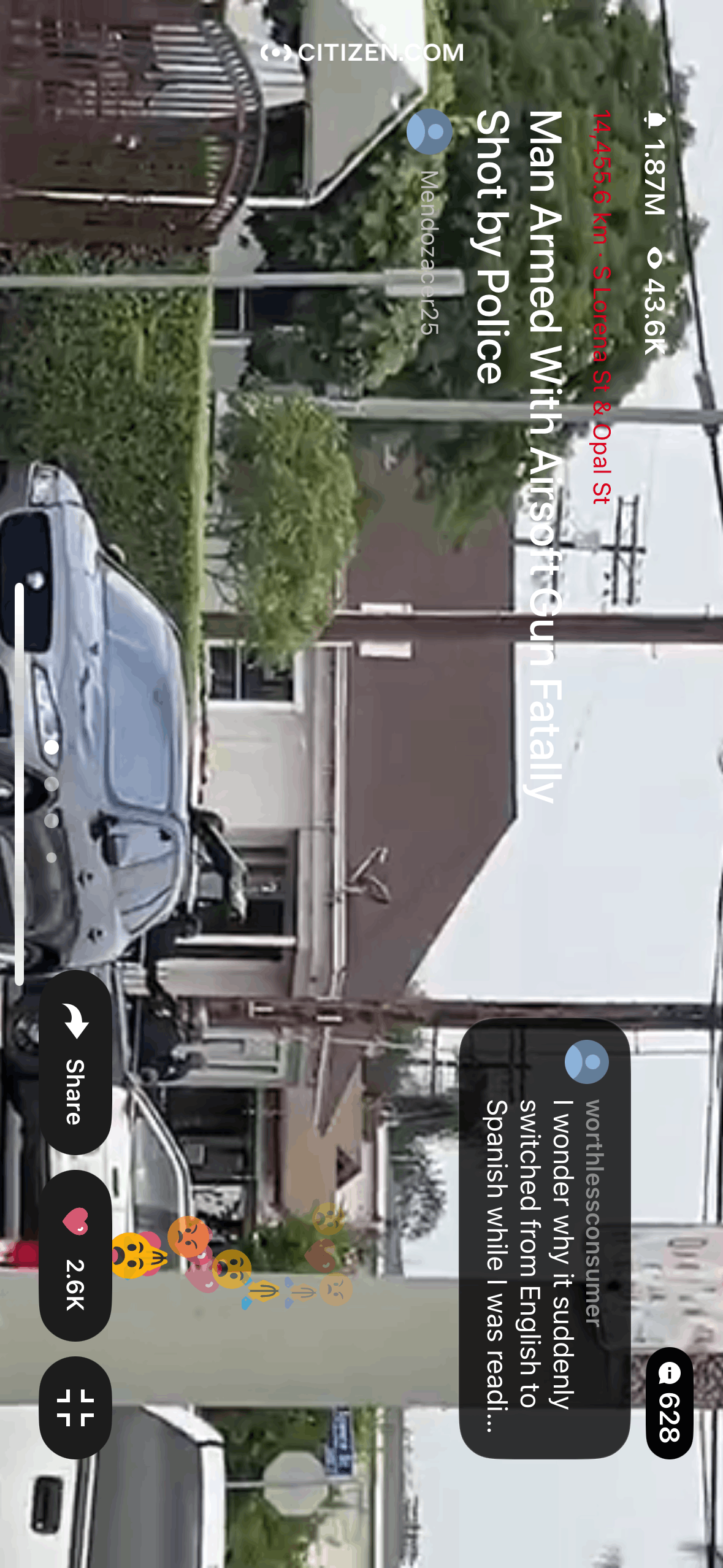 The user views a broadcast video and then expands it to full screen. They can also interact with the video through chat and sharing.