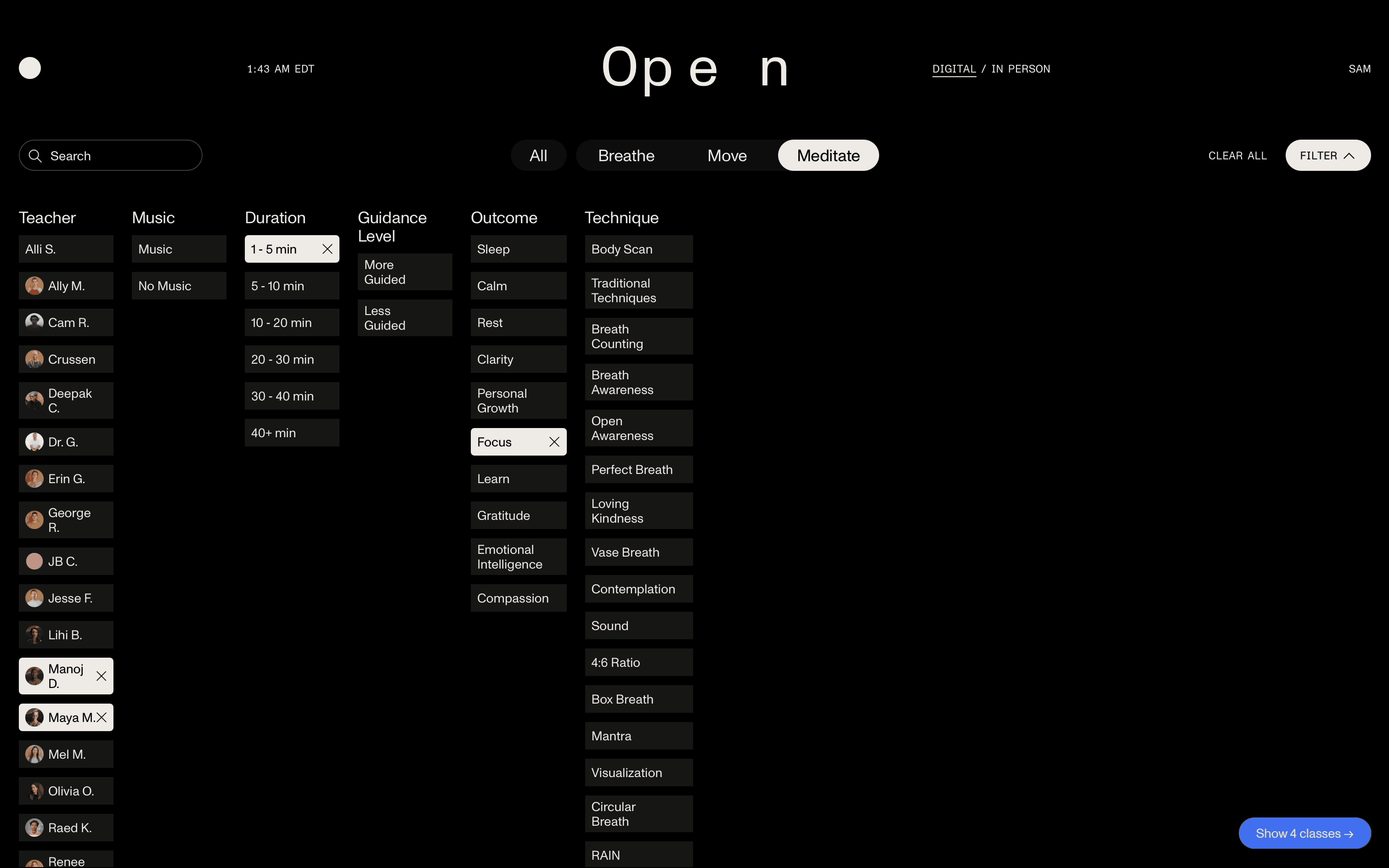 Calendar SelectionOpenSaveCopyPopoverButtonDate PickerFilter & SortCalendarFiltering & SortingClassPass