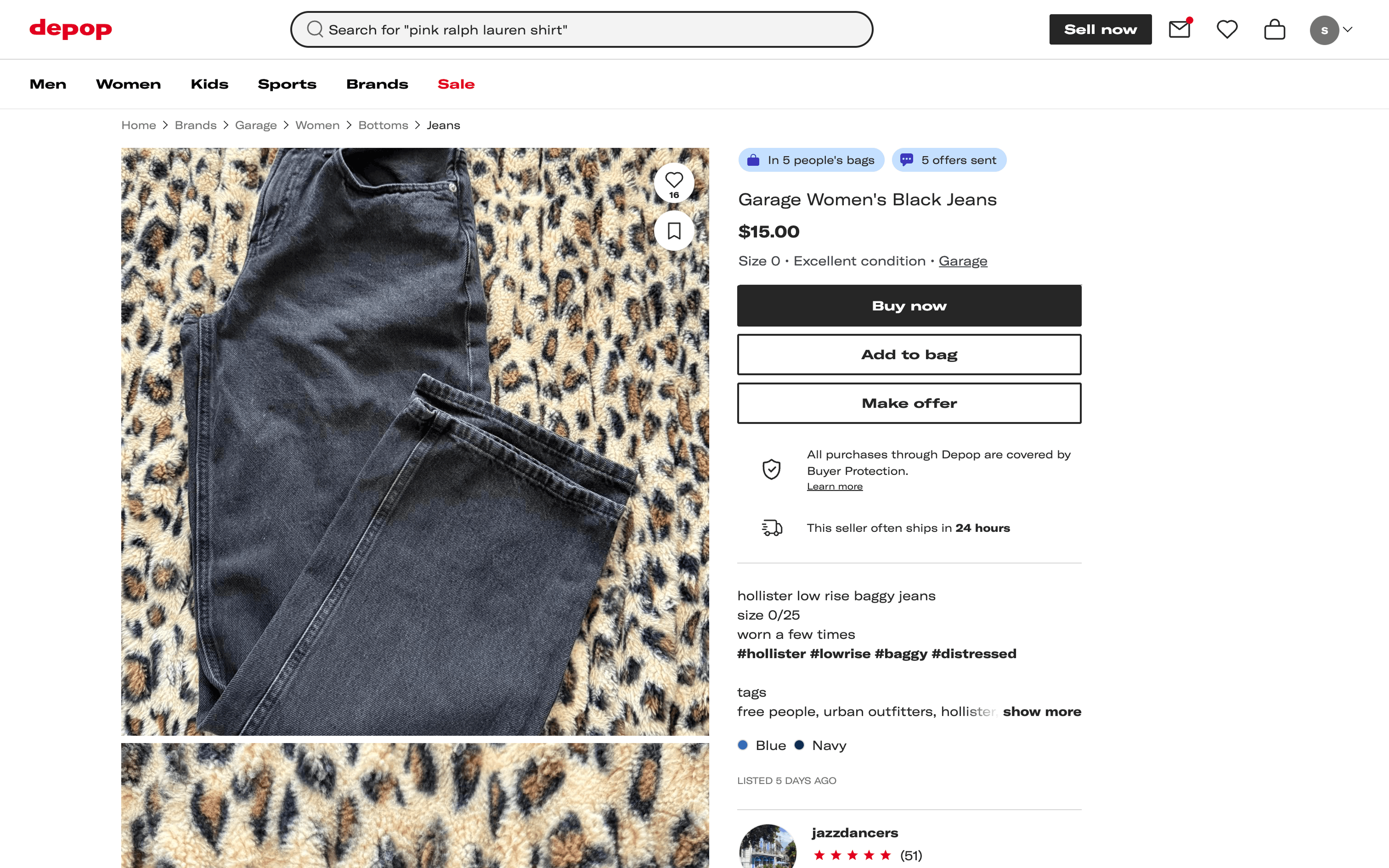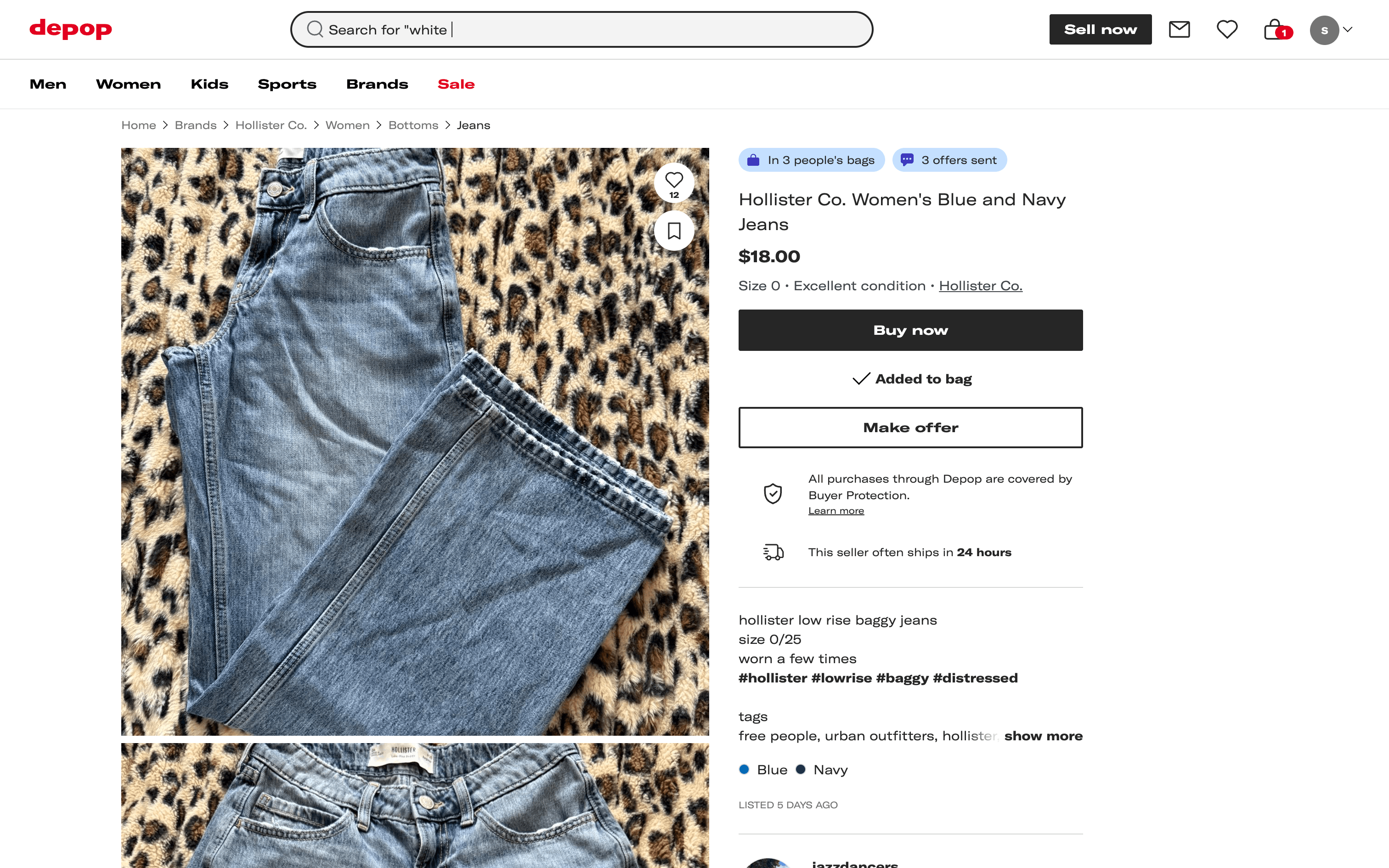 The user views a product and adds it to their bag. A confirmation message then appears to confirm the action.