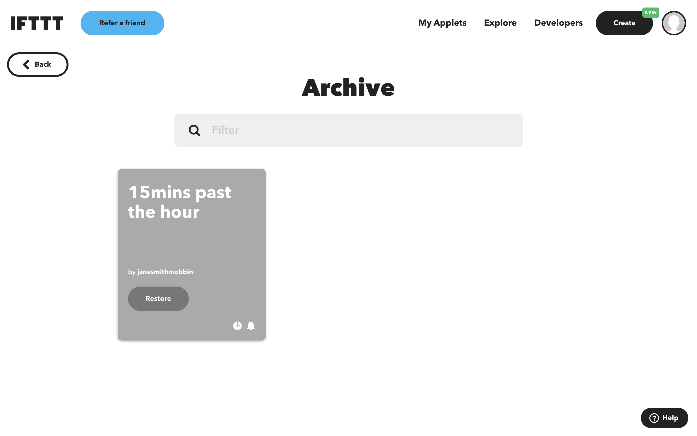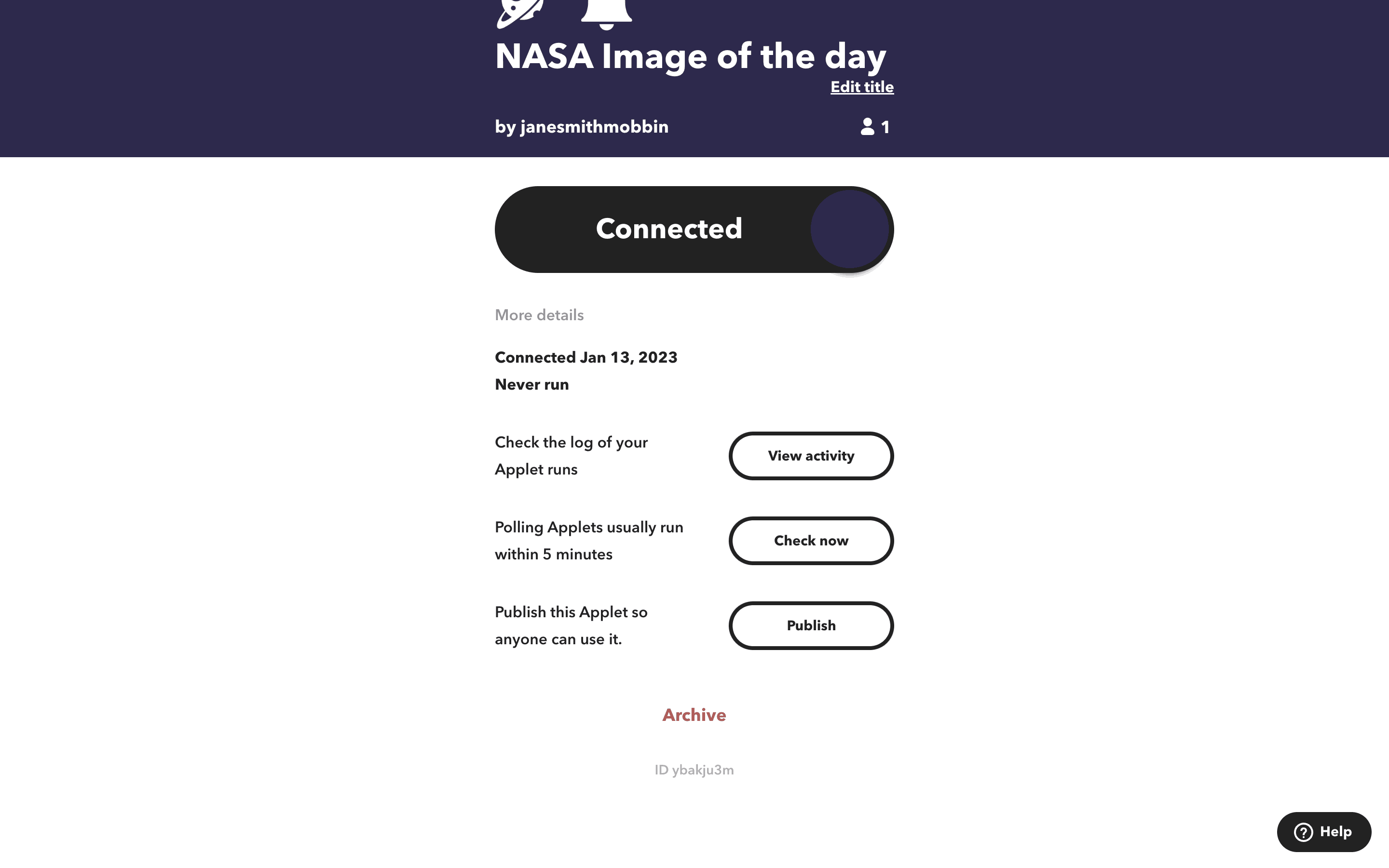 The user views an applet's details and then navigates to the archive page. The flow showcases archiving an applet and viewing the archive.