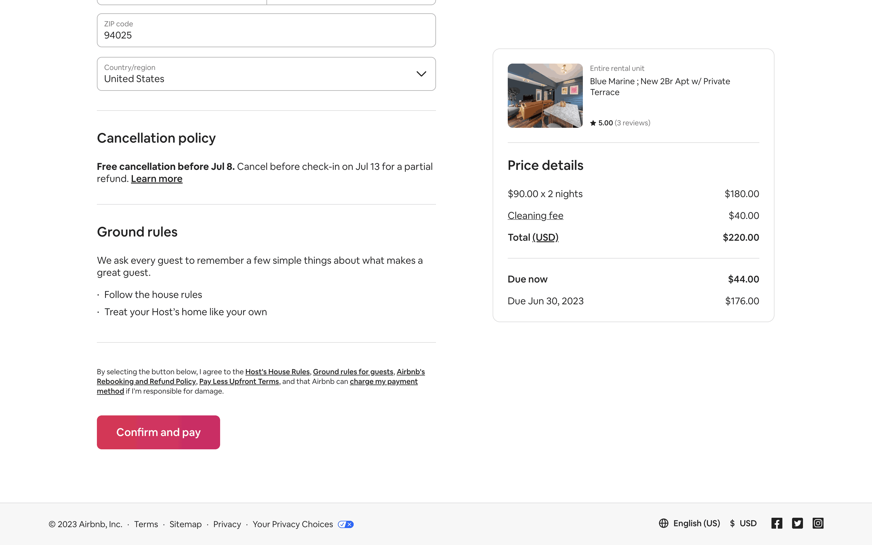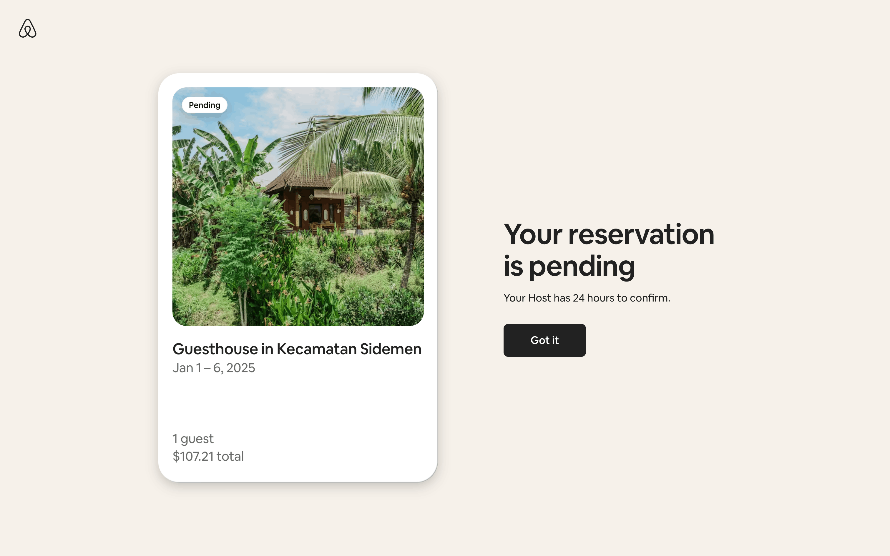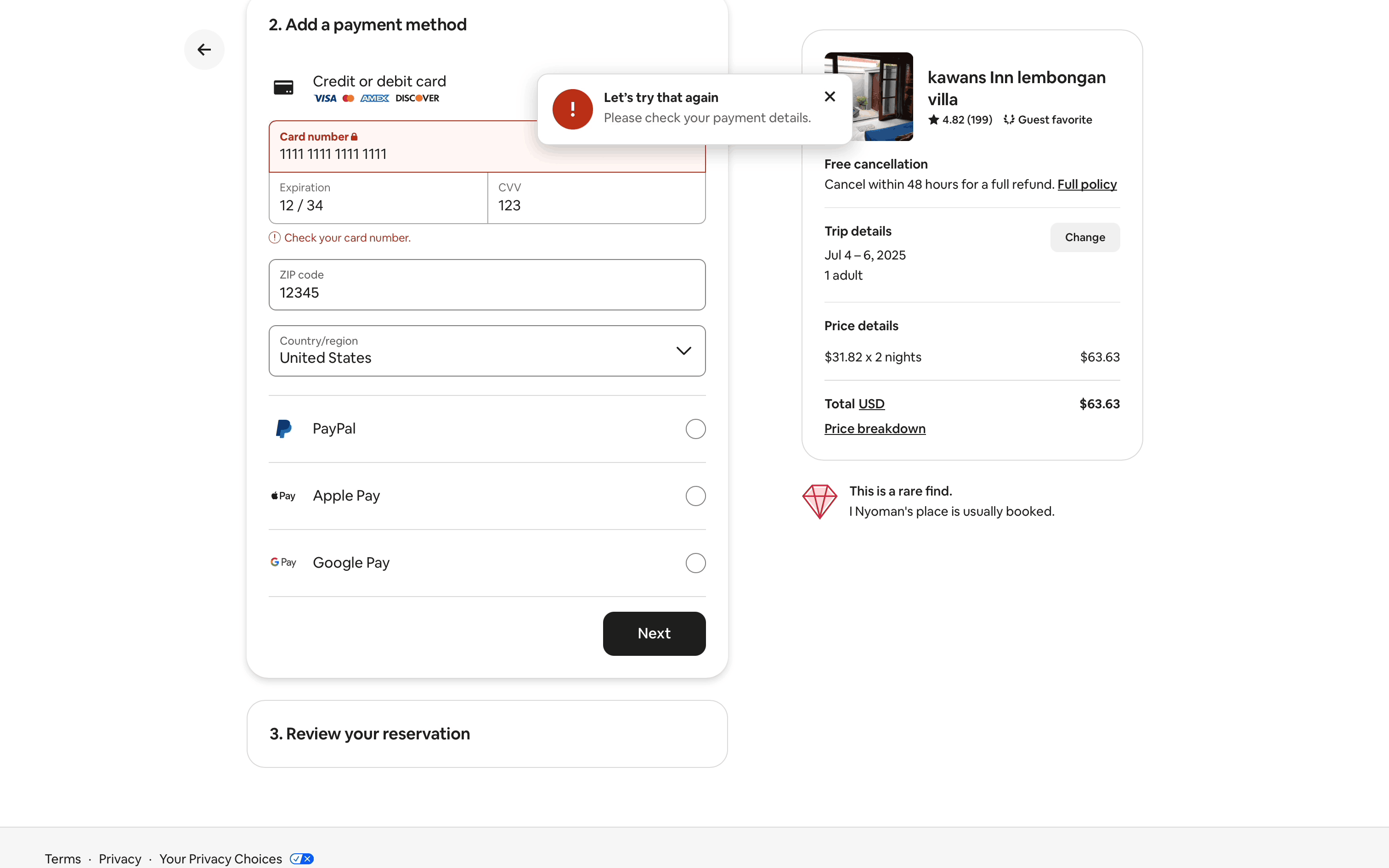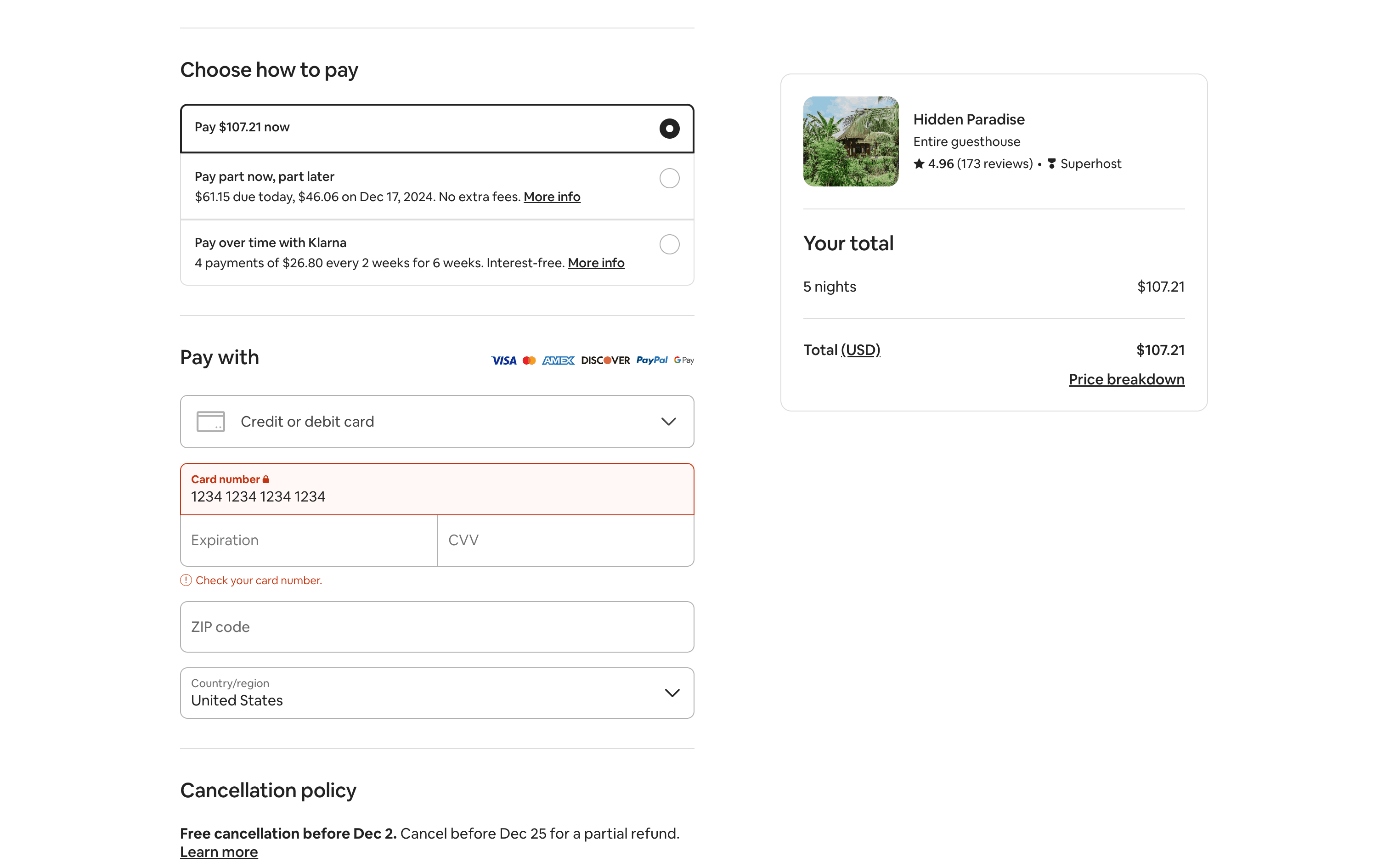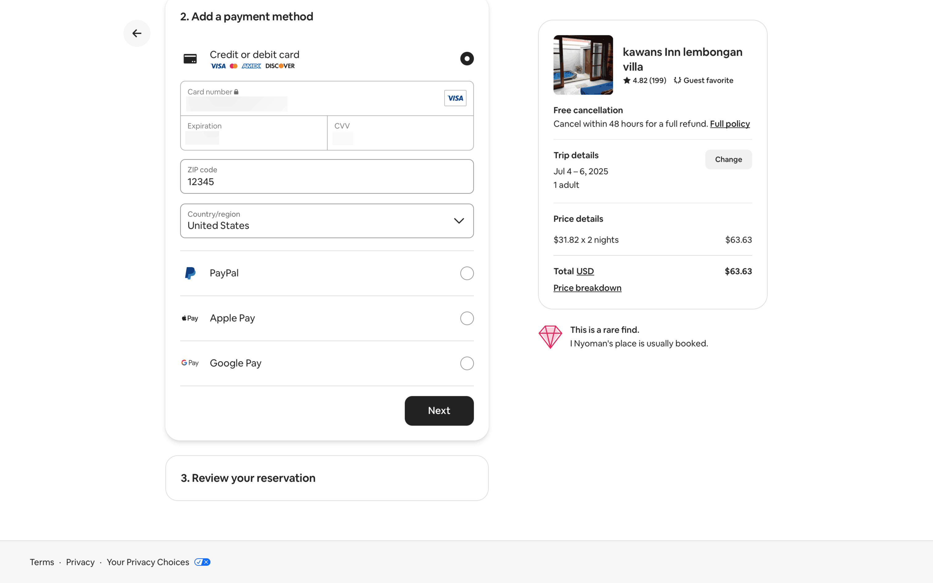 The user books a home, enters payment information, and verifies their identity. The flow ends with a confirmed reservation.