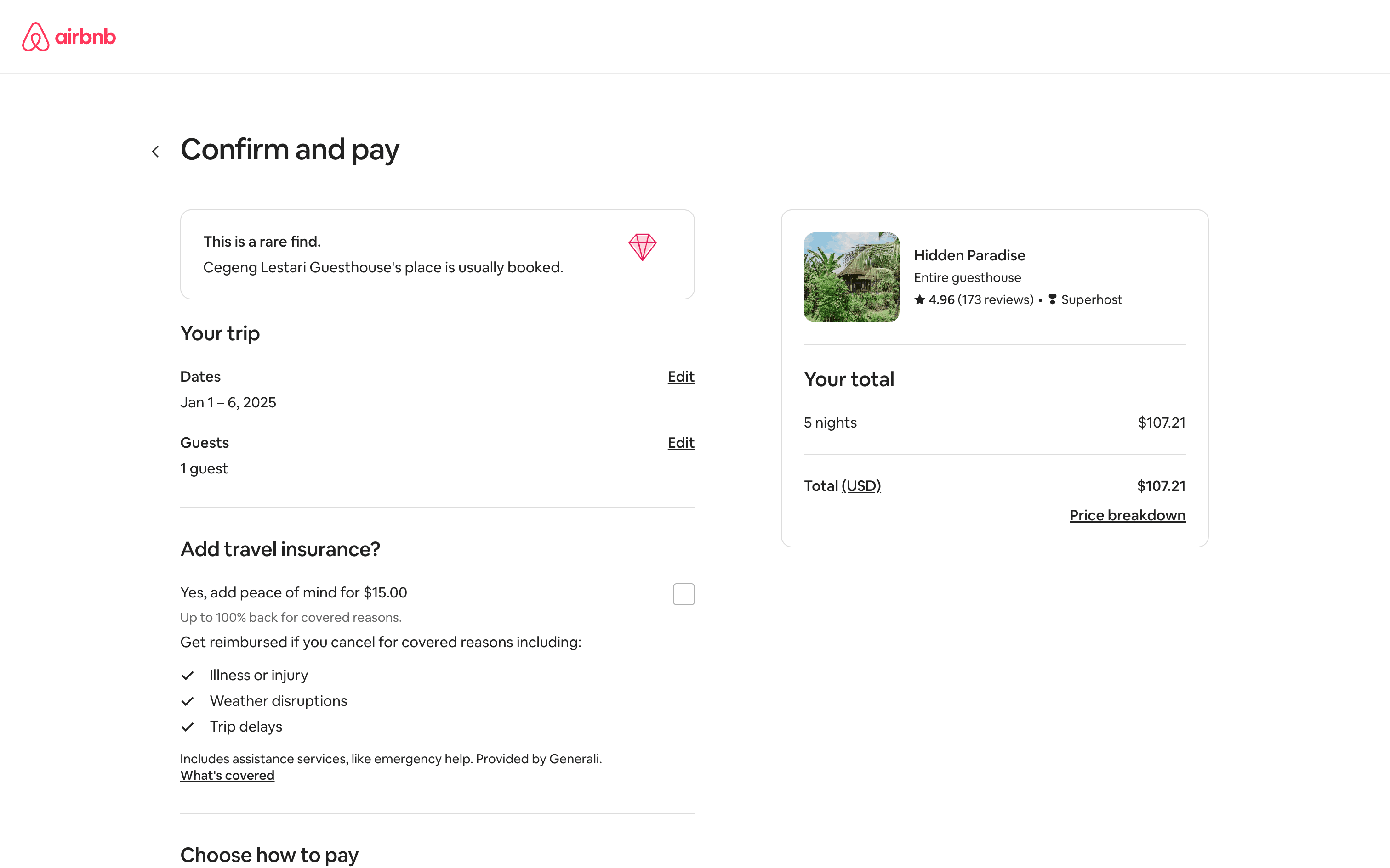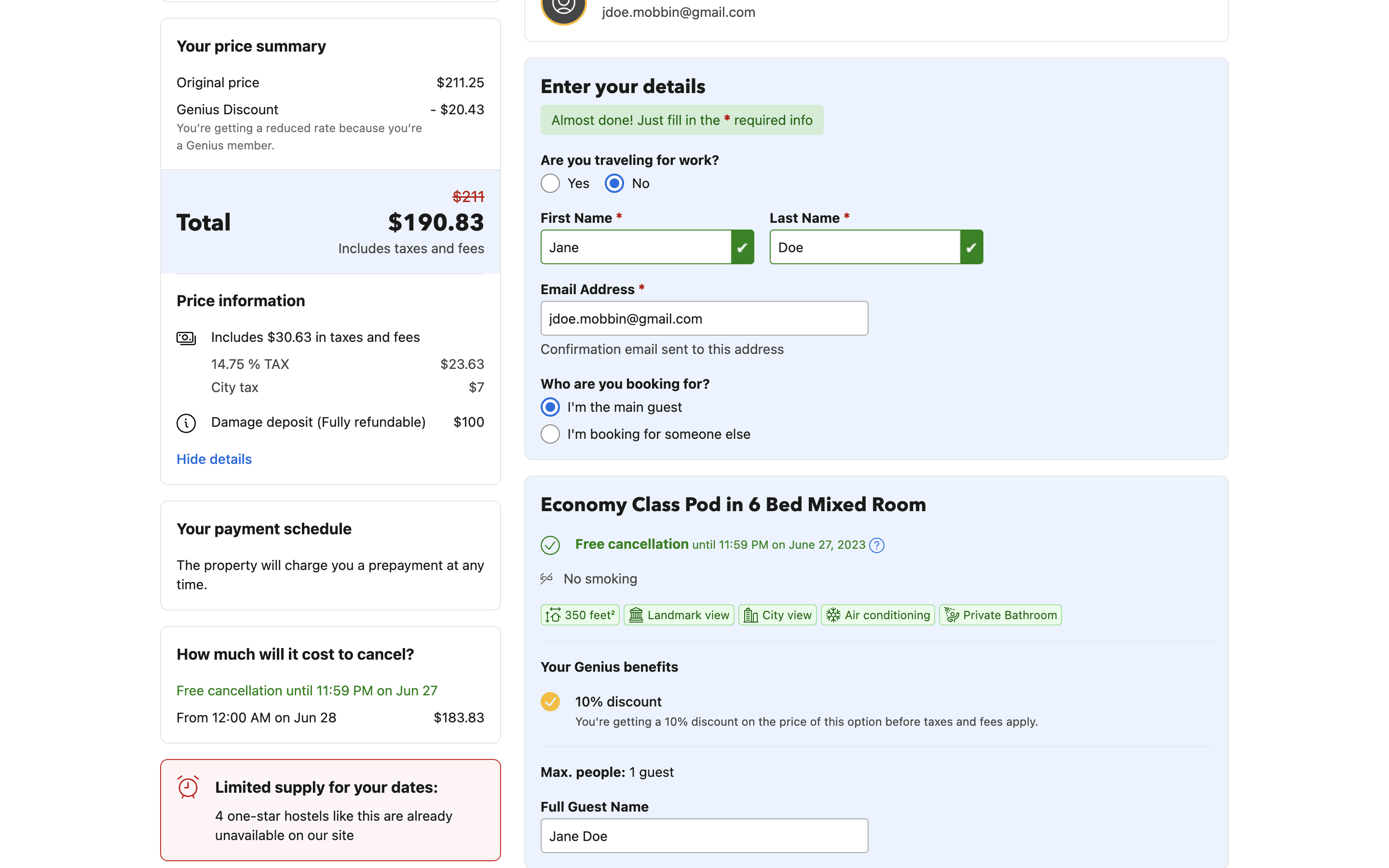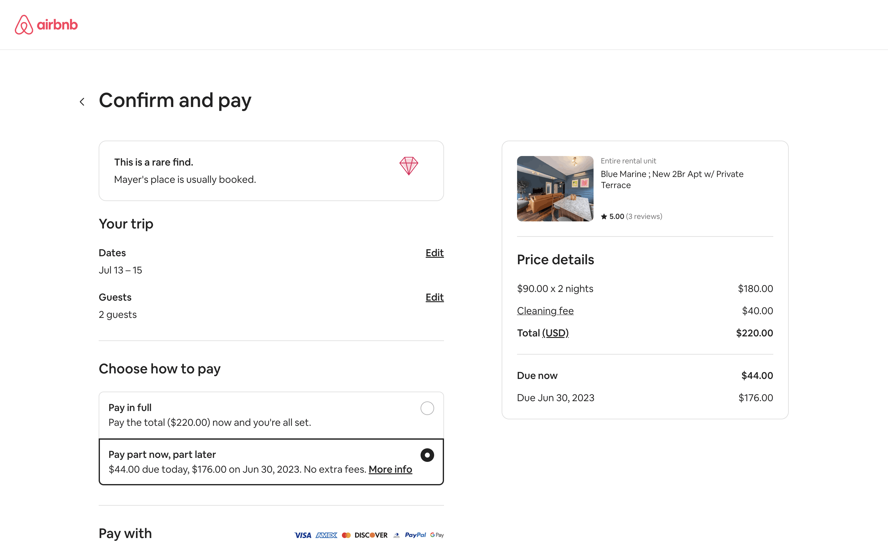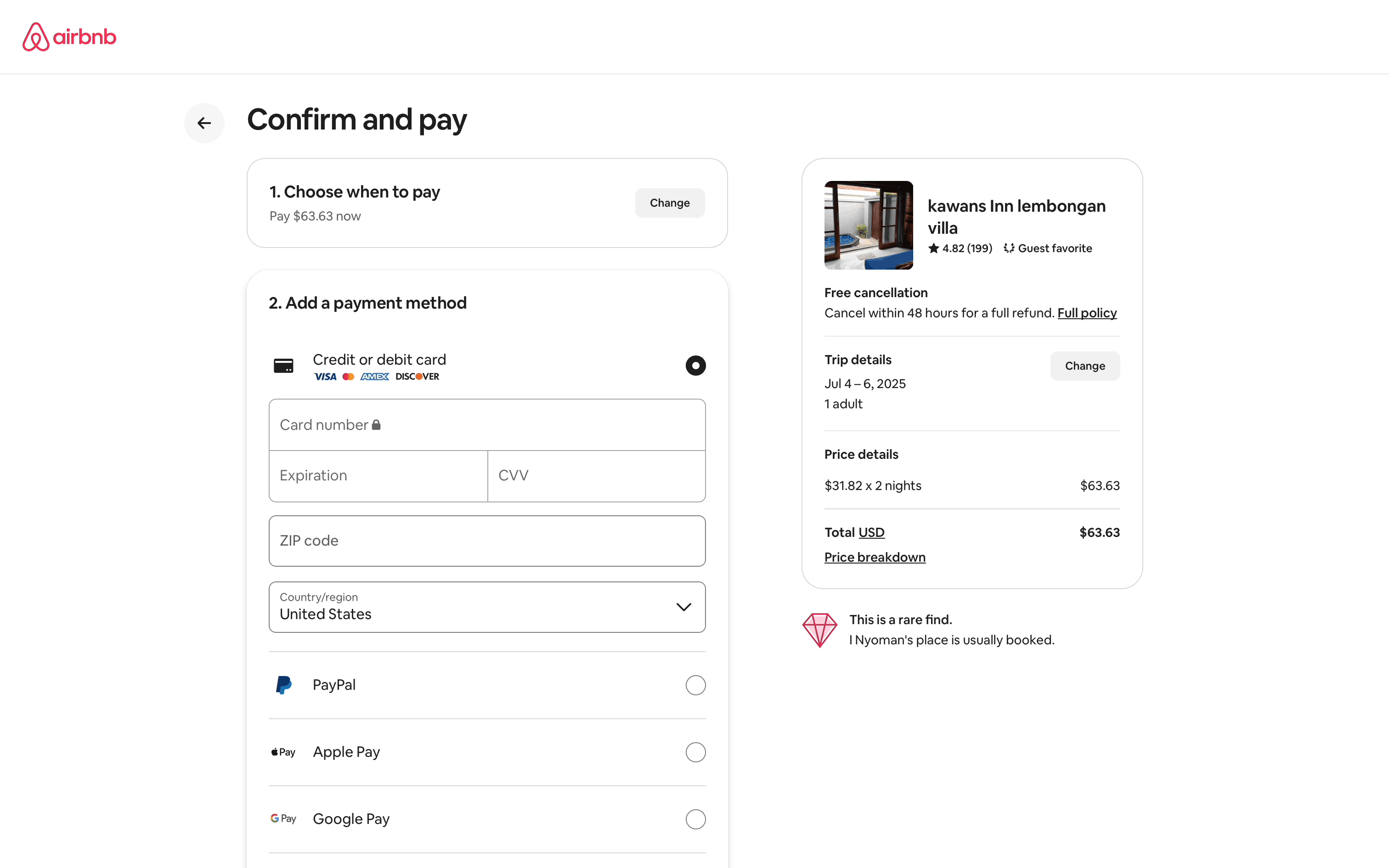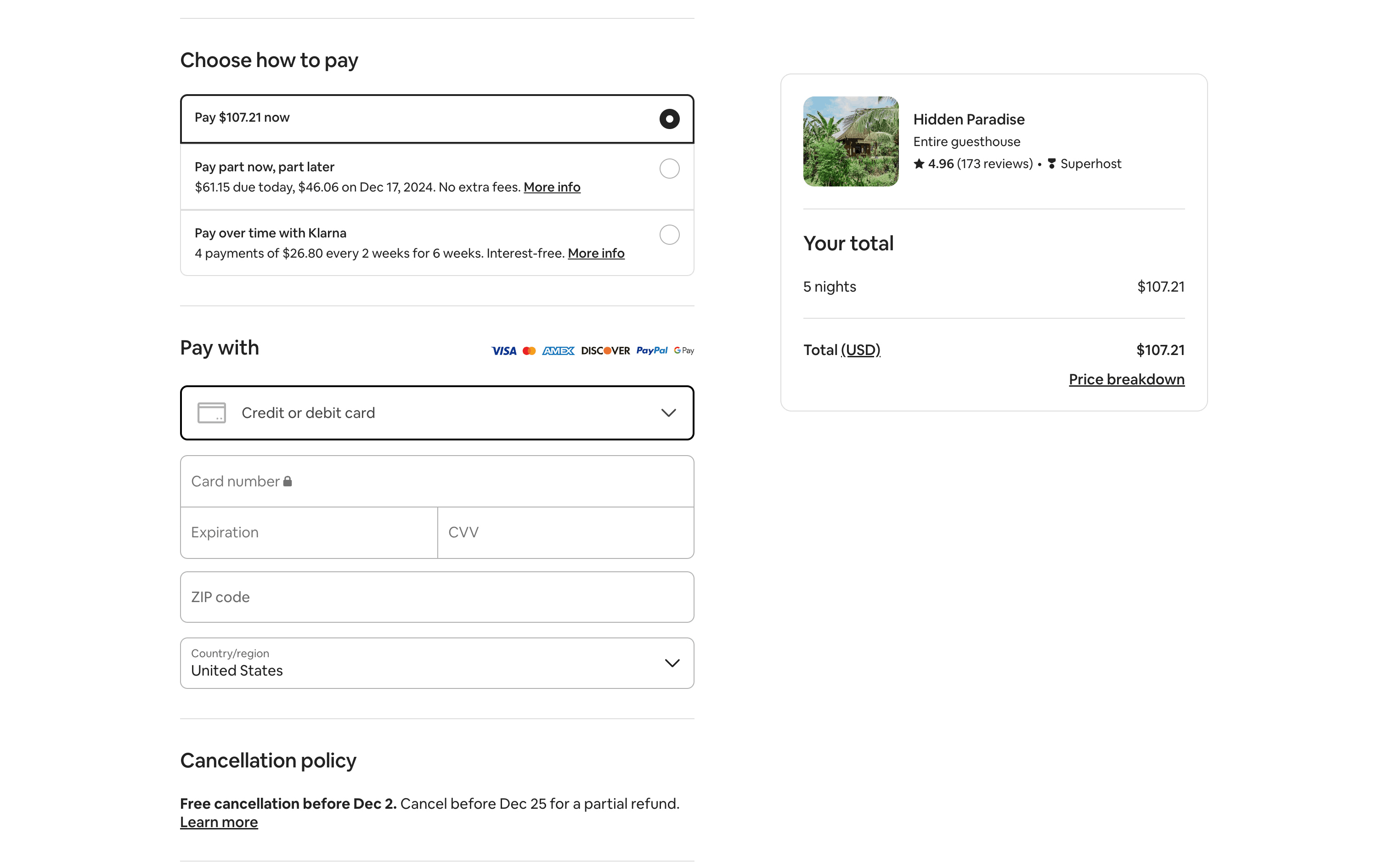 The user books a home, enters payment information, and verifies their identity. The flow ends with a confirmed reservation.