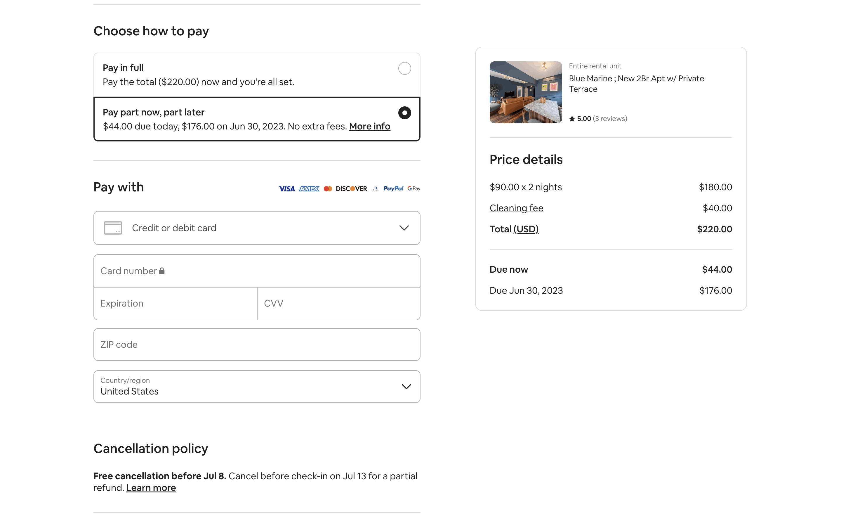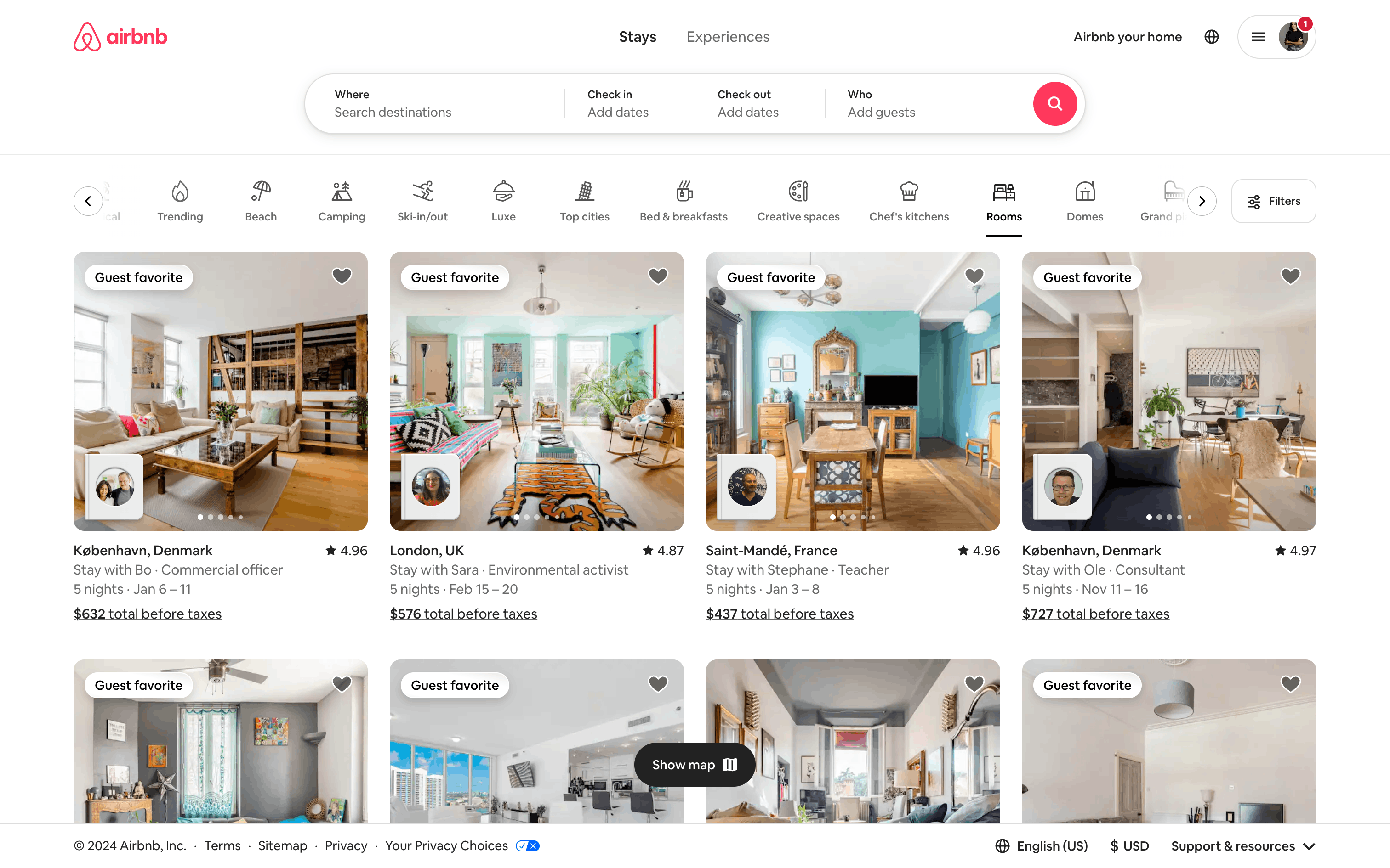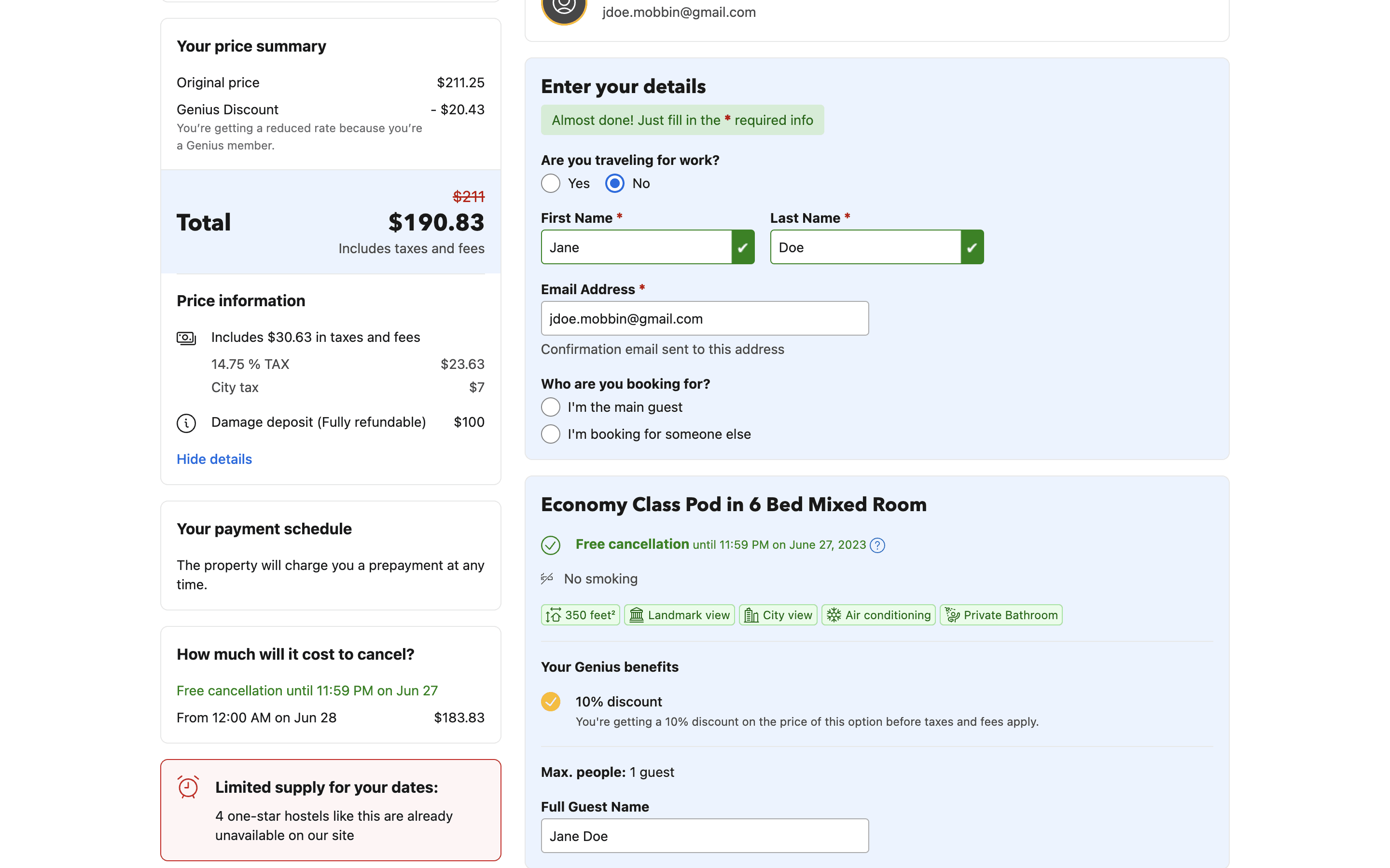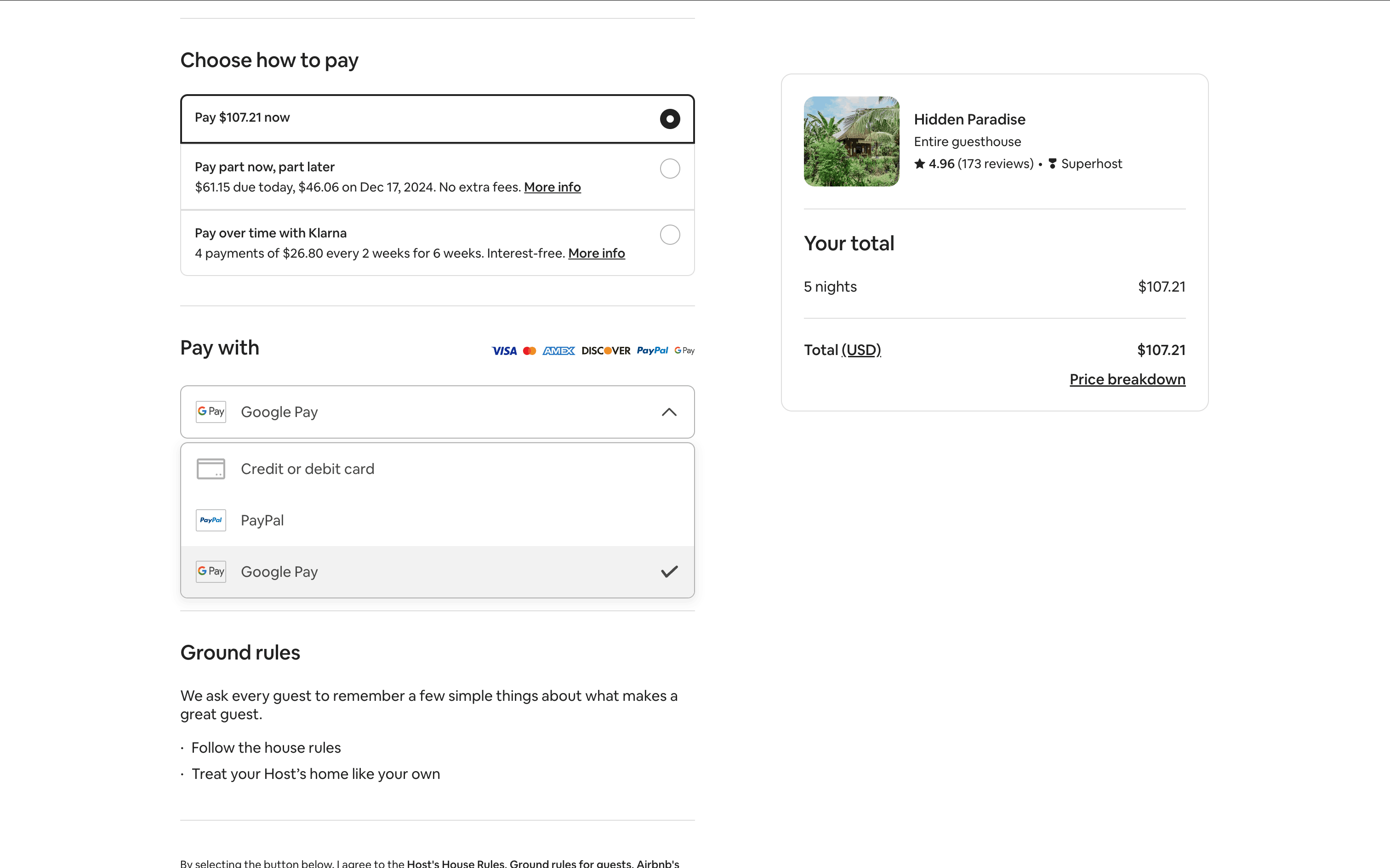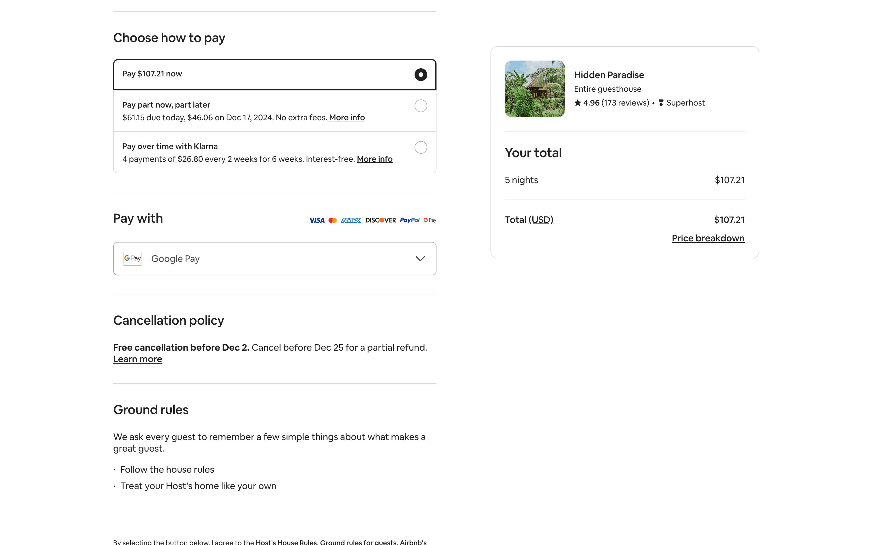 The user books a home, enters payment information, and verifies their identity. The flow ends with a confirmed reservation.