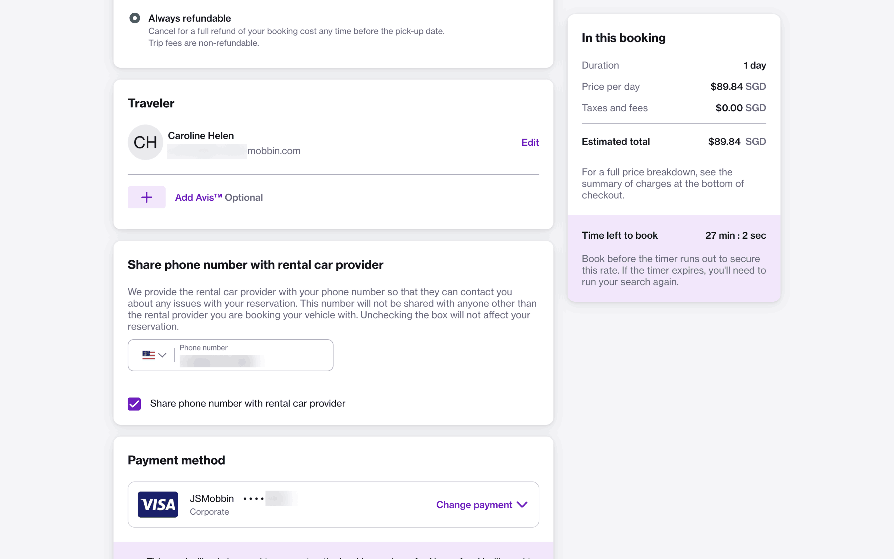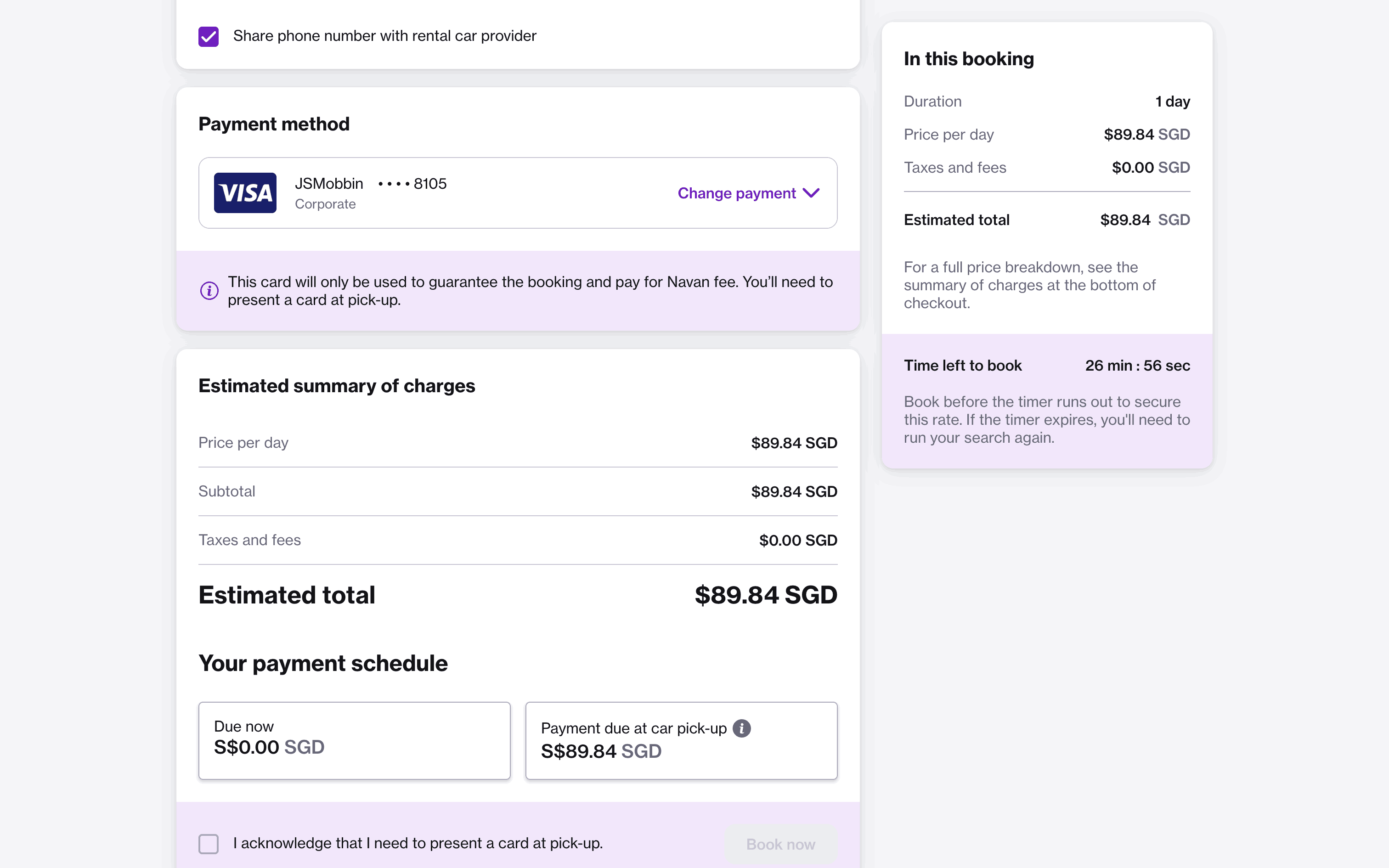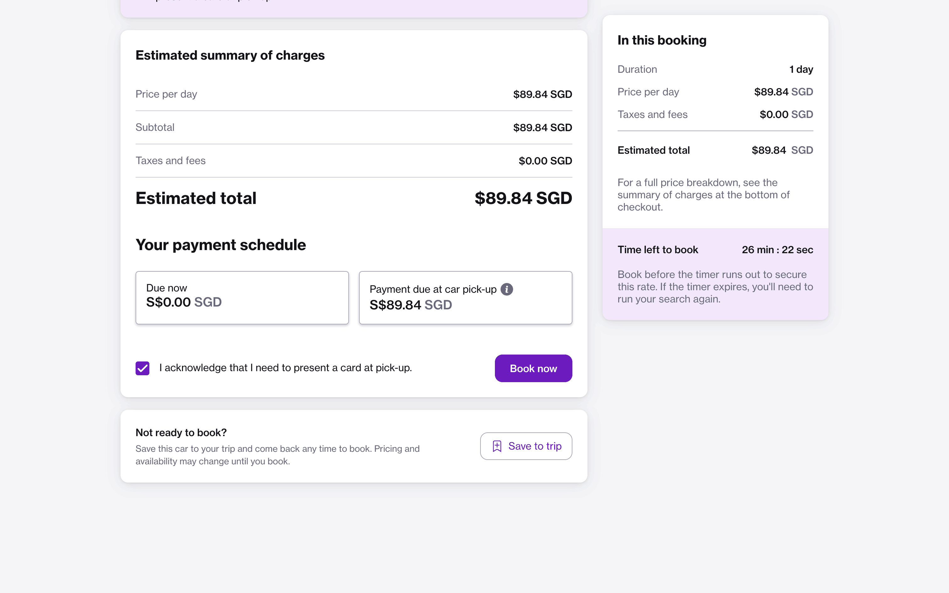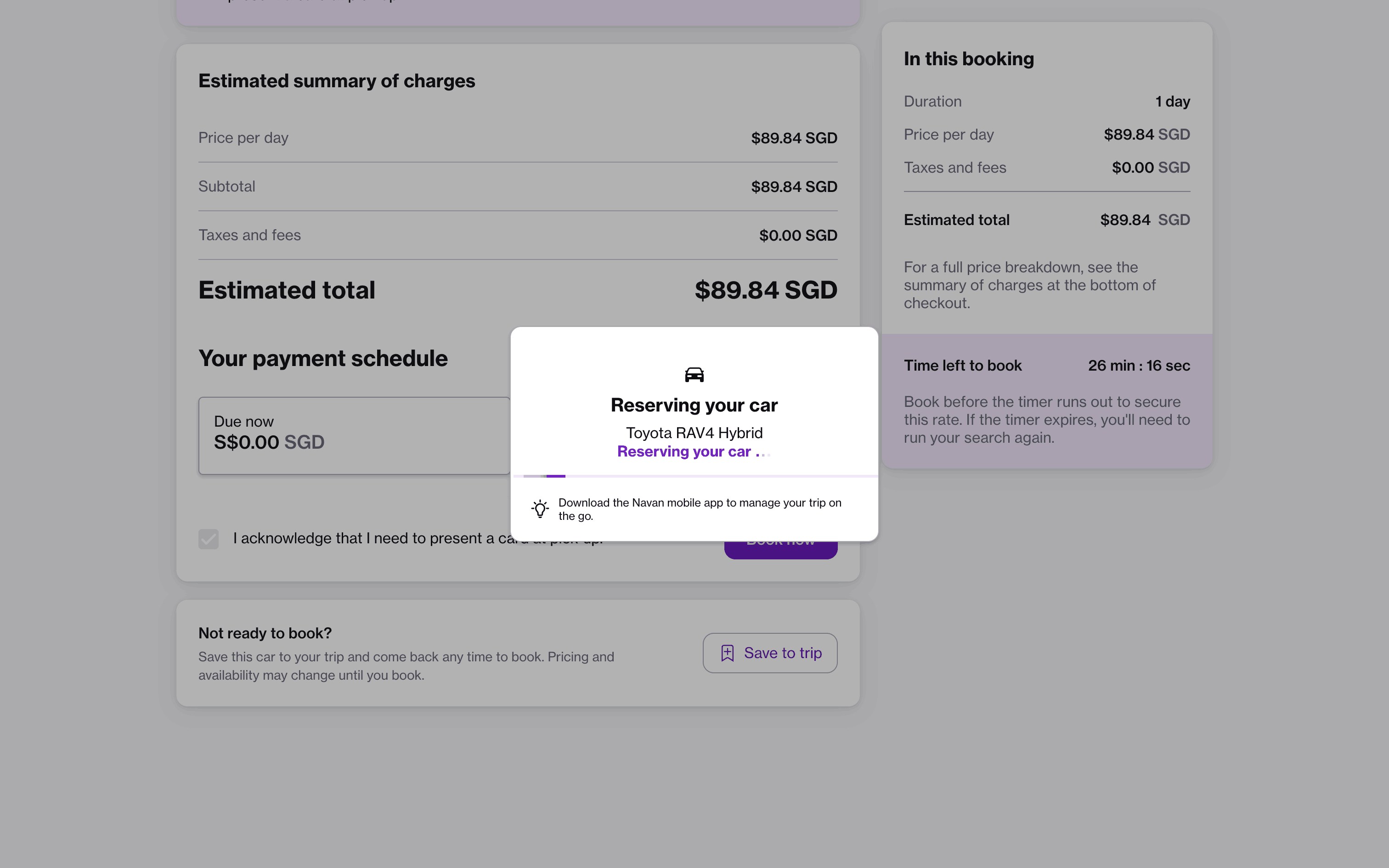 Users select a car, review booking details and policies, then confirm payment to complete the reservation.