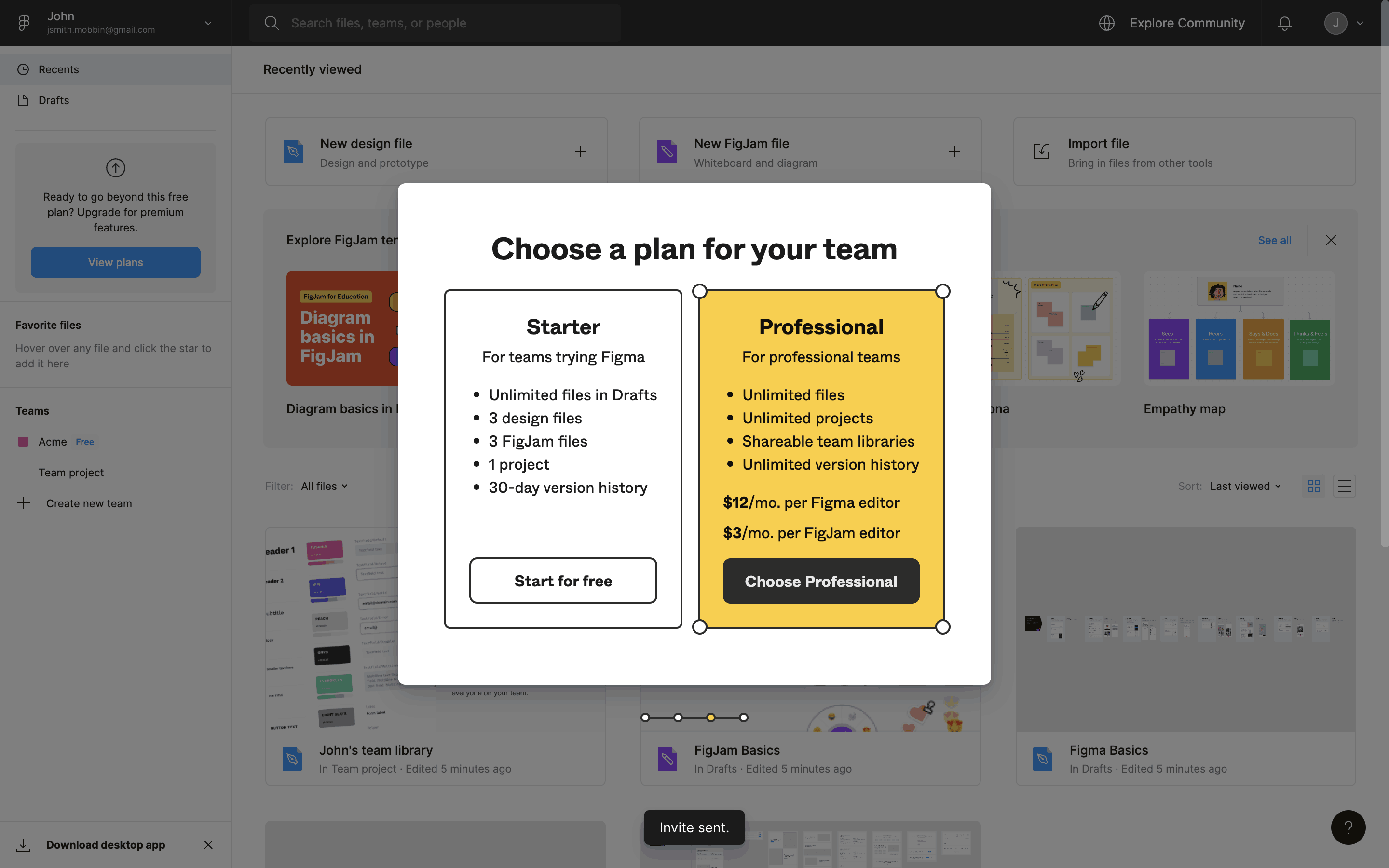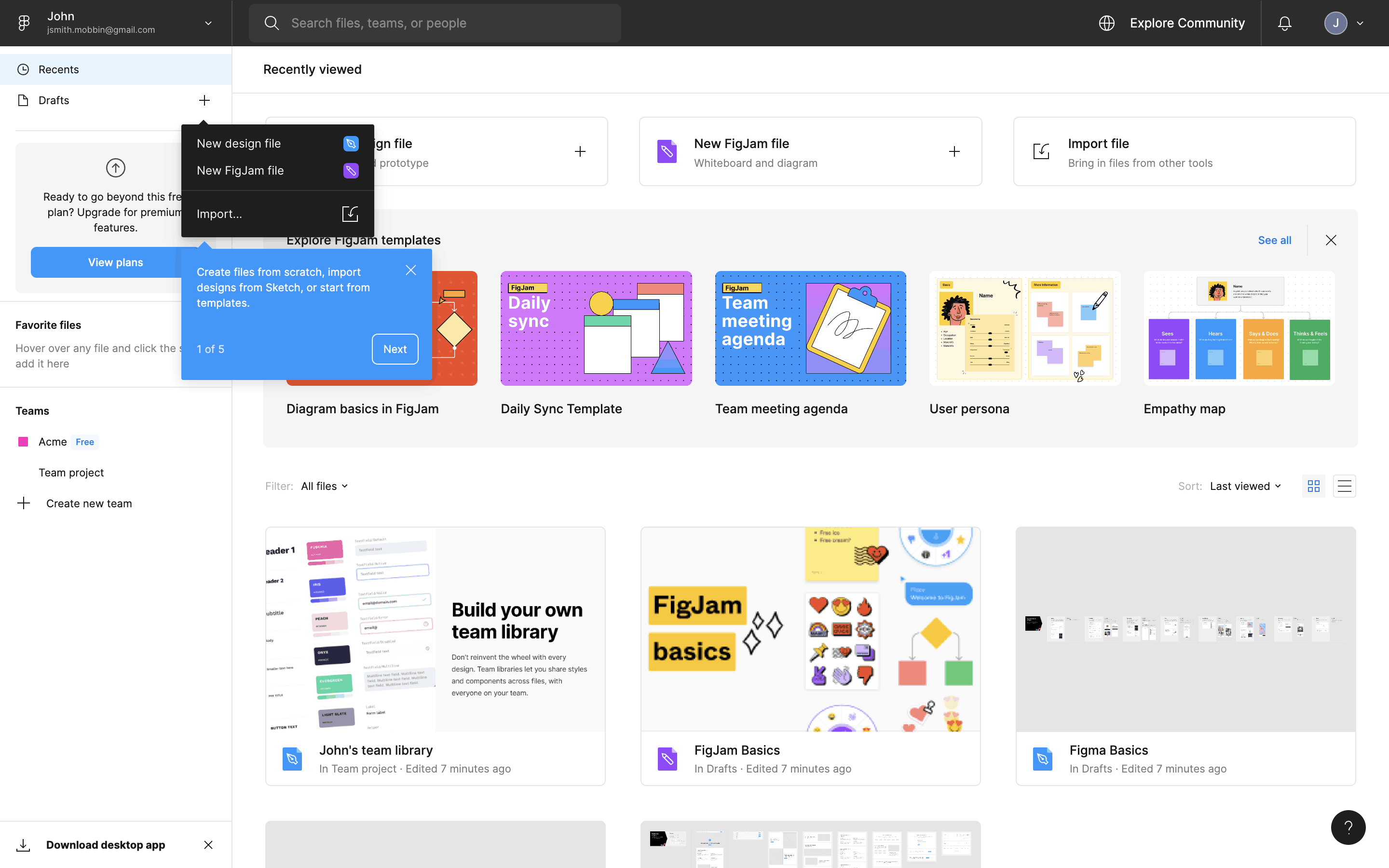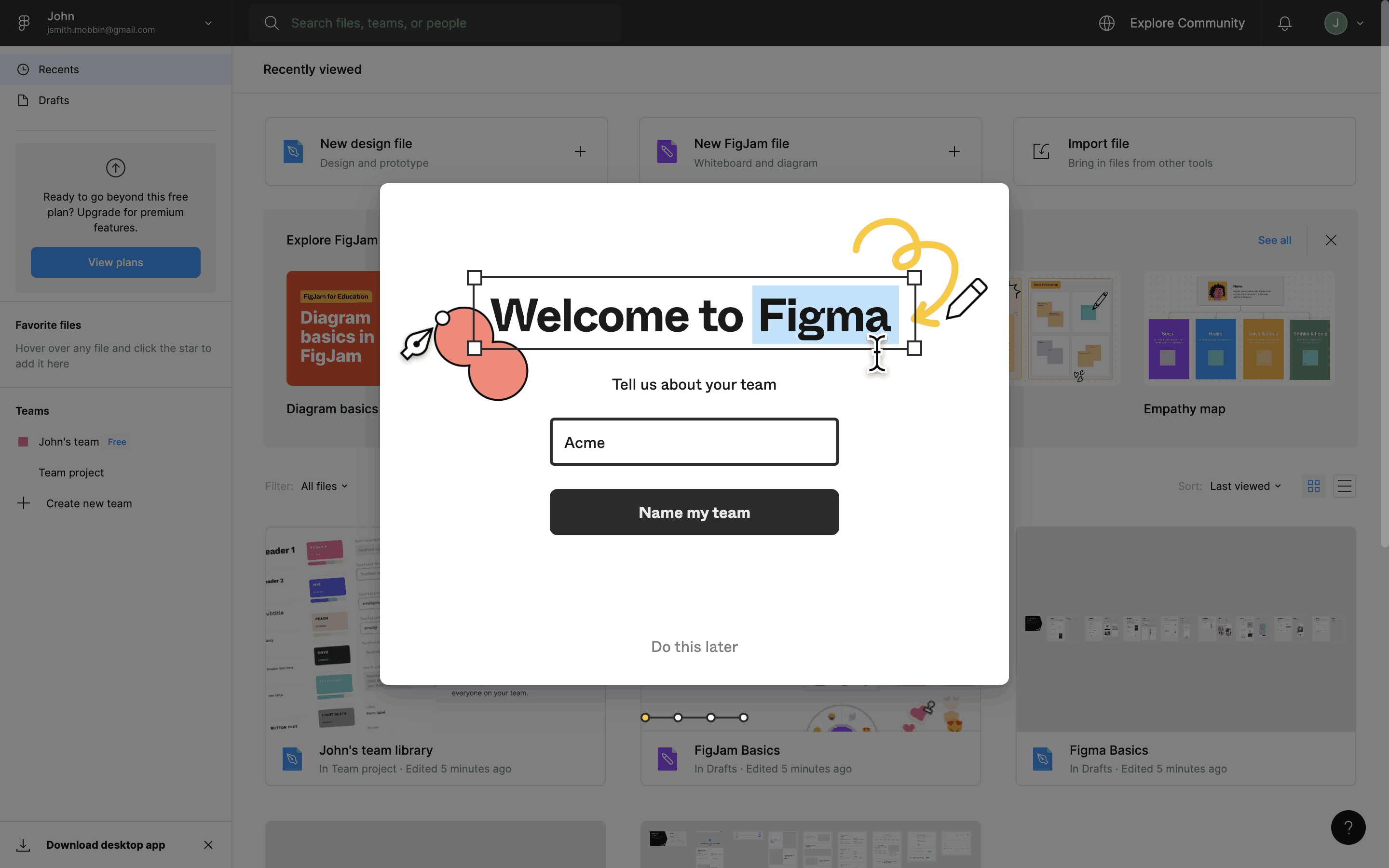 The user flow showcases the onboarding process, starting from account creation to reaching the main dashboard. It includes steps like email verification, team setup, and plan selection.