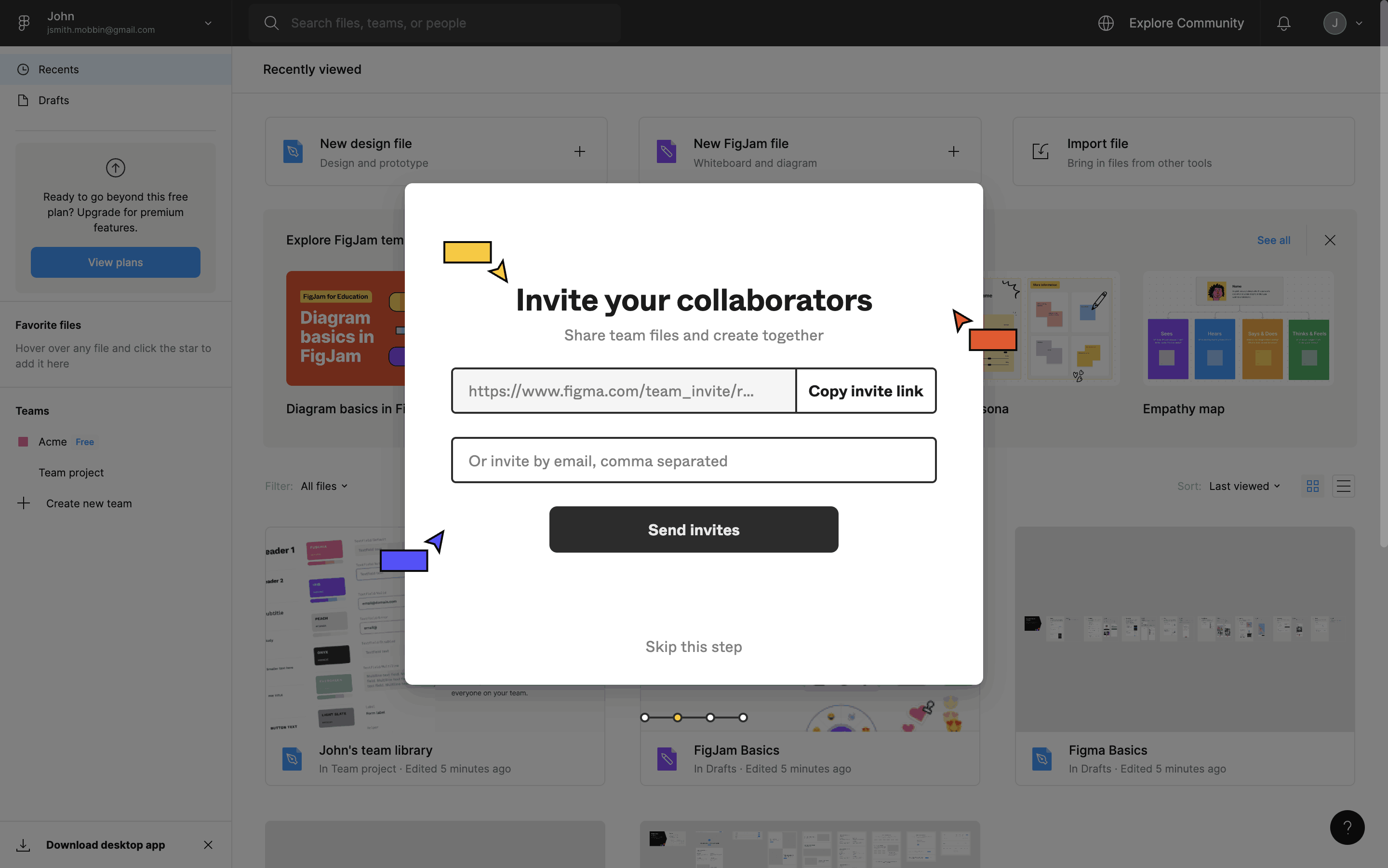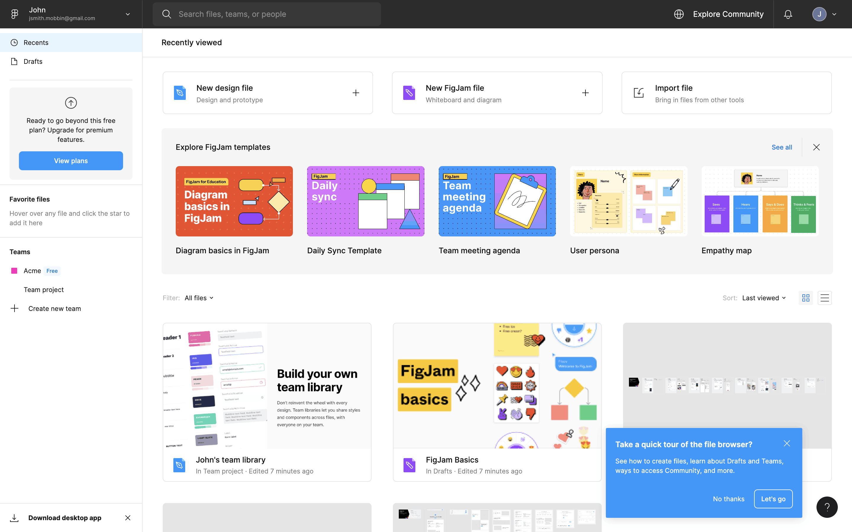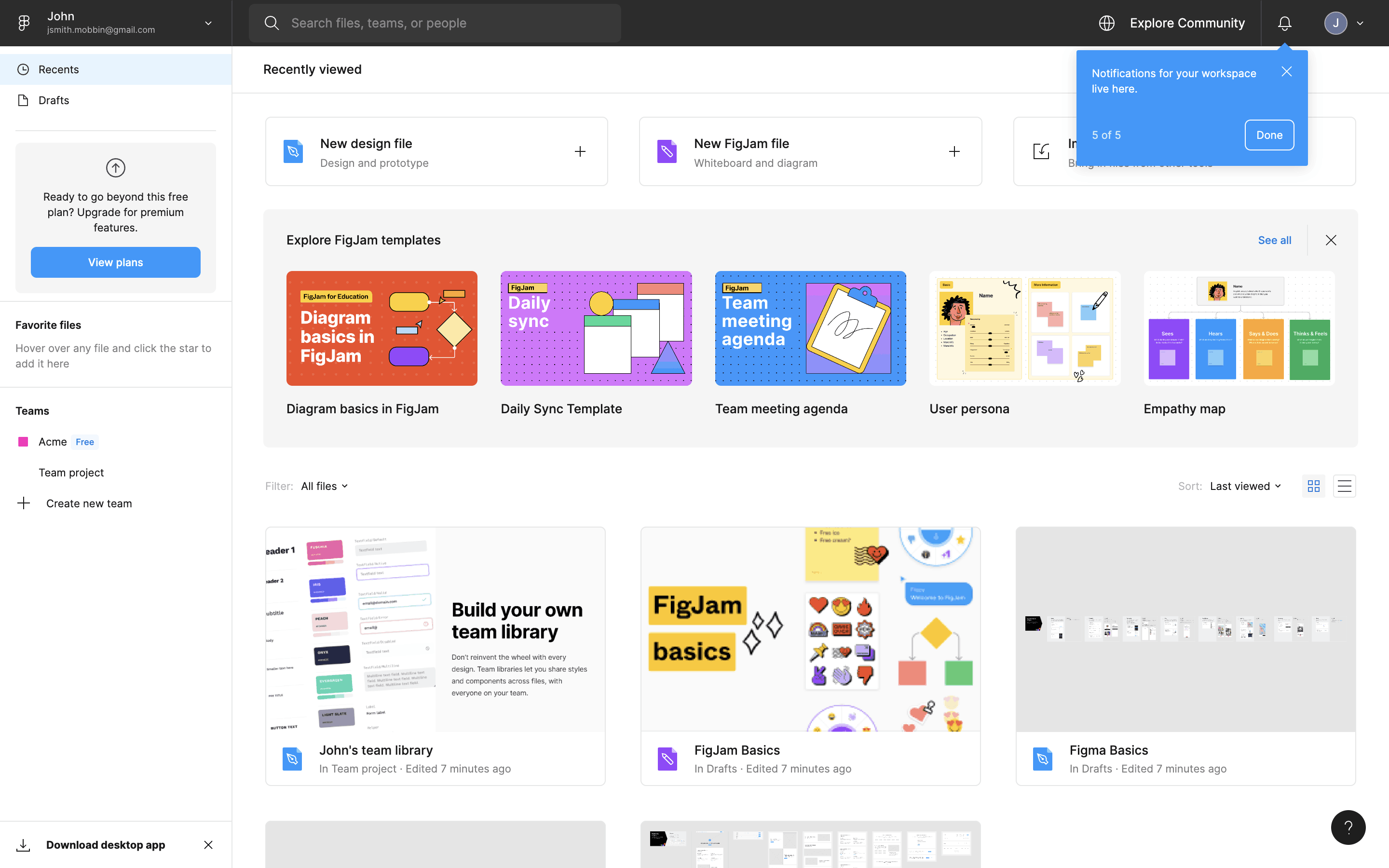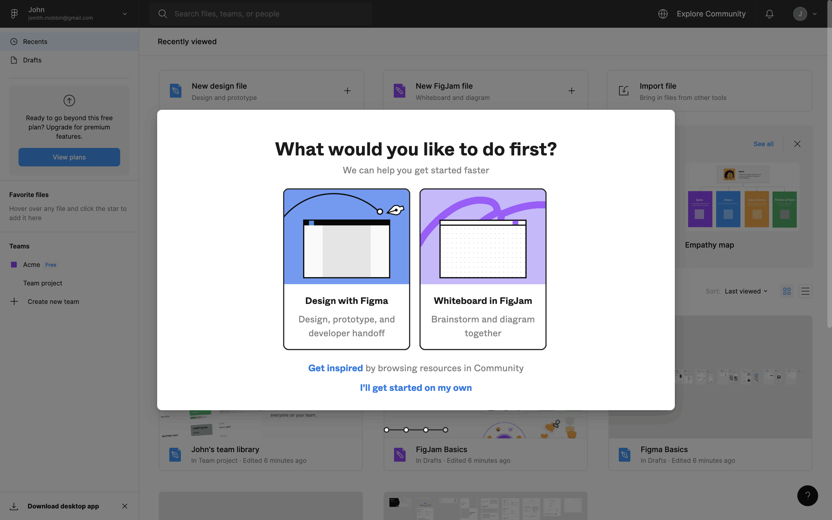 The user flow showcases the onboarding process, starting from account creation to reaching the main dashboard. It includes steps like email verification, team setup, and plan selection.