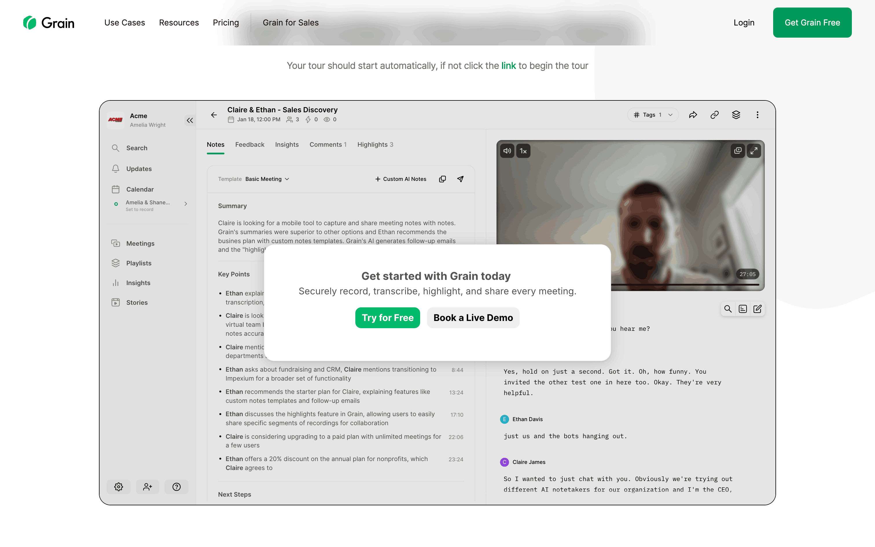 The user flow guides a user through a product tour, highlighting key features and ending with a call to action. The user is encouraged to try the product.