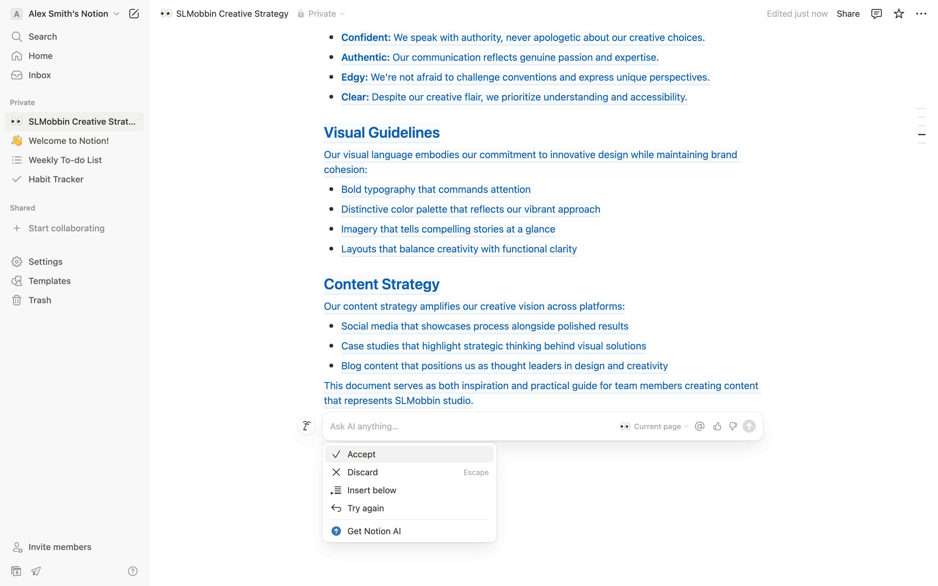 The user leverages AI to generate content for a document. The AI assistant creates an outline, which is then integrated into the document.