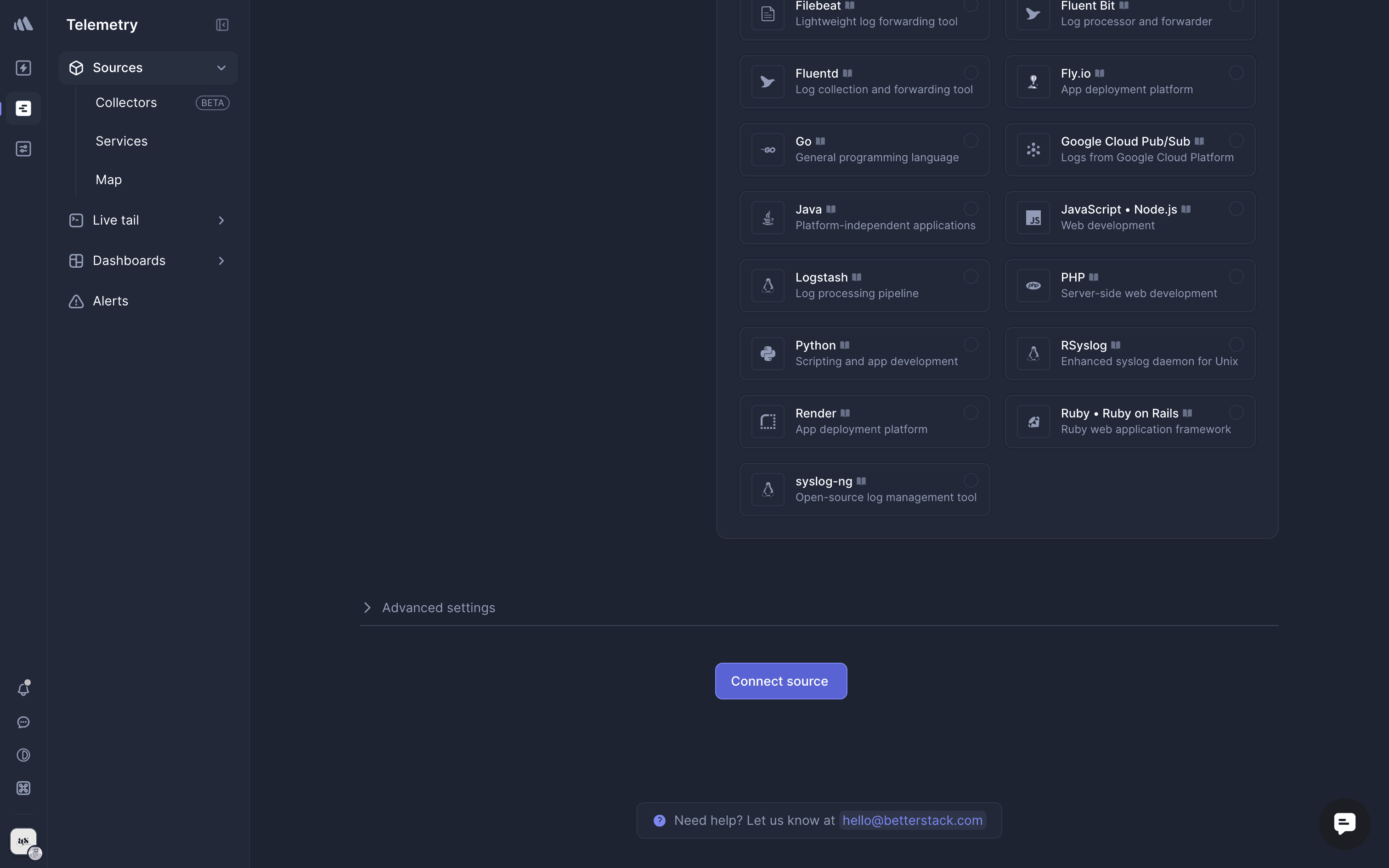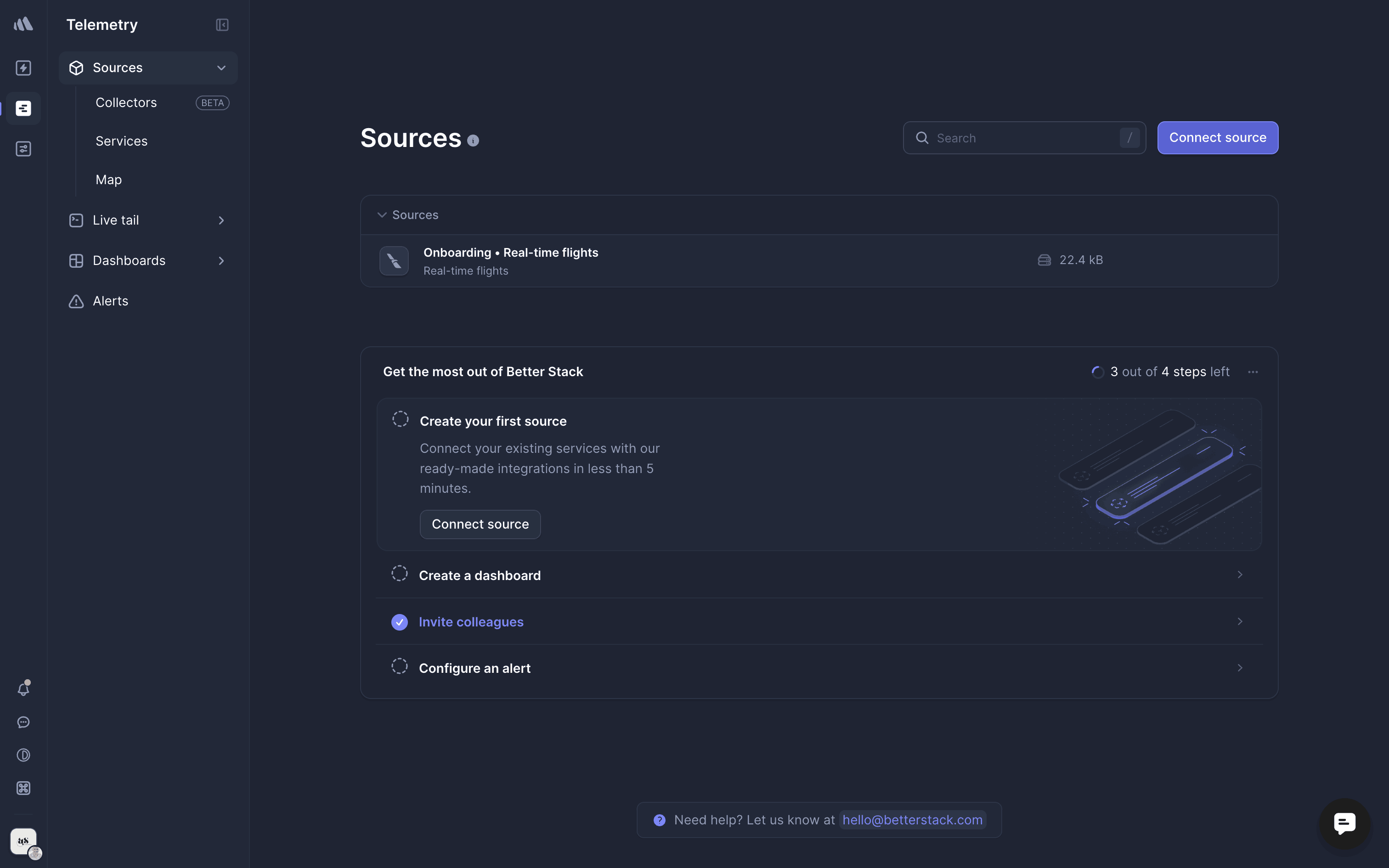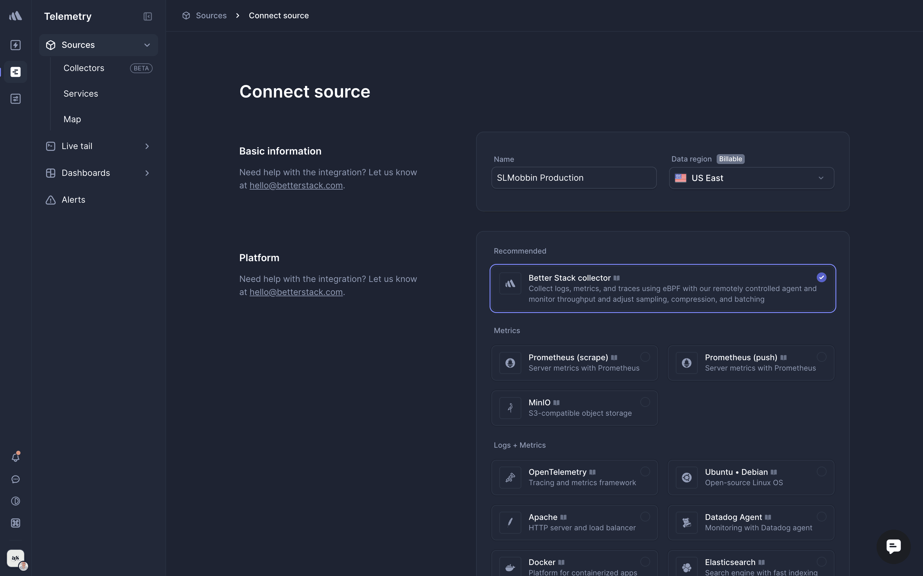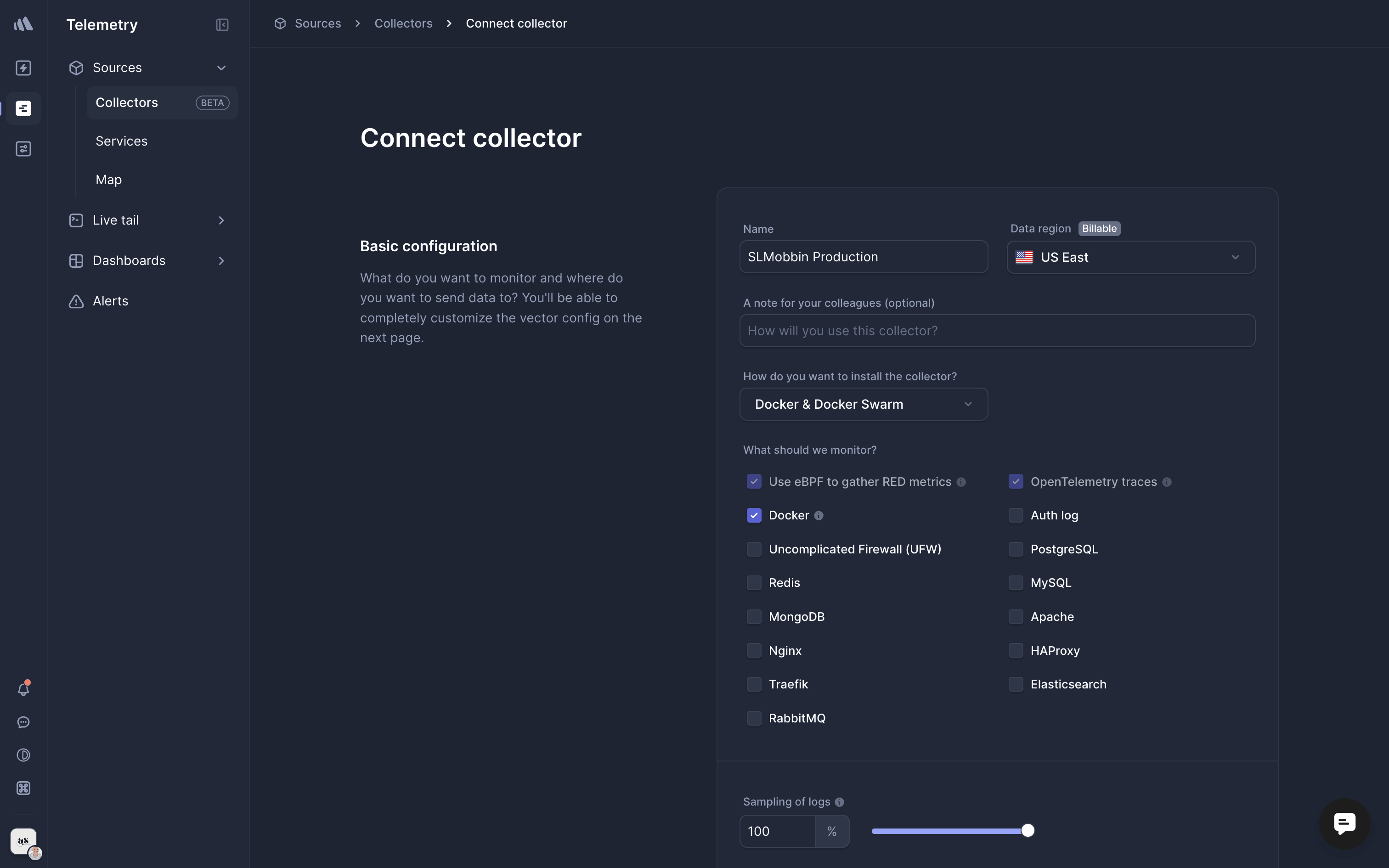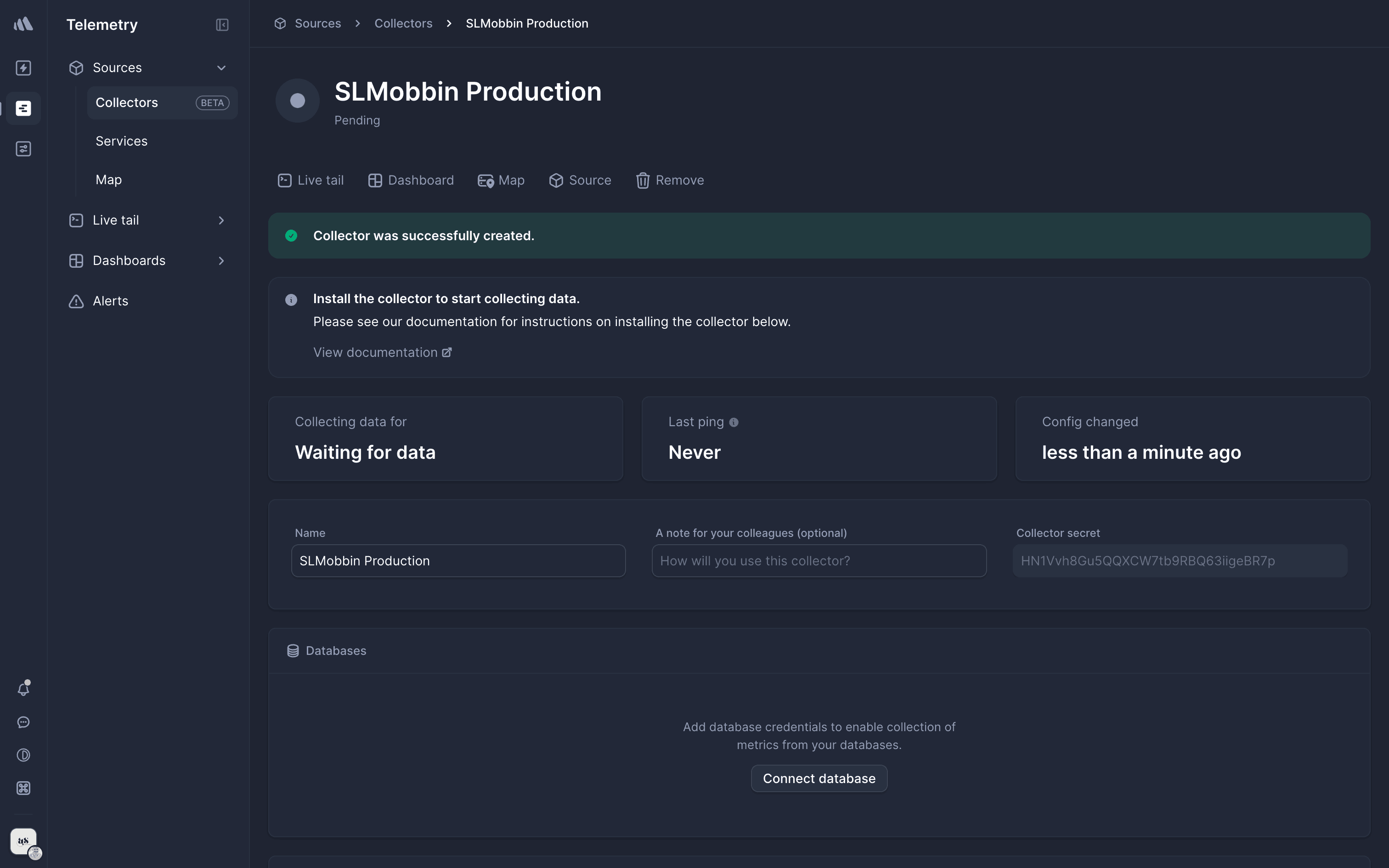 The user flow demonstrates adding a new source by filling out the source and collector forms. The process concludes with the new collector listed on the collectors page.